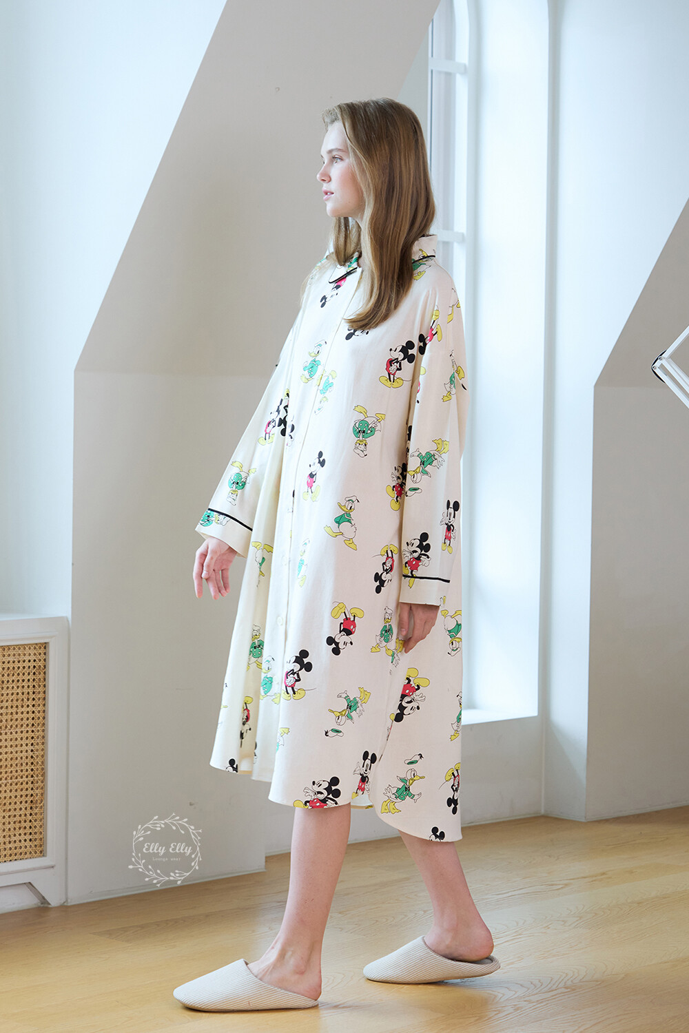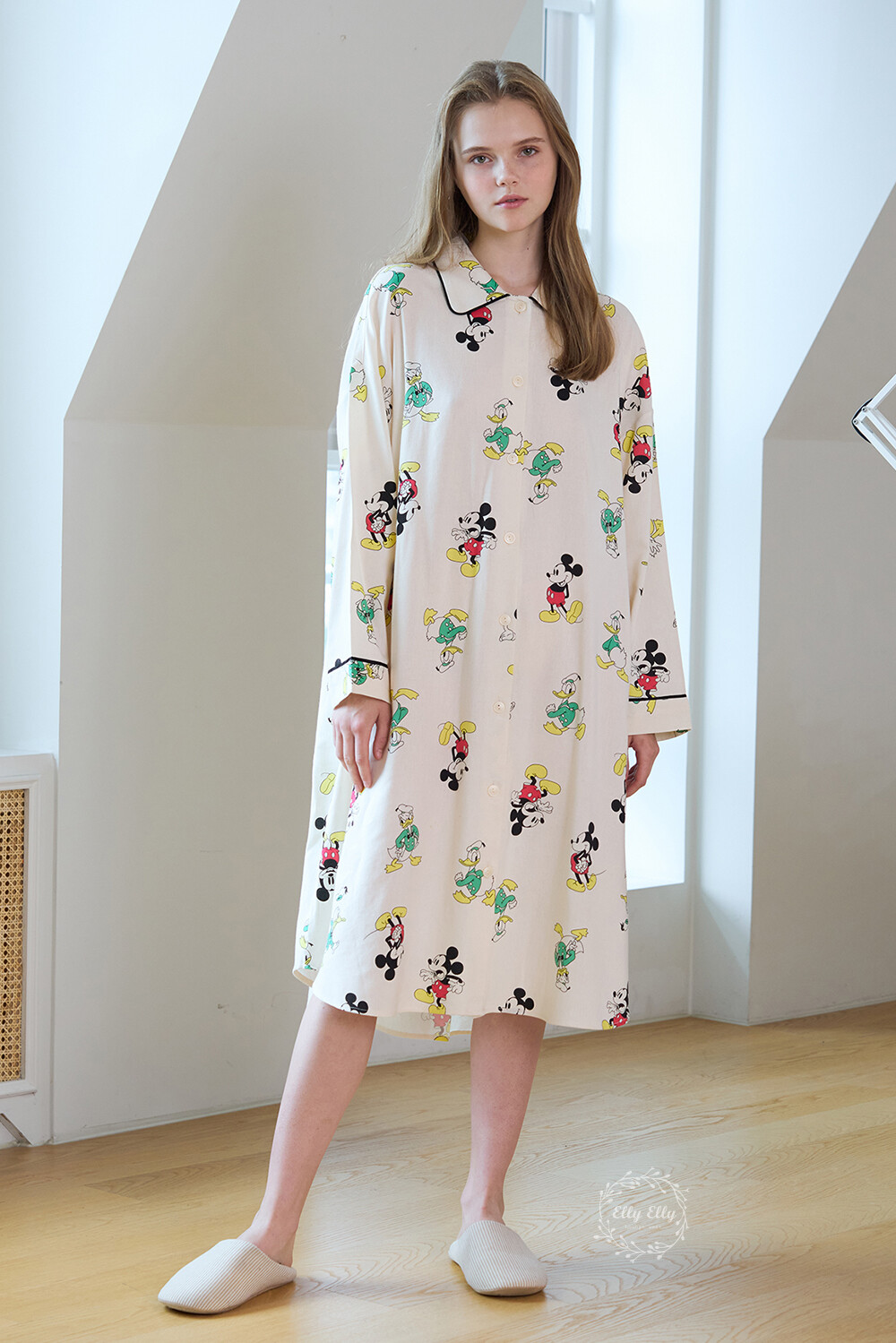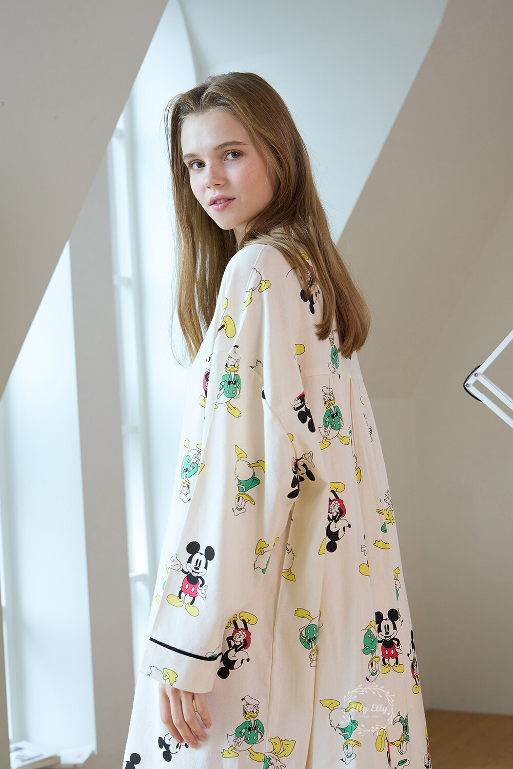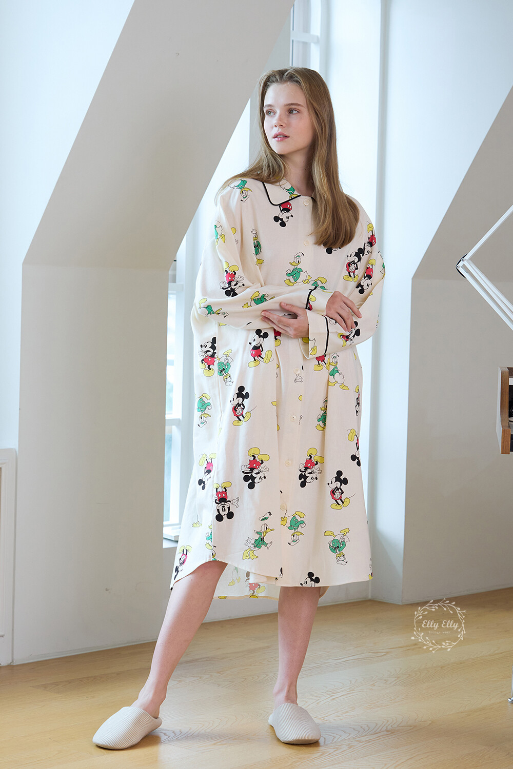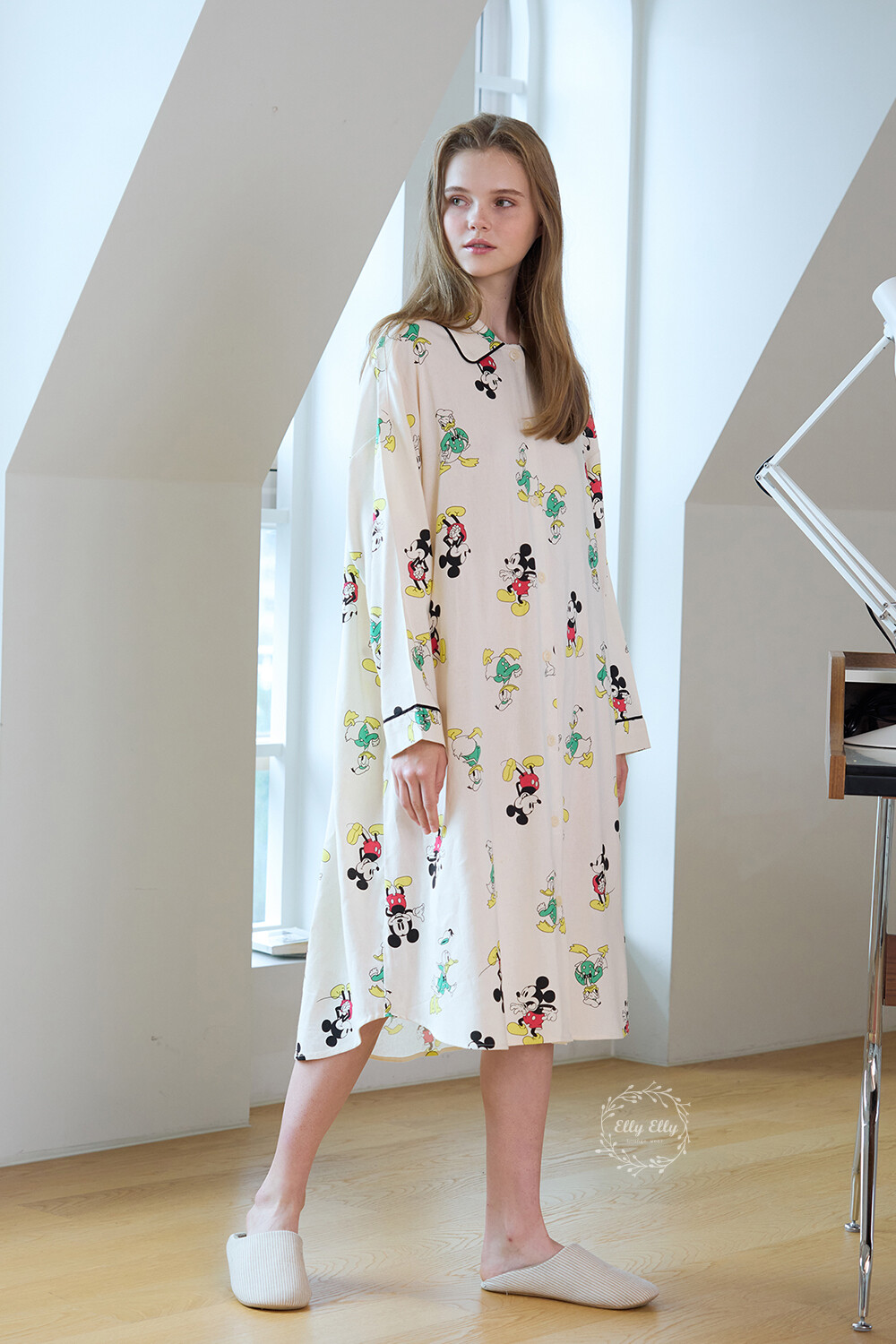 DK-5104 디즈니 카라파이핑 긴팔원피스 크림