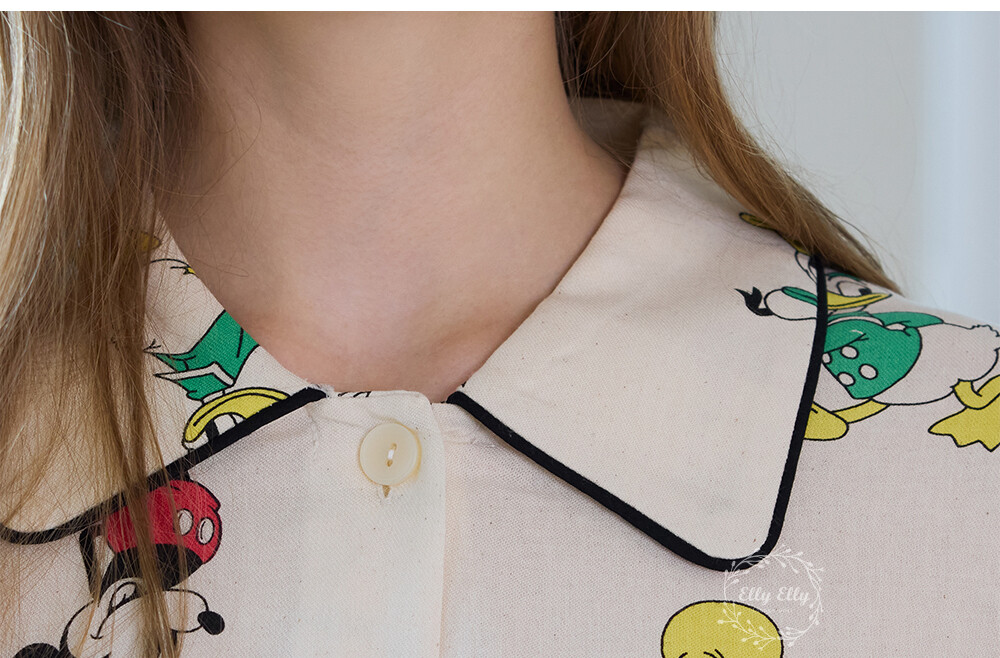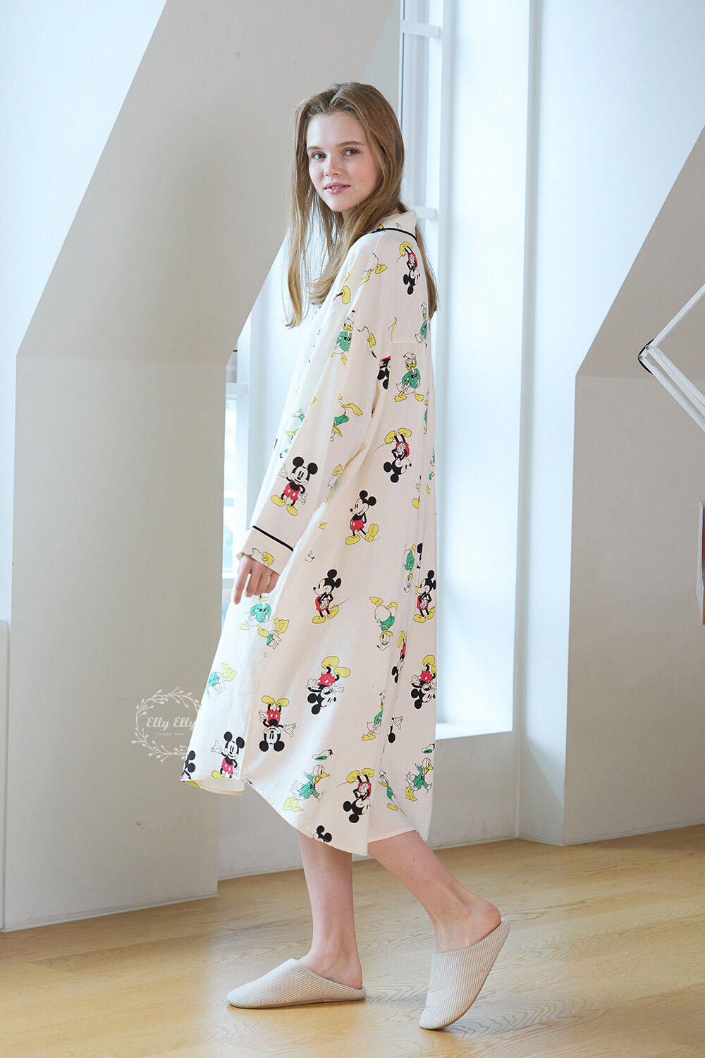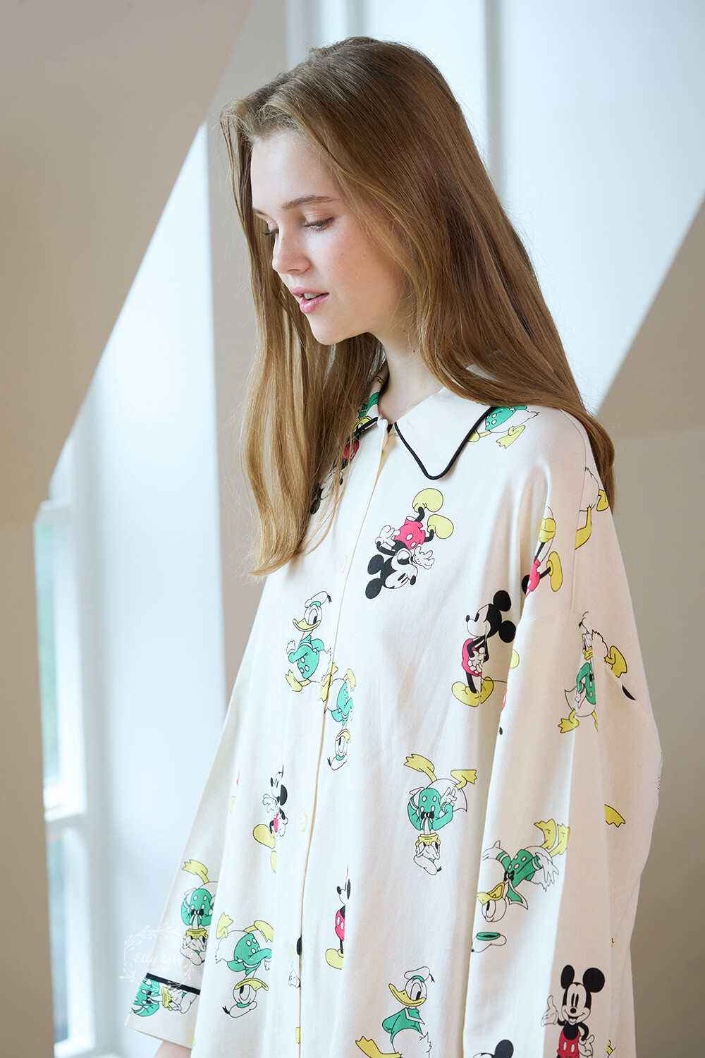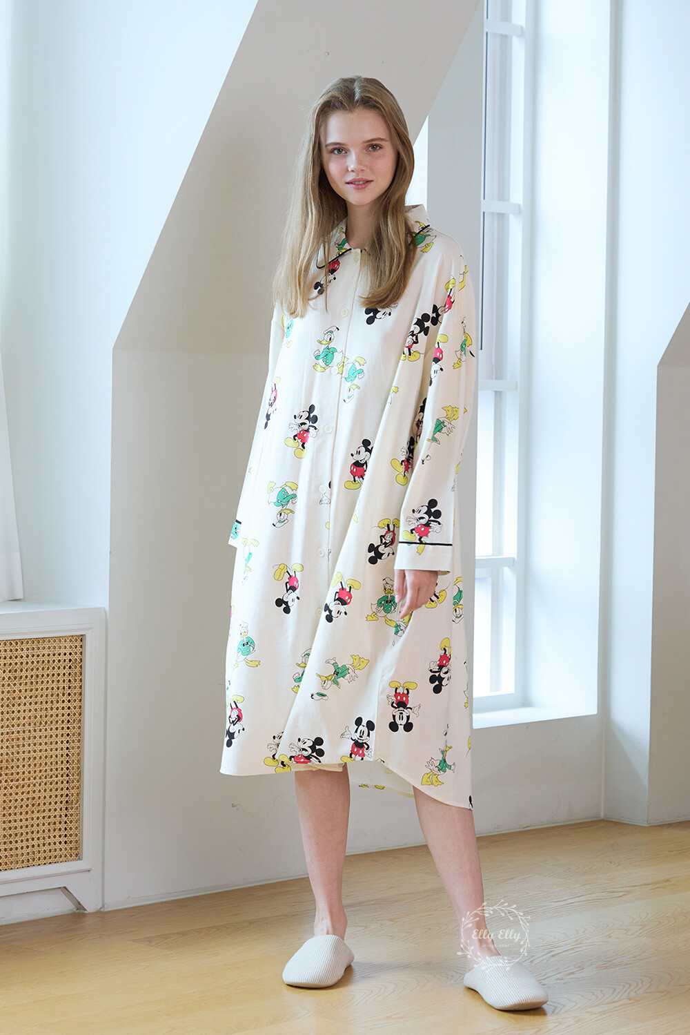 DK-5104 디즈니 카라파이핑 긴팔원피스 크림