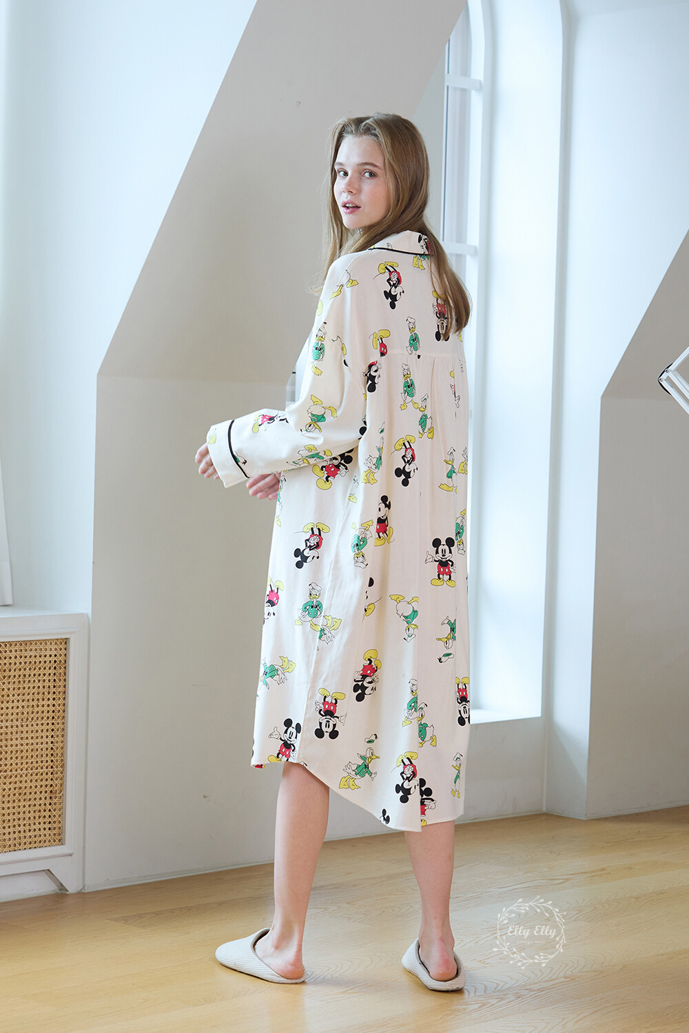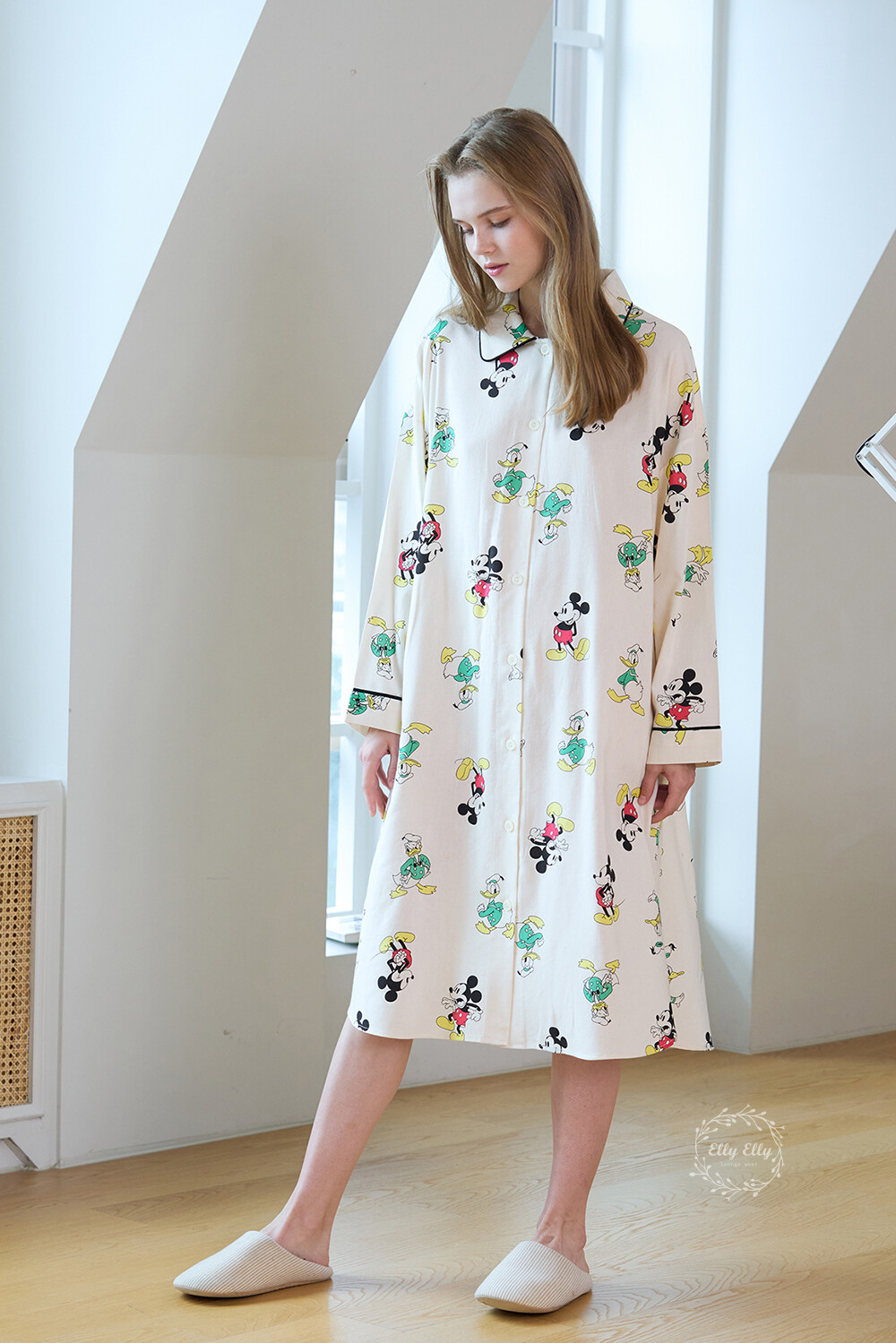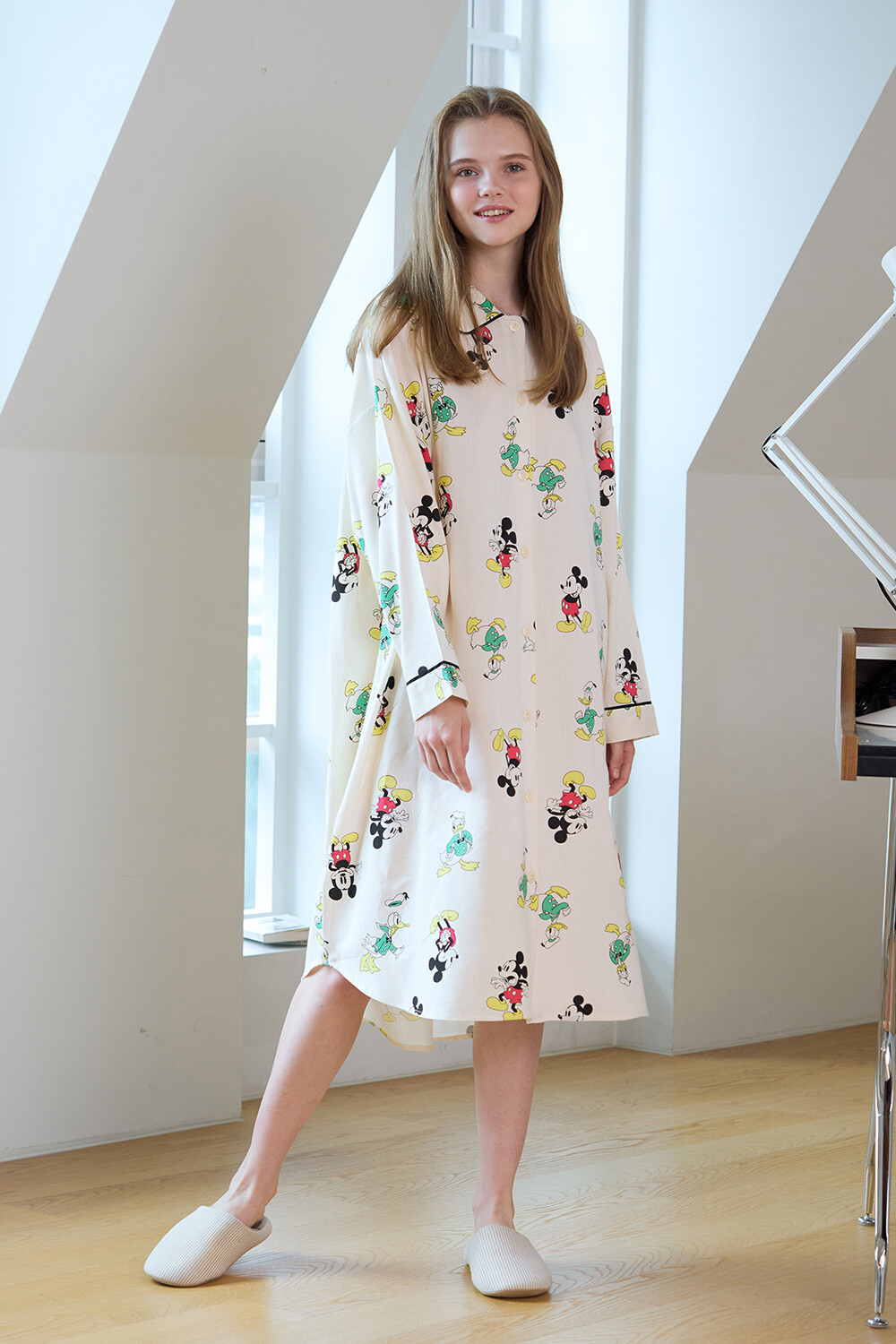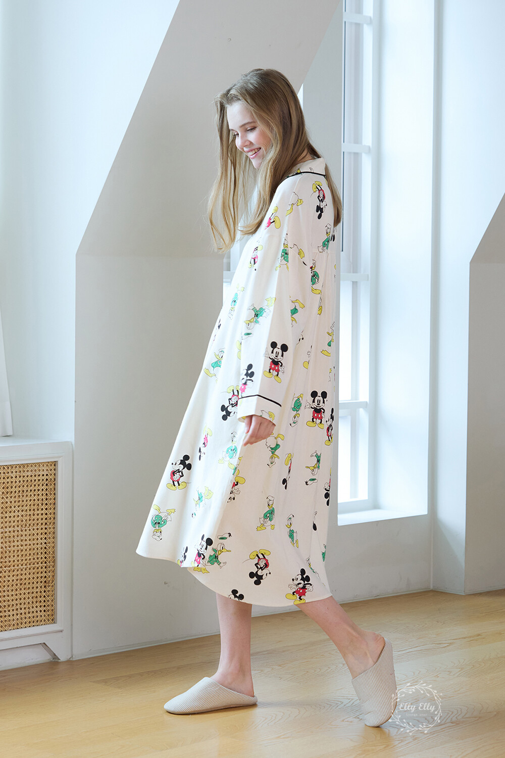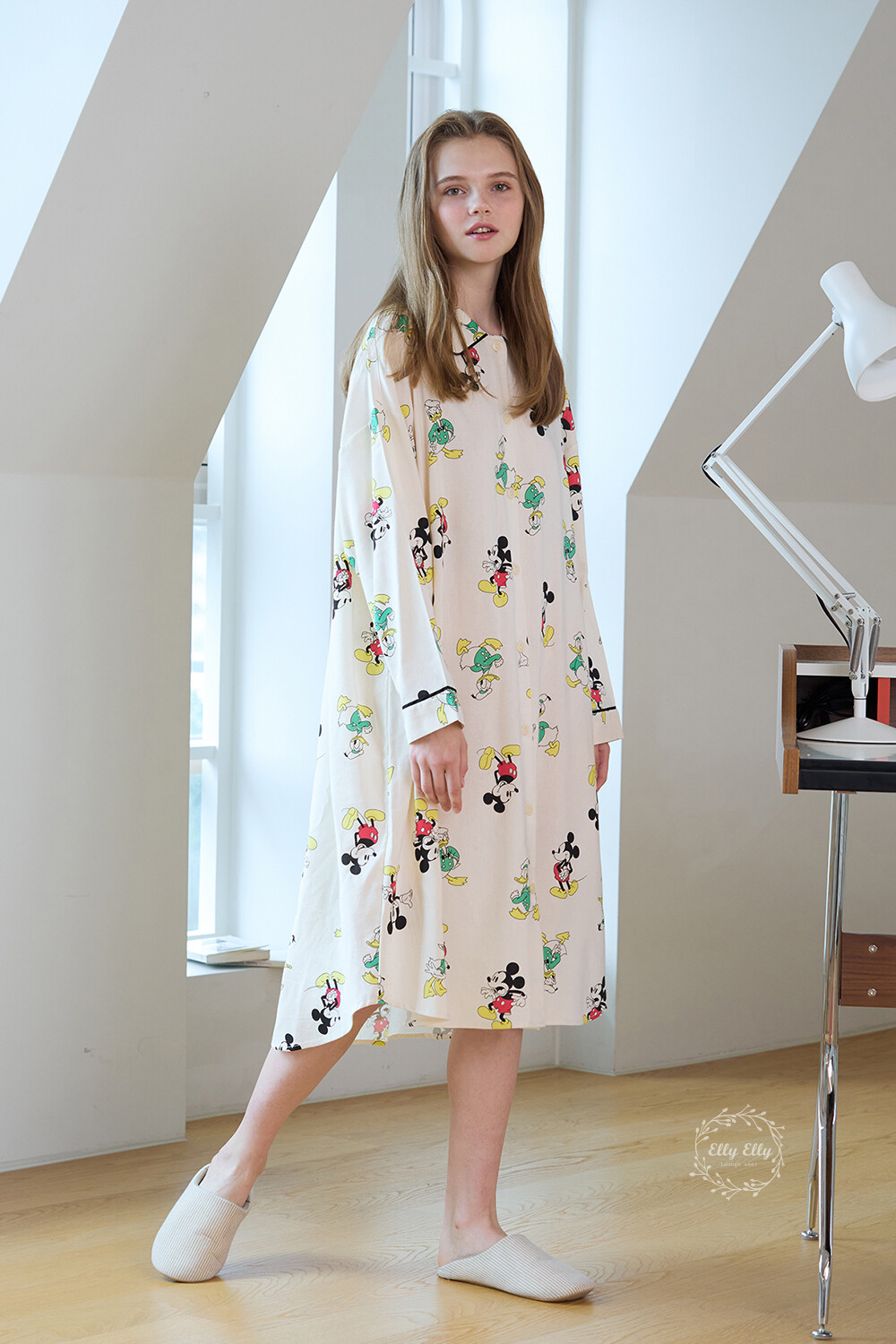 DK-5104 디즈니 카라파이핑 긴팔원피스 크림