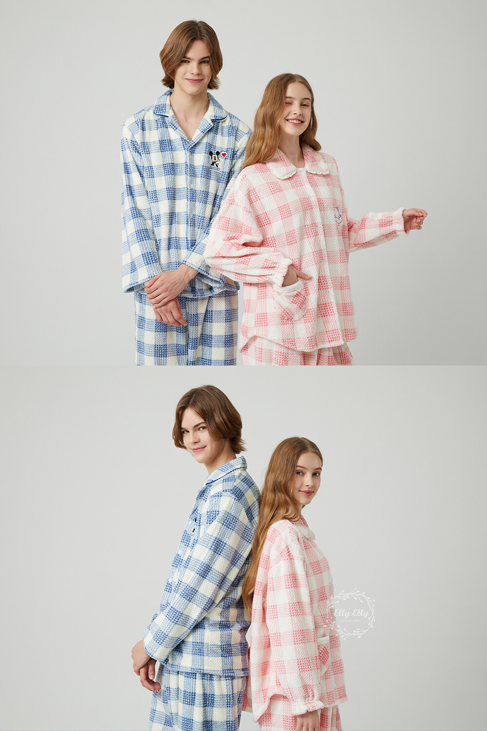 DK-5318 & HK-4322 산리오,디즈니정품 자수 와플 극세사 남여 커플 긴팔잠옷세트
