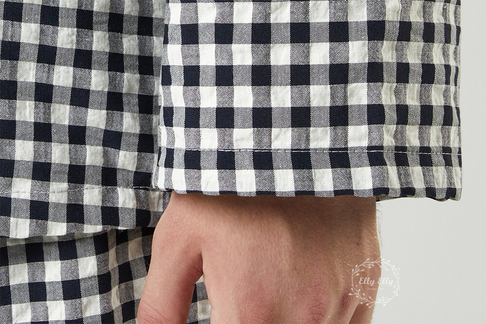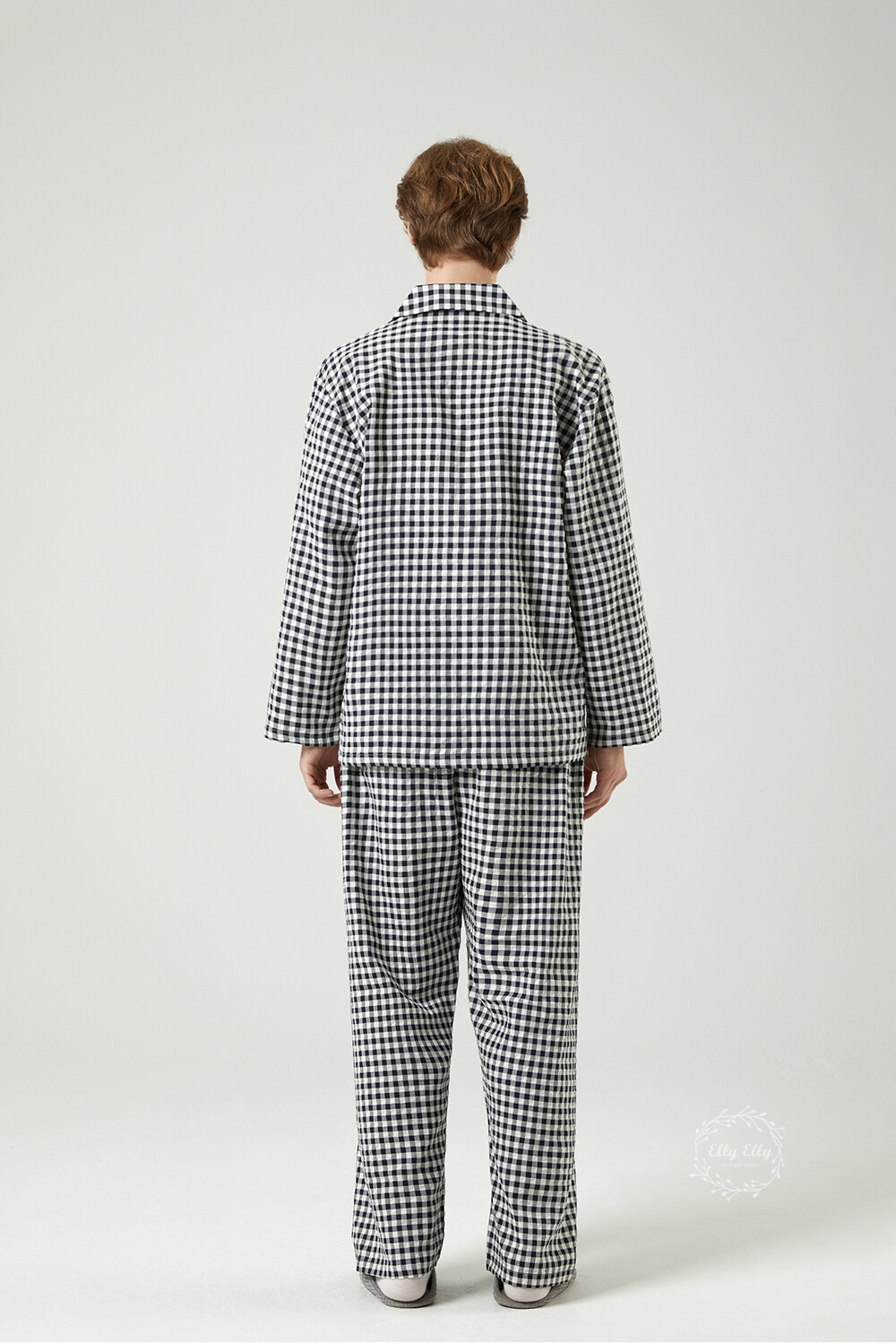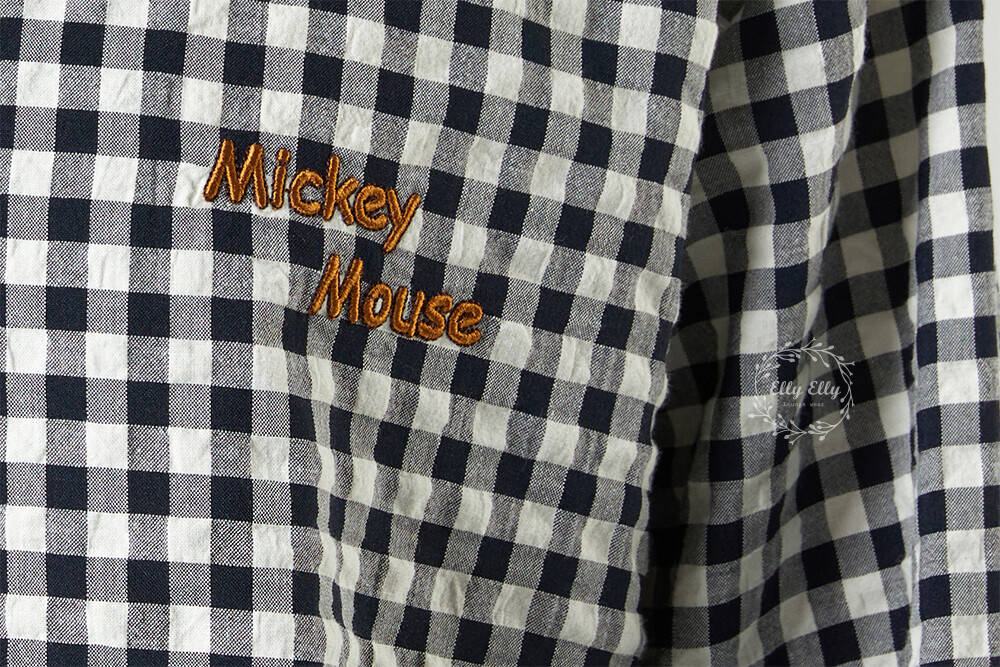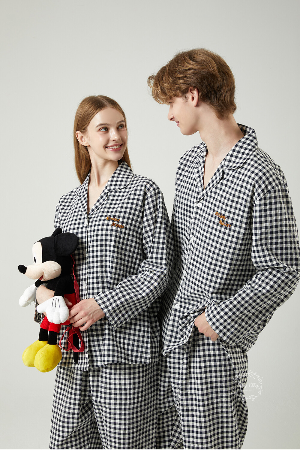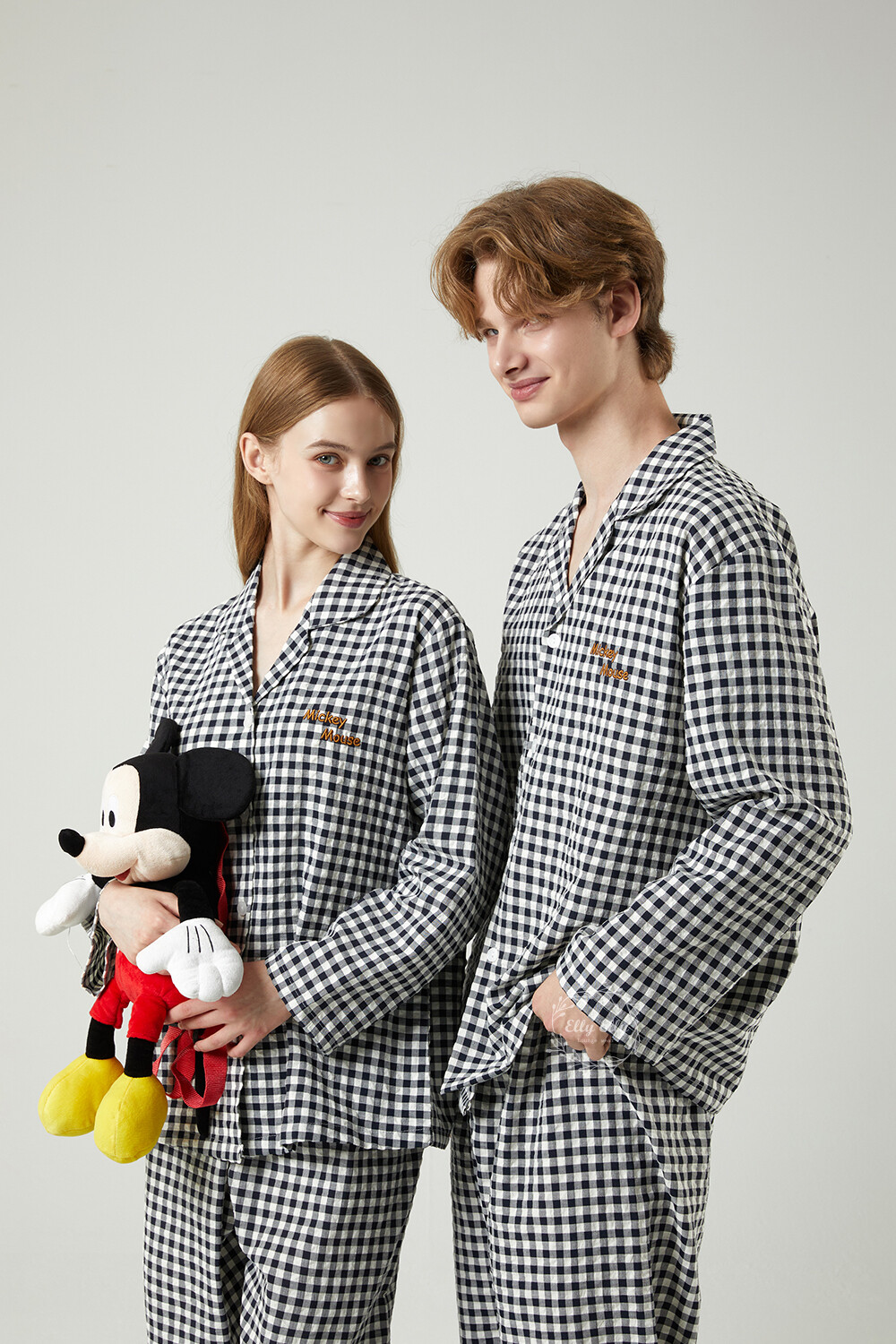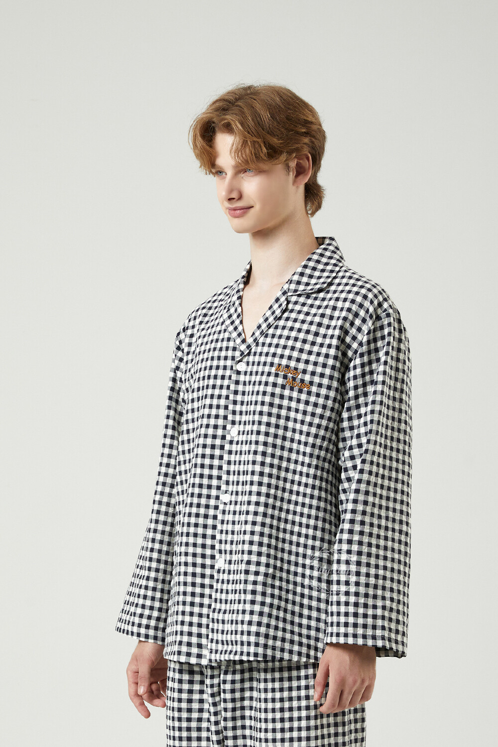 DK-5323 디즈니정품 미키마우스 체크무늬 와이카라 남성 긴팔페어 투피스 블랙