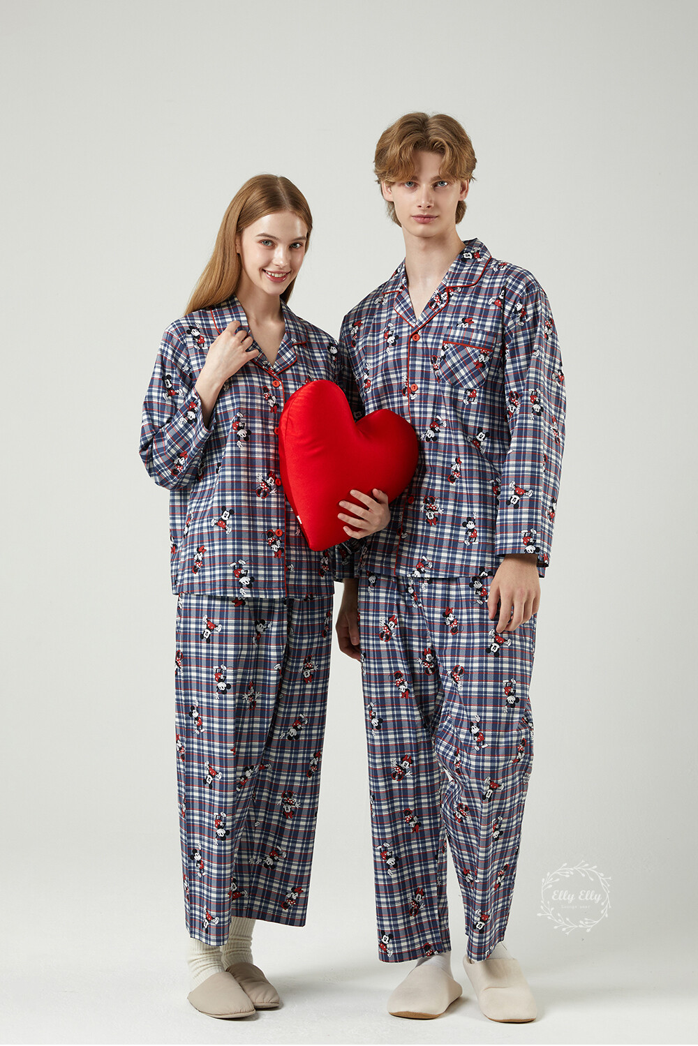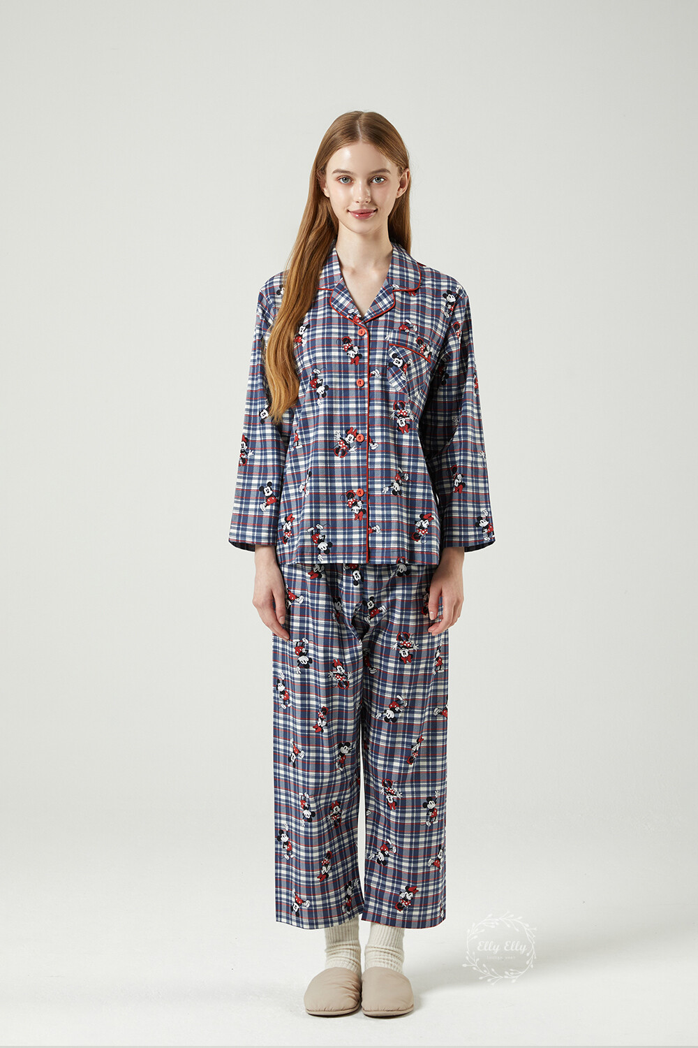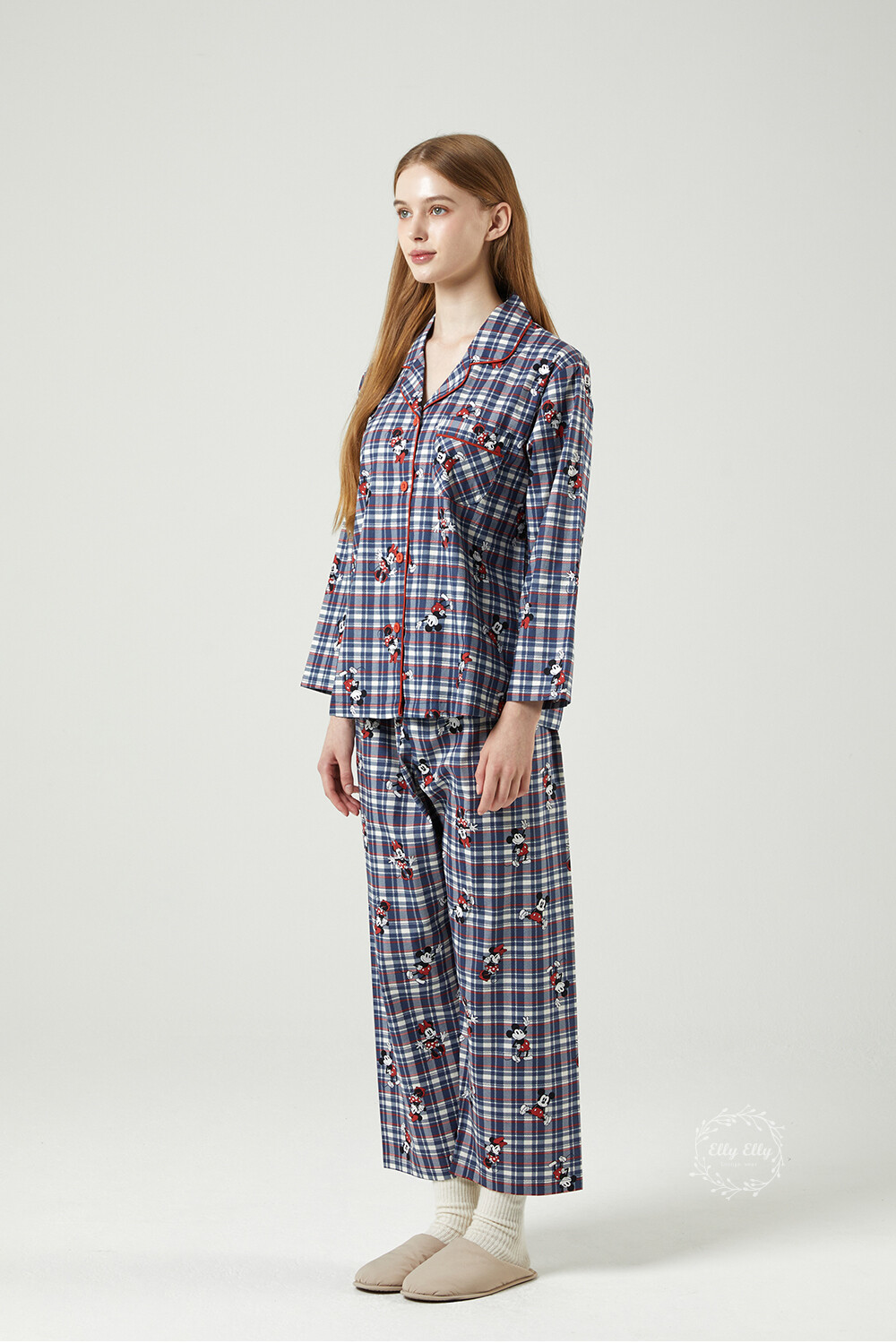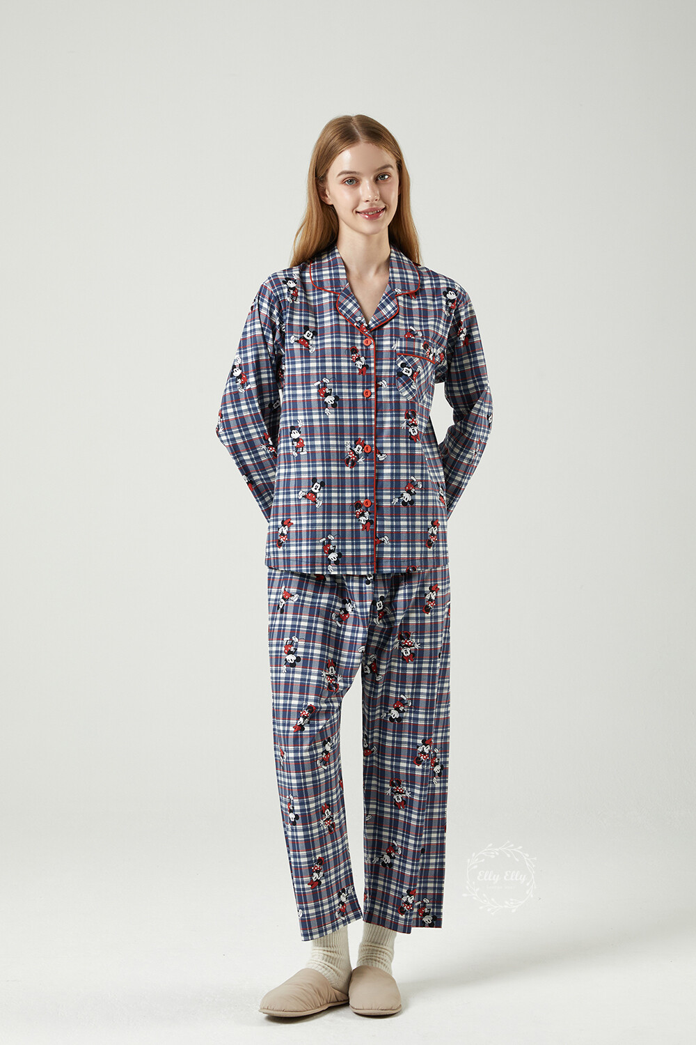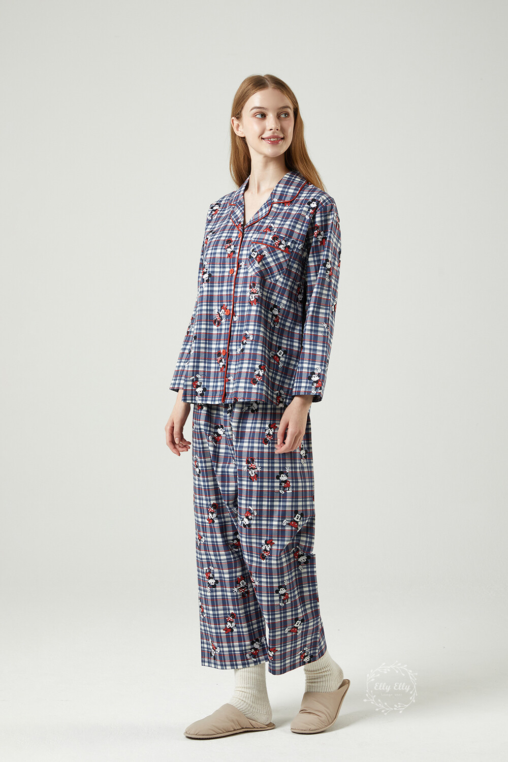 DK-5324 디즈니정품 미키마우스 체크무늬 와이카라 긴팔페어 투피스