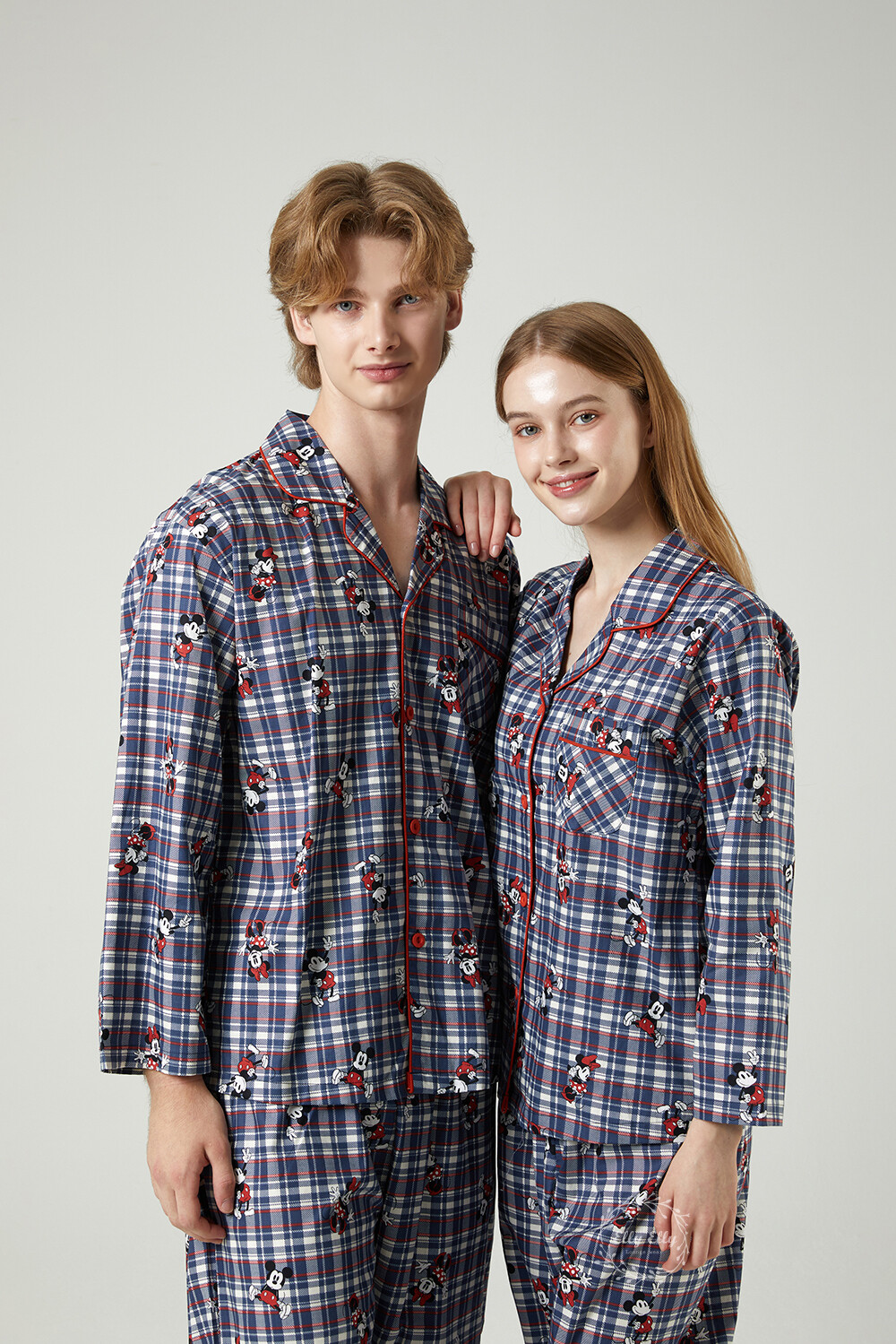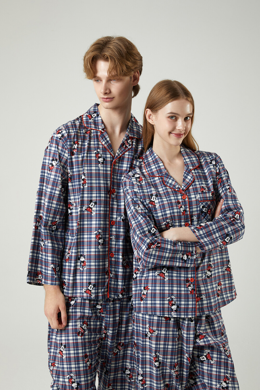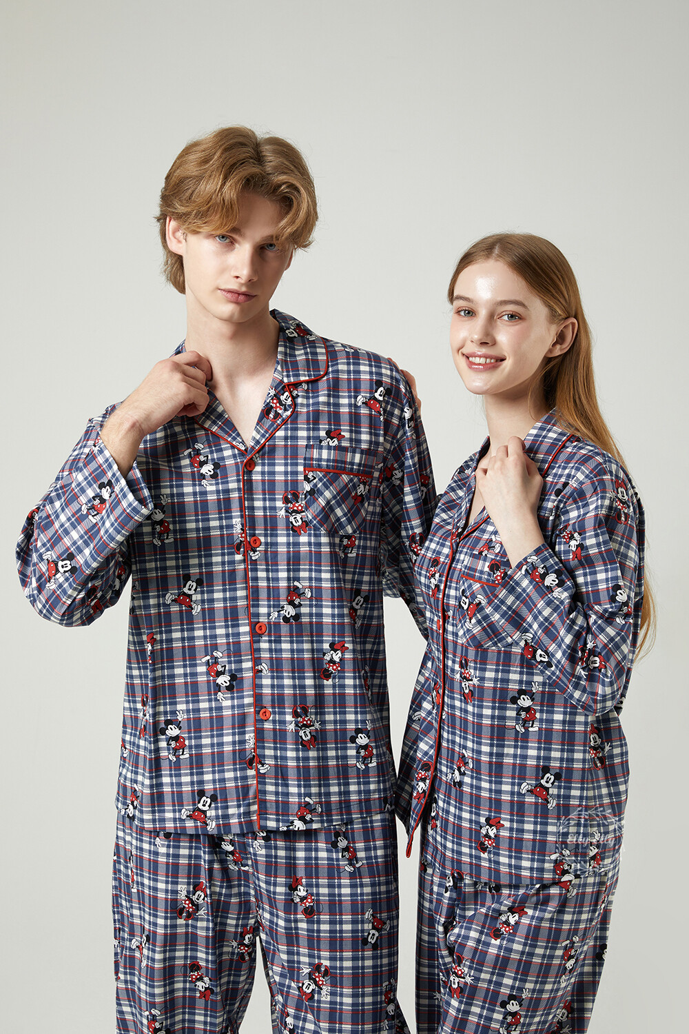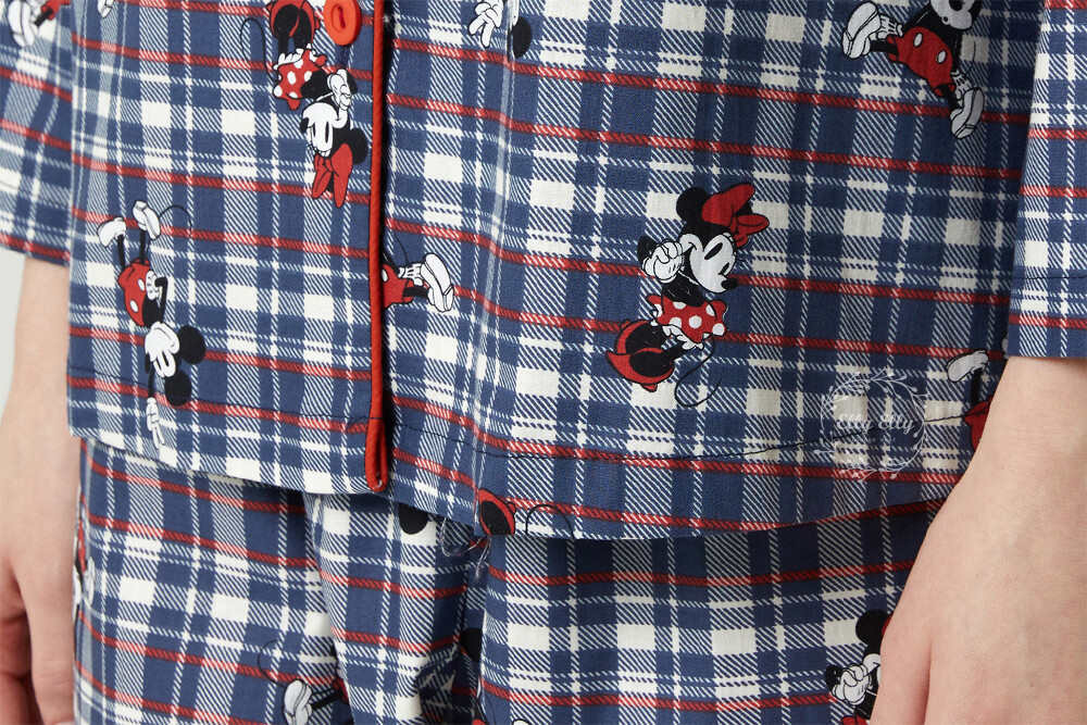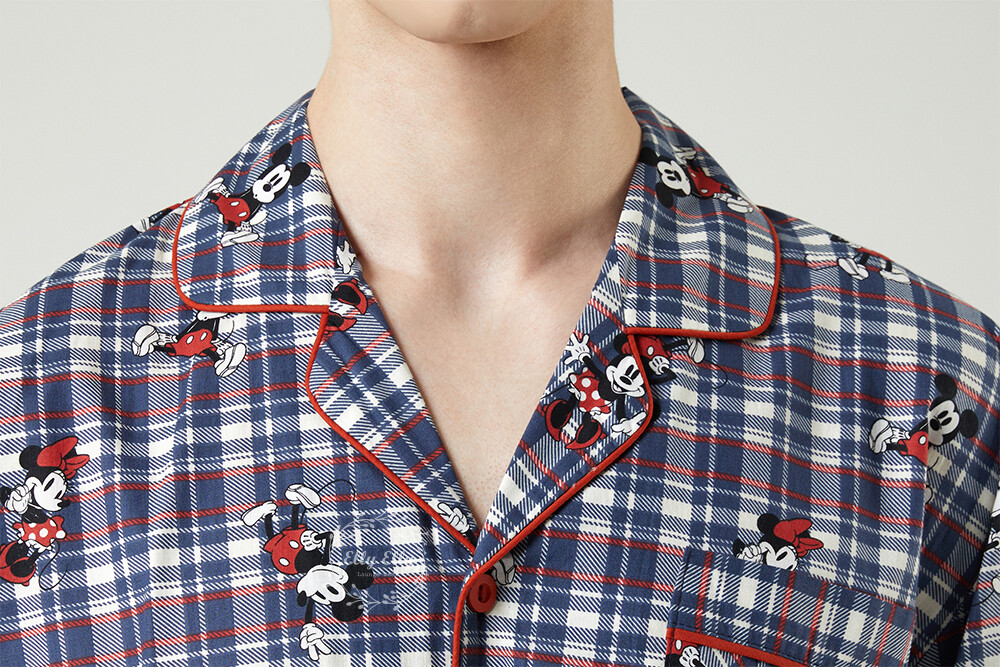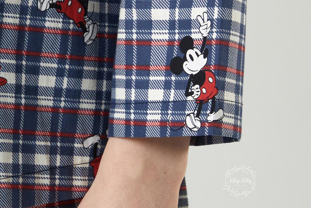 DK-5324 디즈니정품 미키마우스 체크무늬 남여커플 와이카라 잠옷세트 긴팔투피스