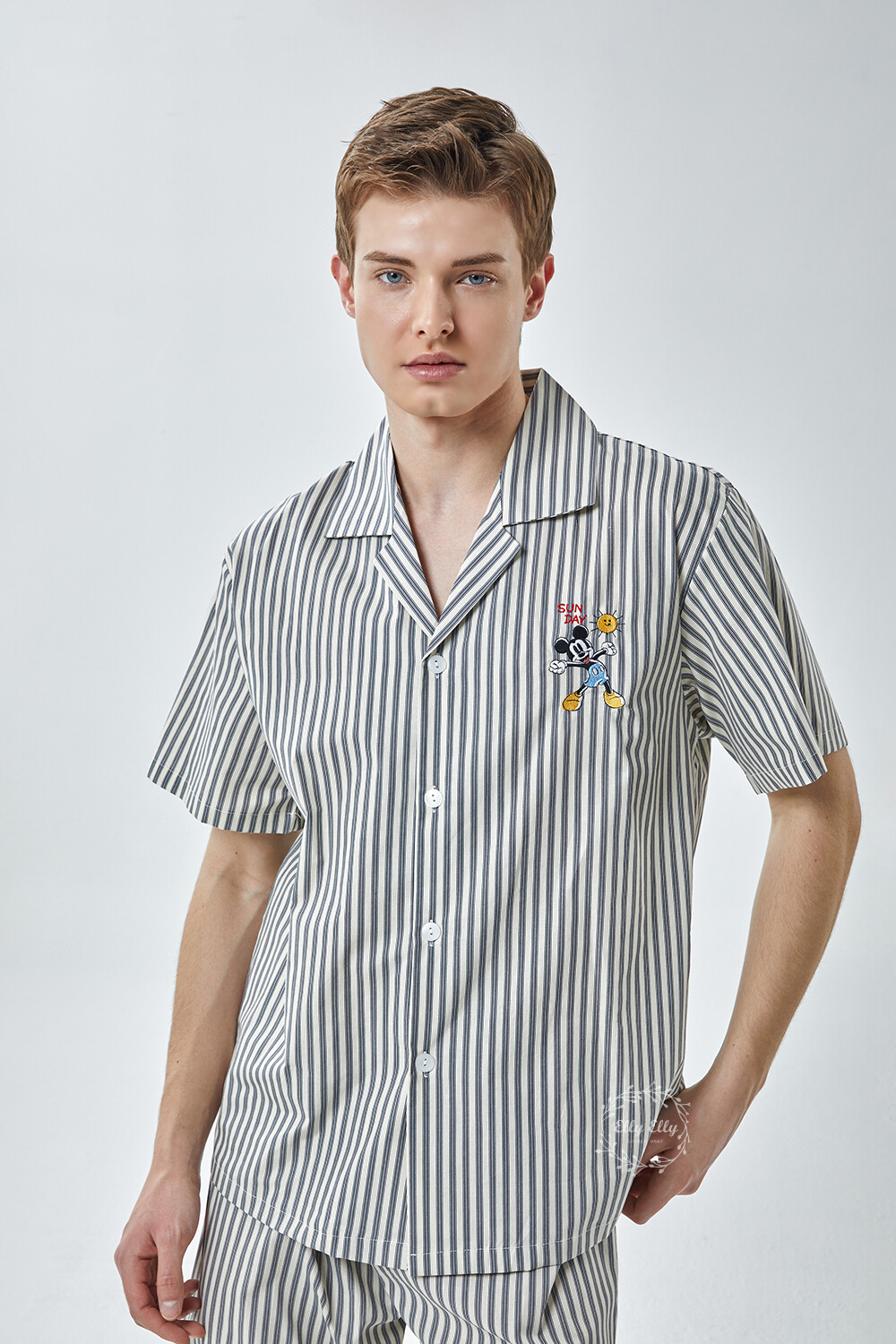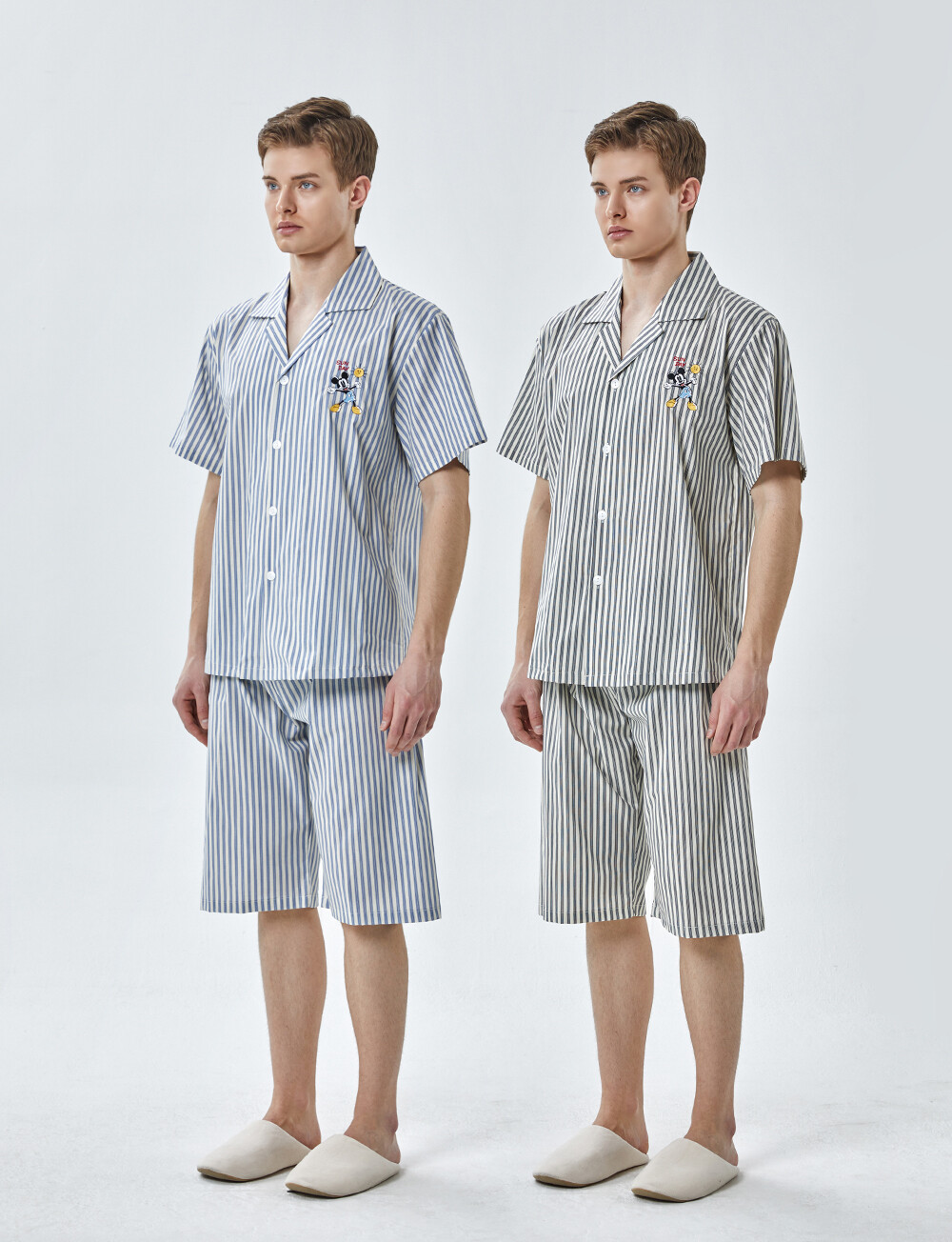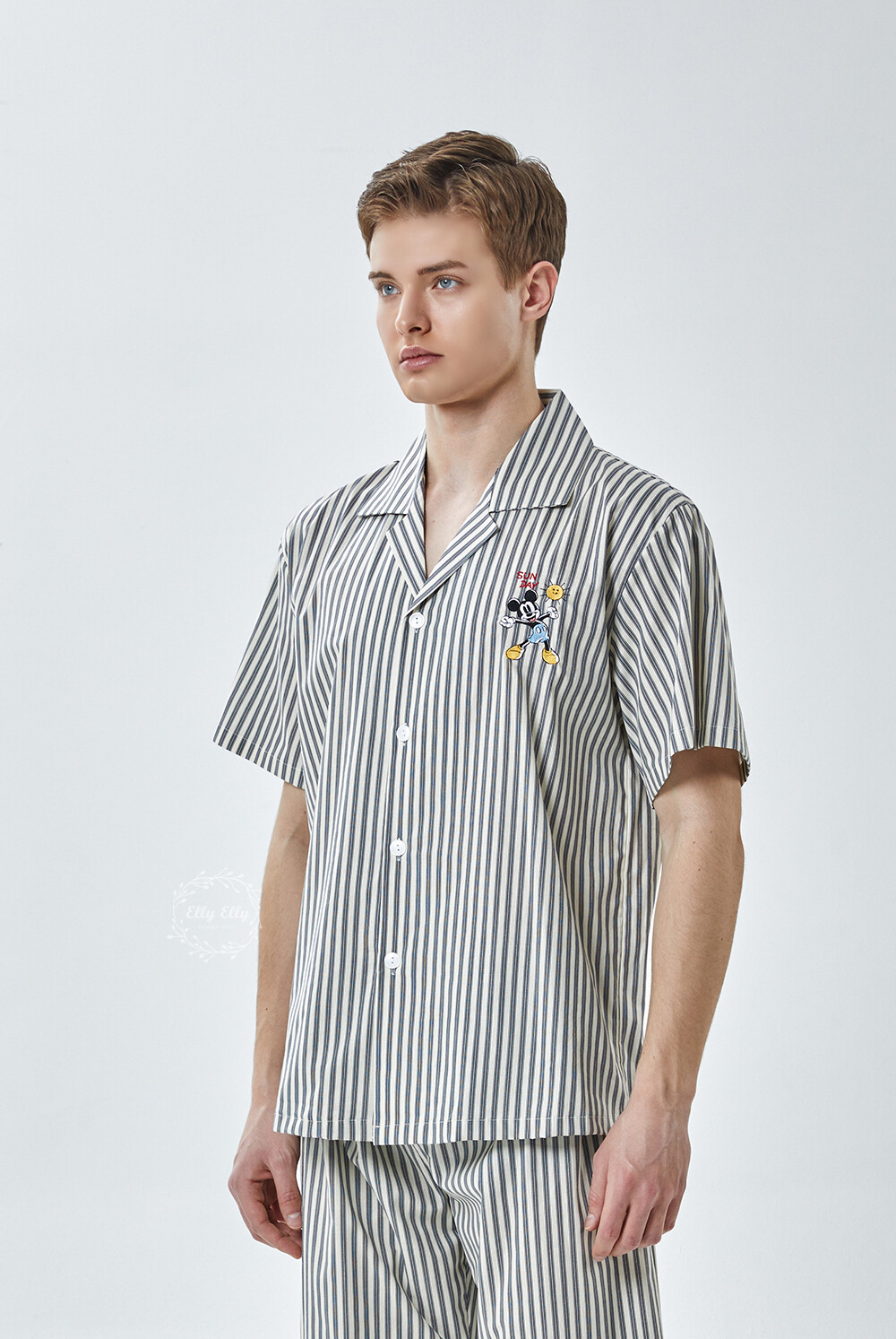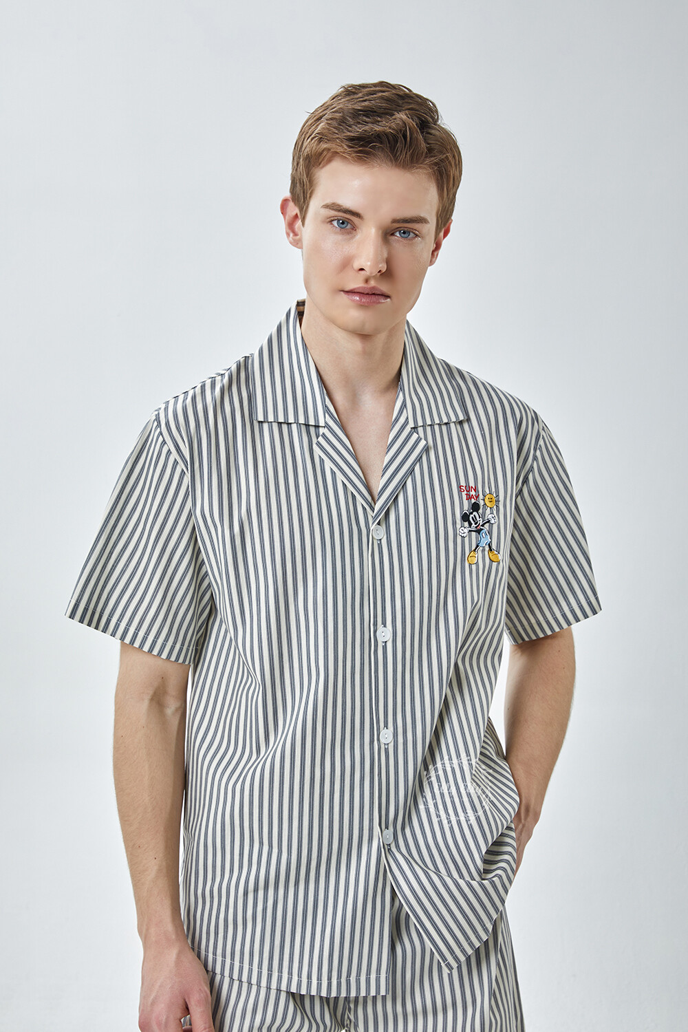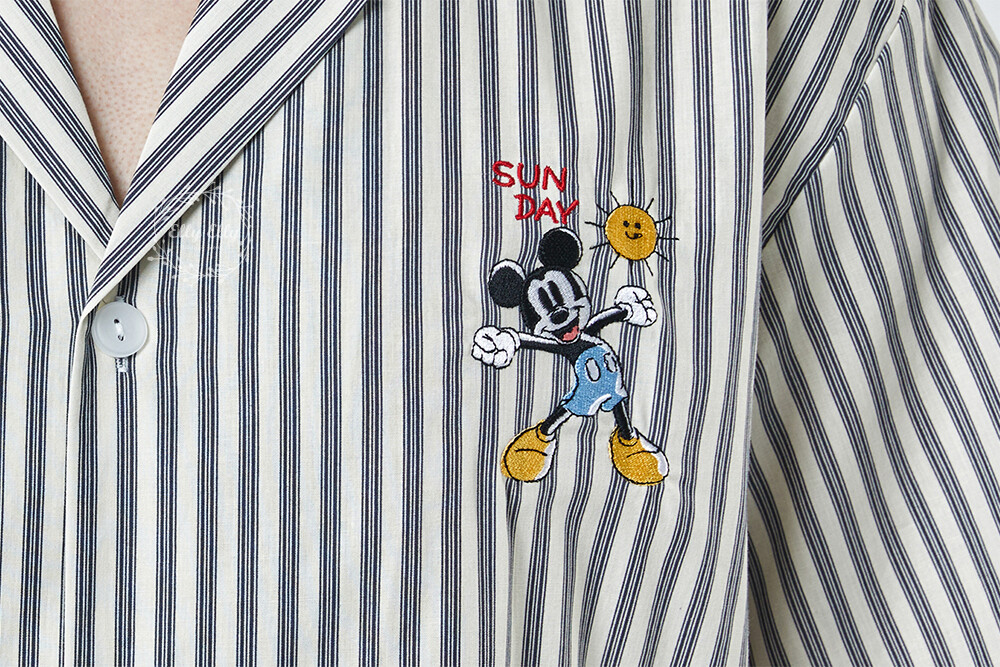 DK-5355 디즈니정품 미키마우스 자수 스트라이프 와이카라 남성 반팔상하 2COLOR