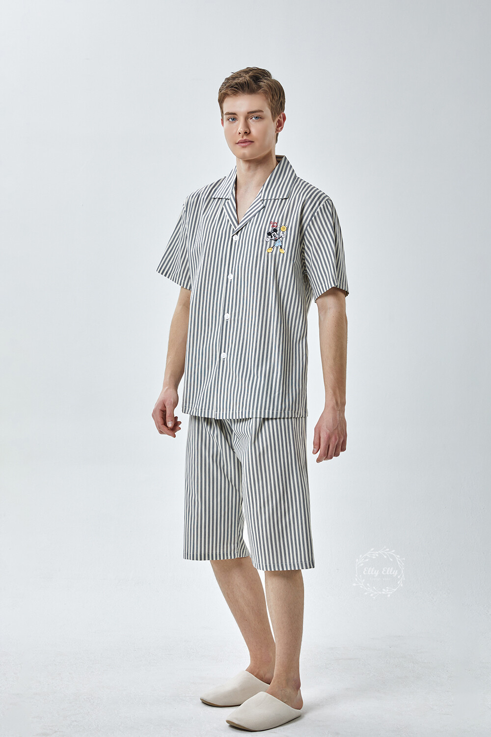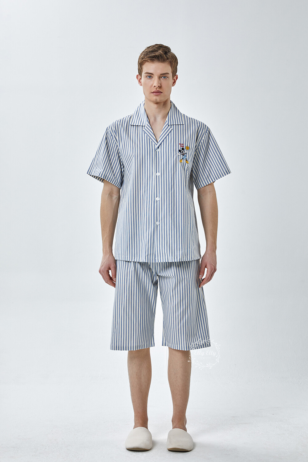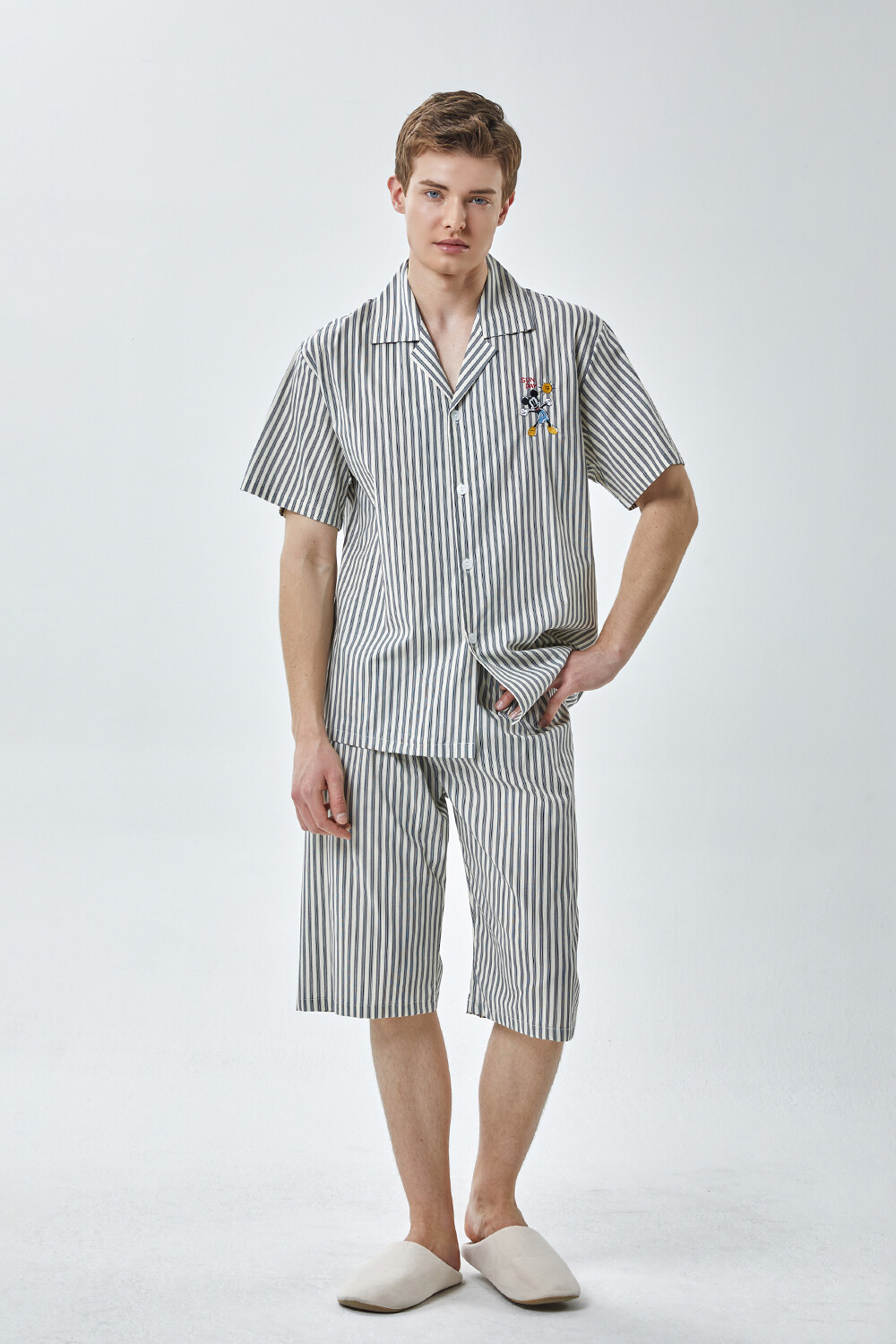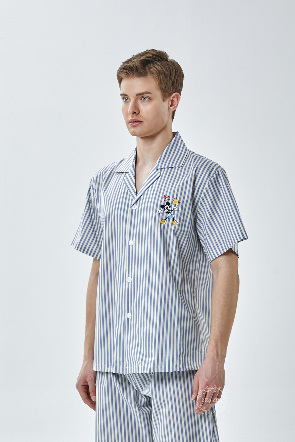 DK-5355 디즈니정품 미키마우스 자수 스트라이프 와이카라 남성 반팔상하 2COLOR
