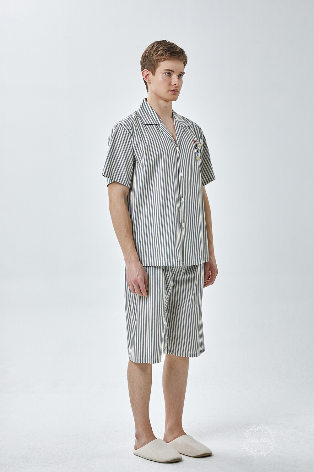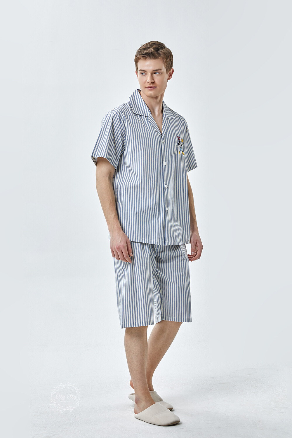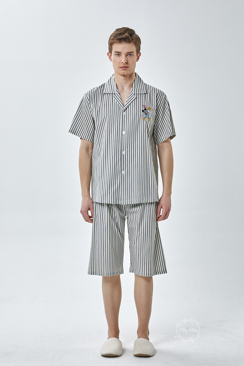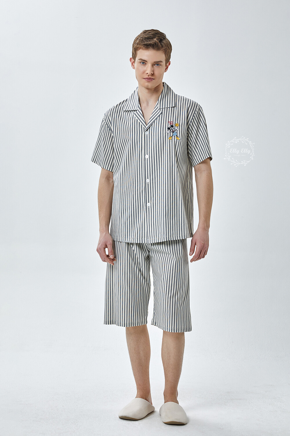 DK-5355 디즈니정품 미키마우스 자수 스트라이프 와이카라 남성 반팔상하 2COLOR