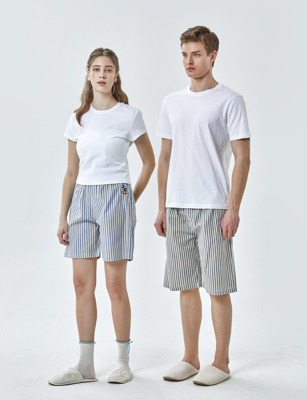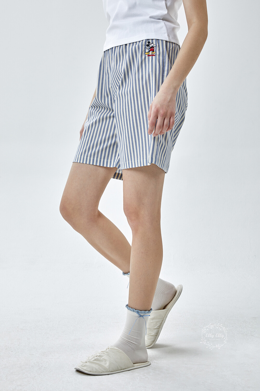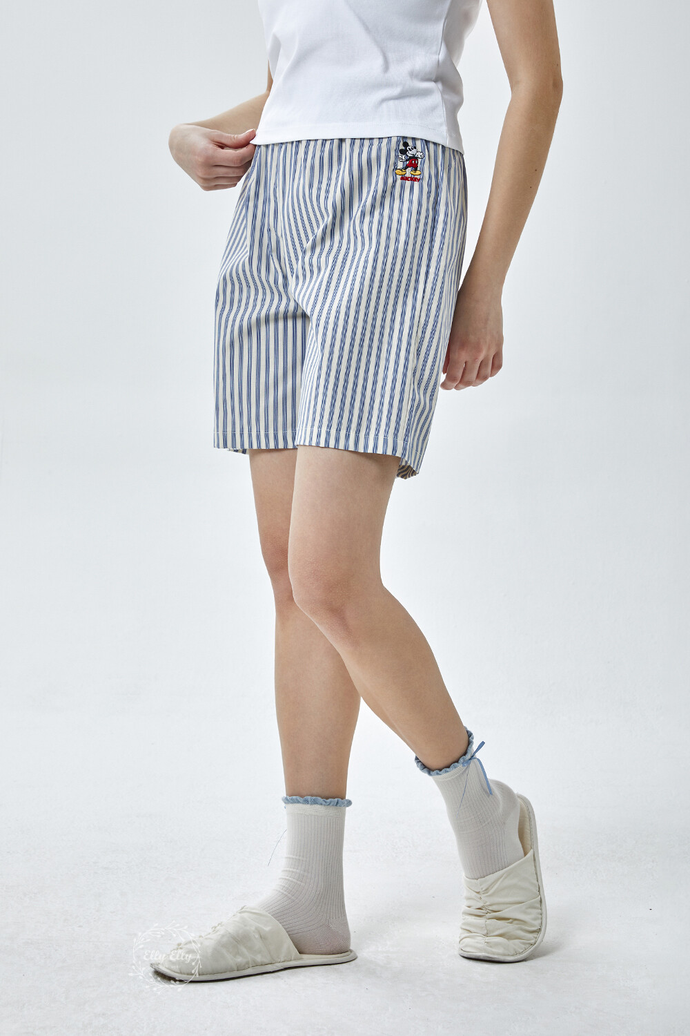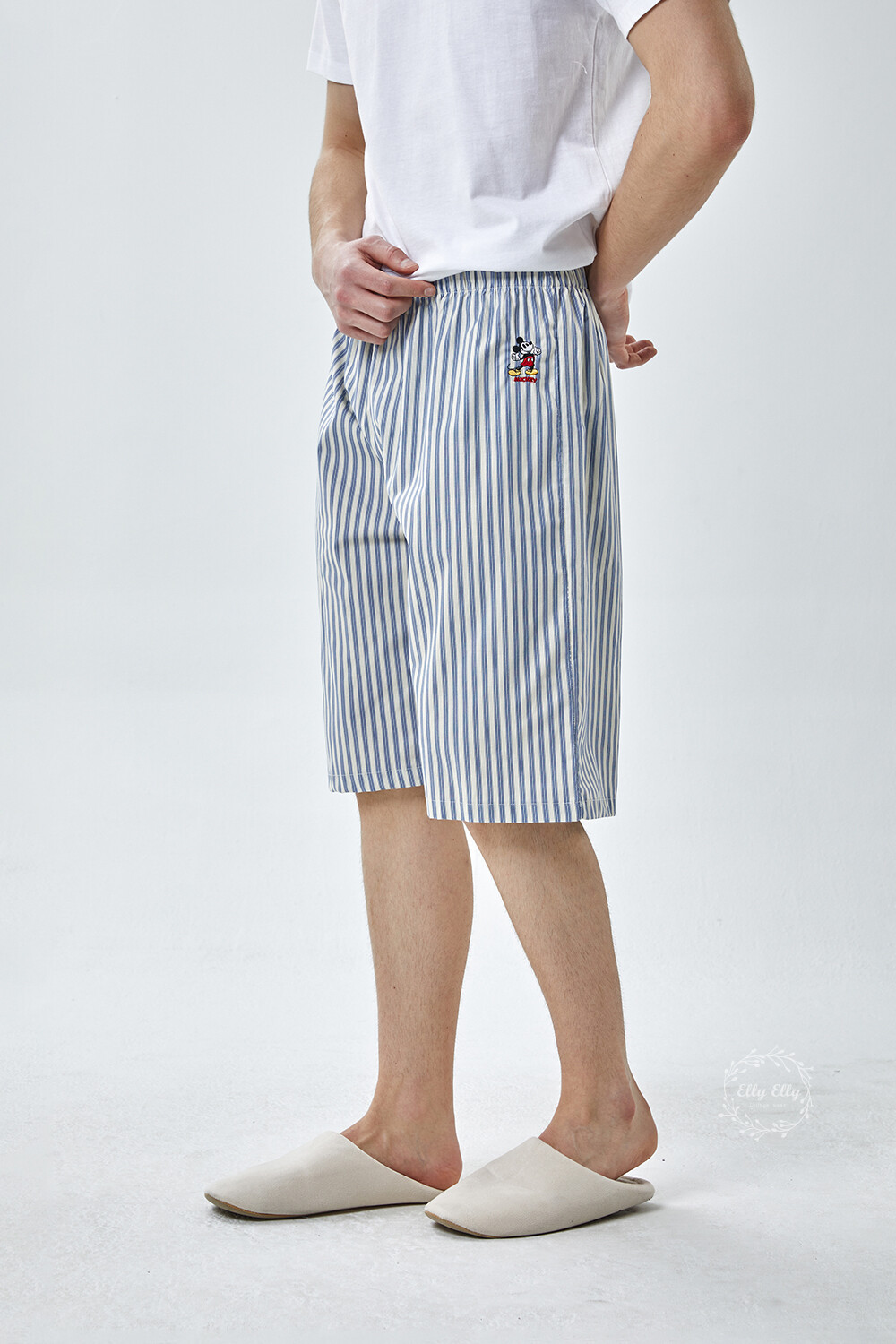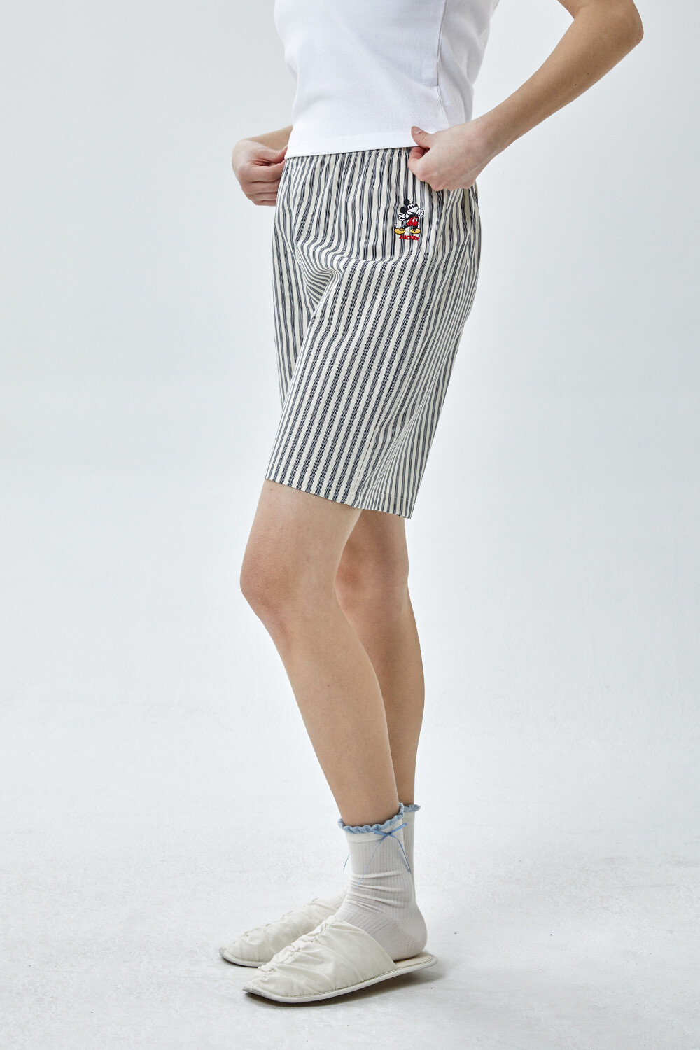 DK-5356 디즈니정품 남여공용 스트라이프 자수 5부파자마 잠옷바지 2COLOR