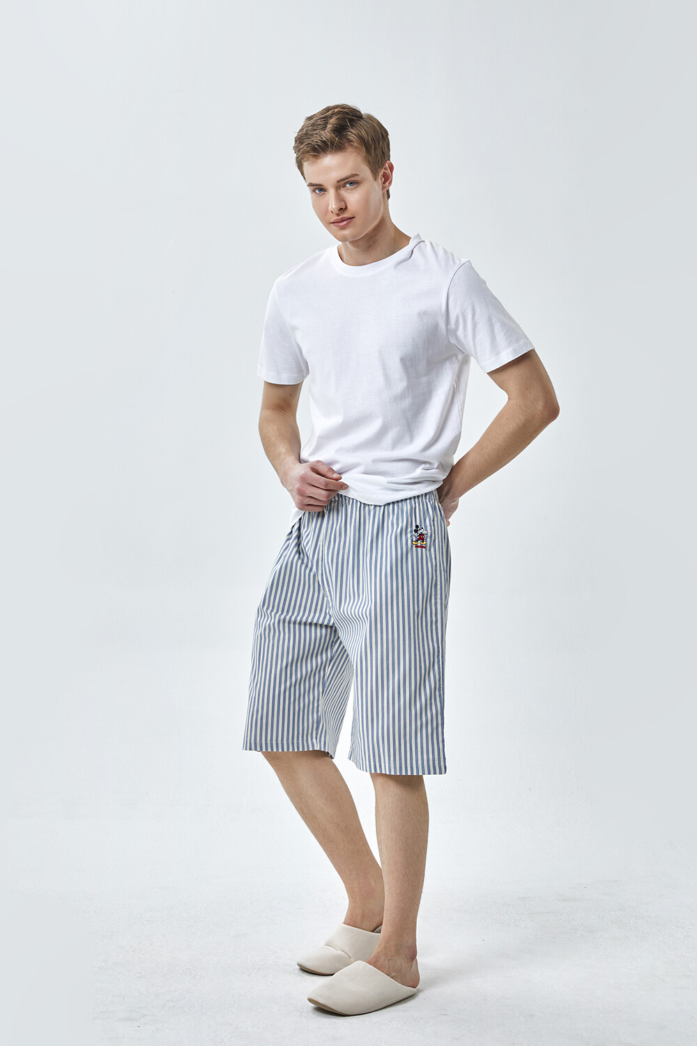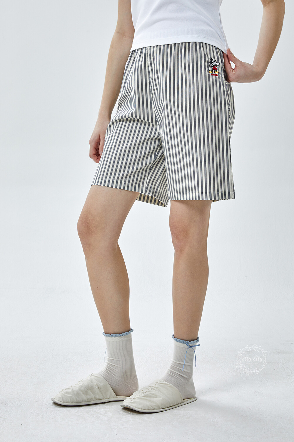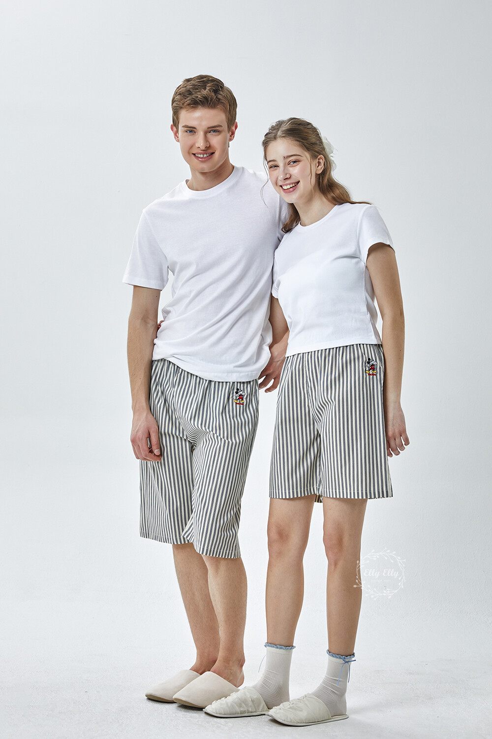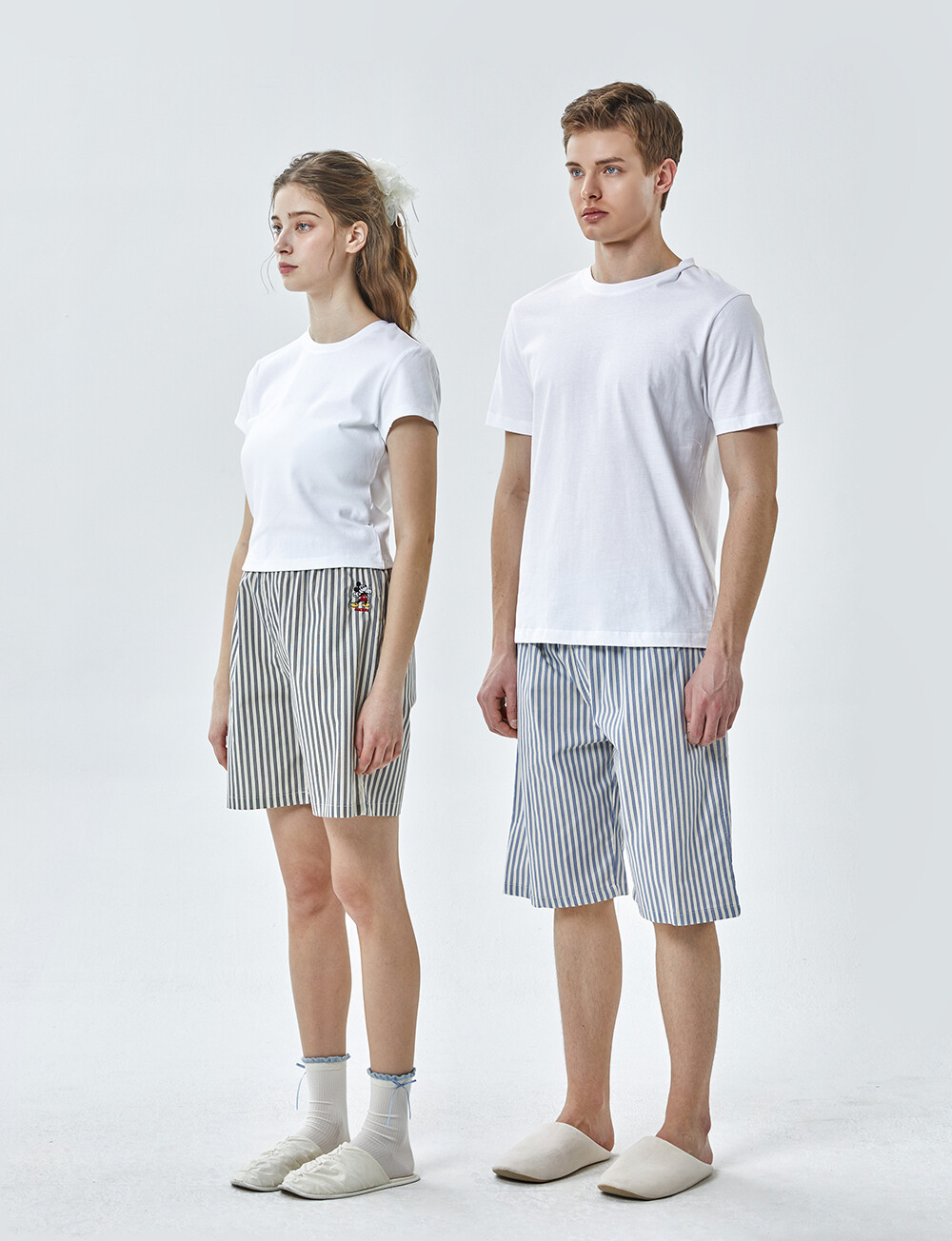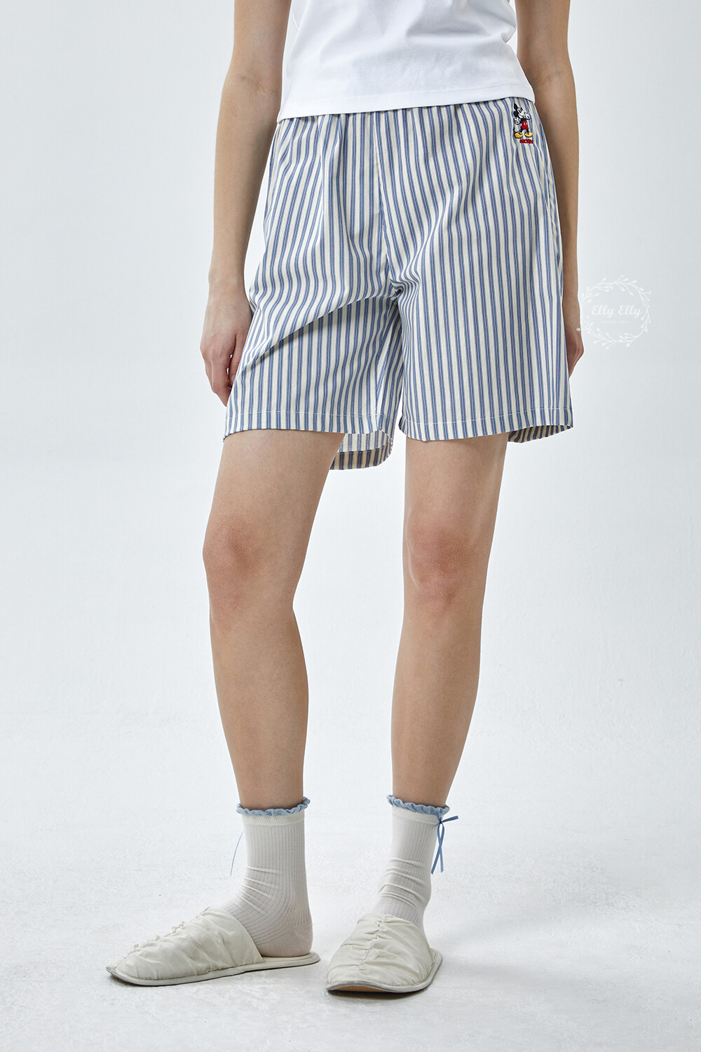 DK-5356 디즈니정품 남여공용 스트라이프 자수 5부파자마 잠옷바지 2COLOR