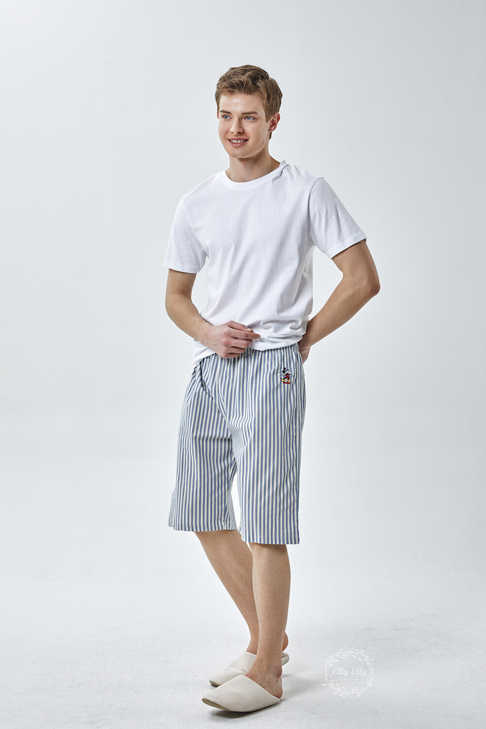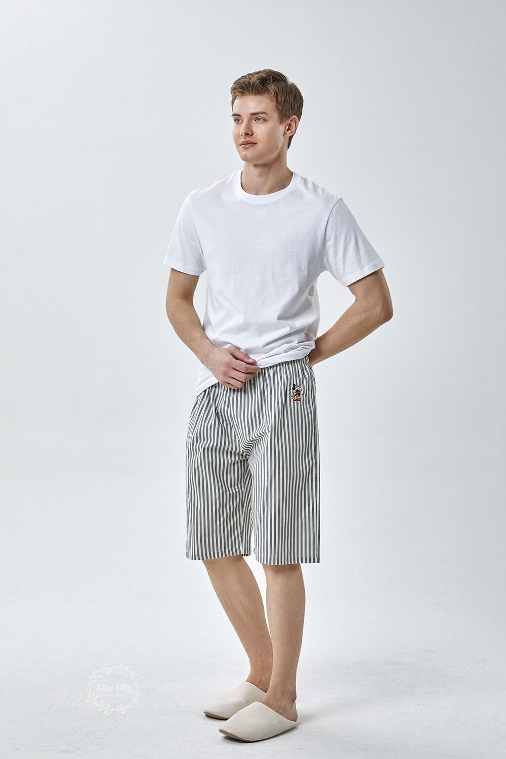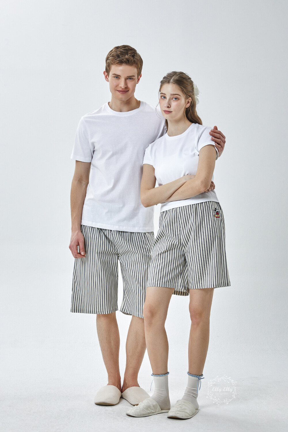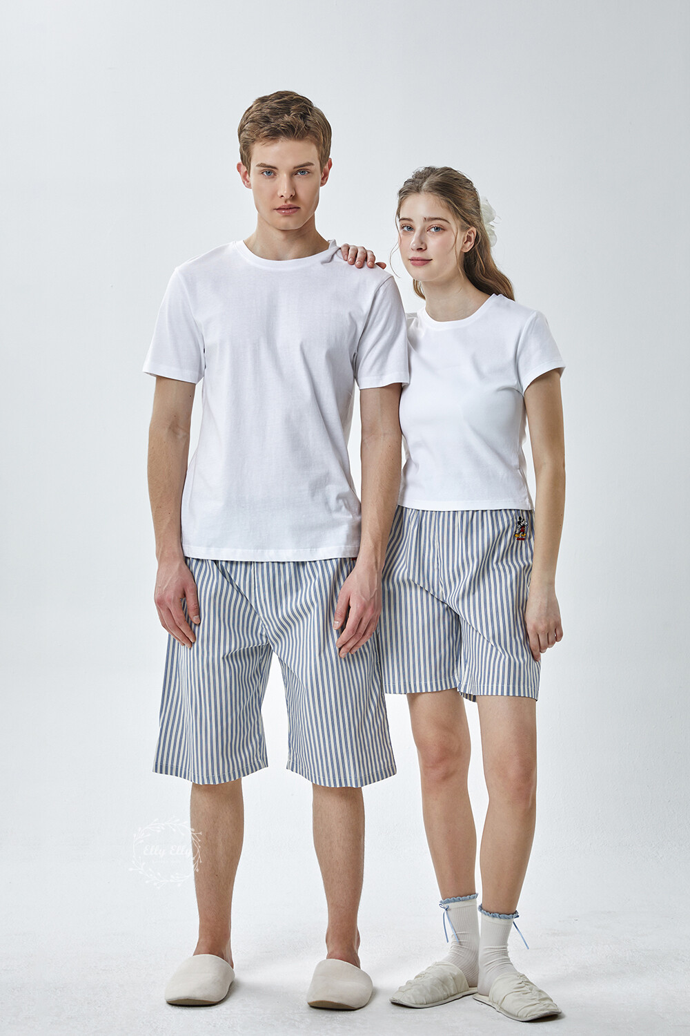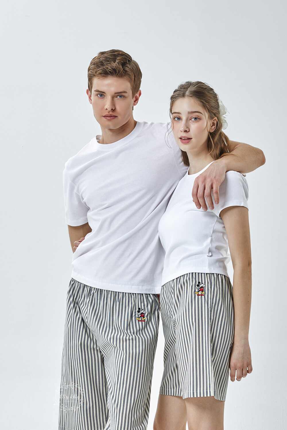DK-5356 디즈니정품 남여공용 스트라이프 자수 5부파자마 잠옷바지 2COLOR