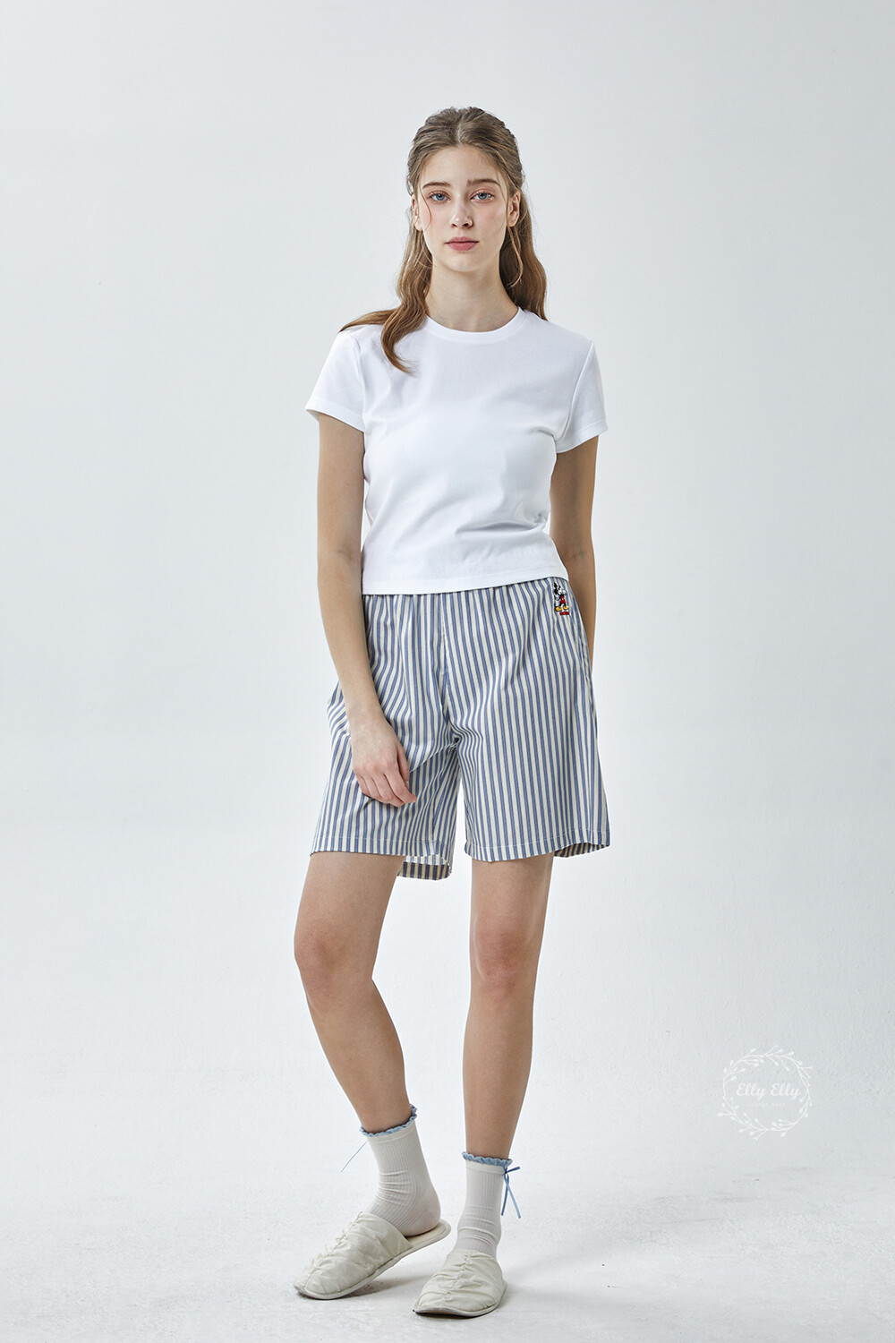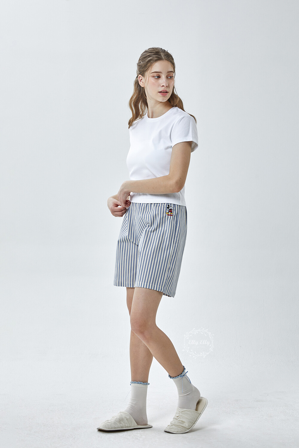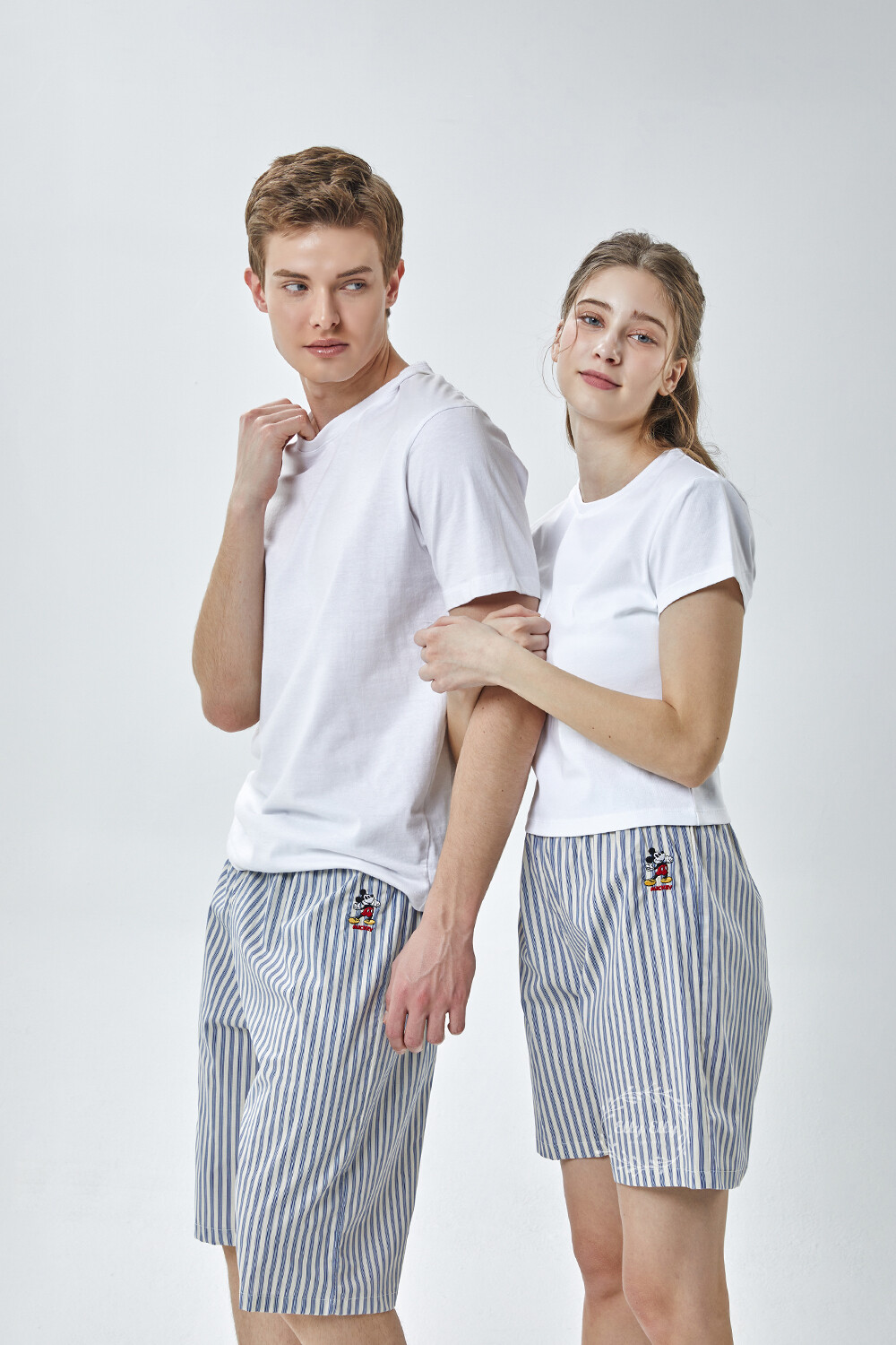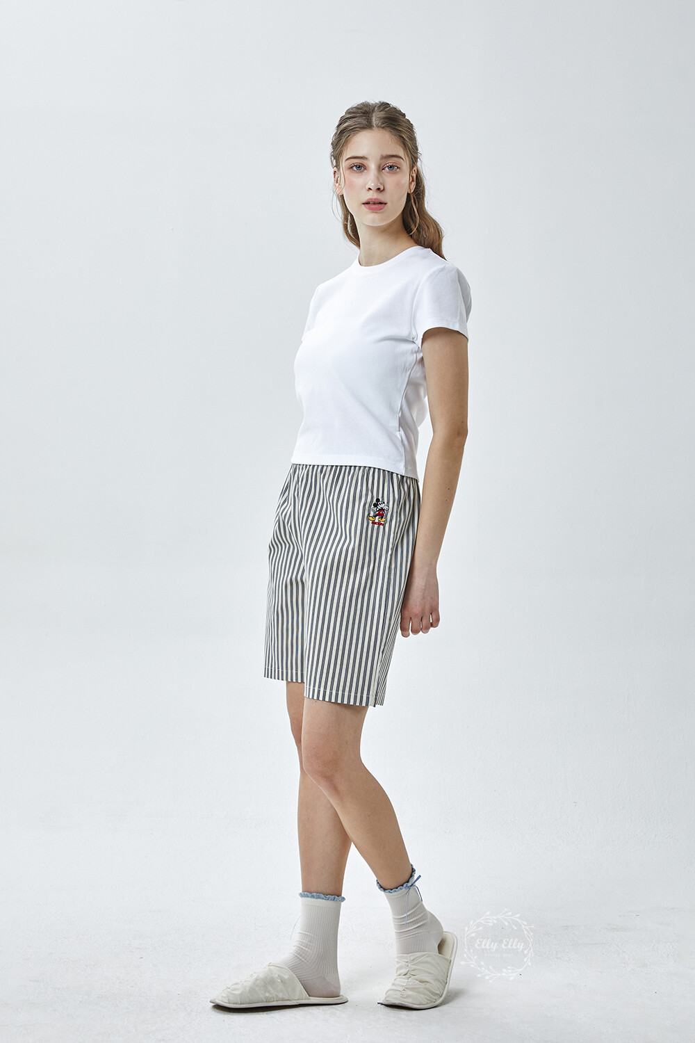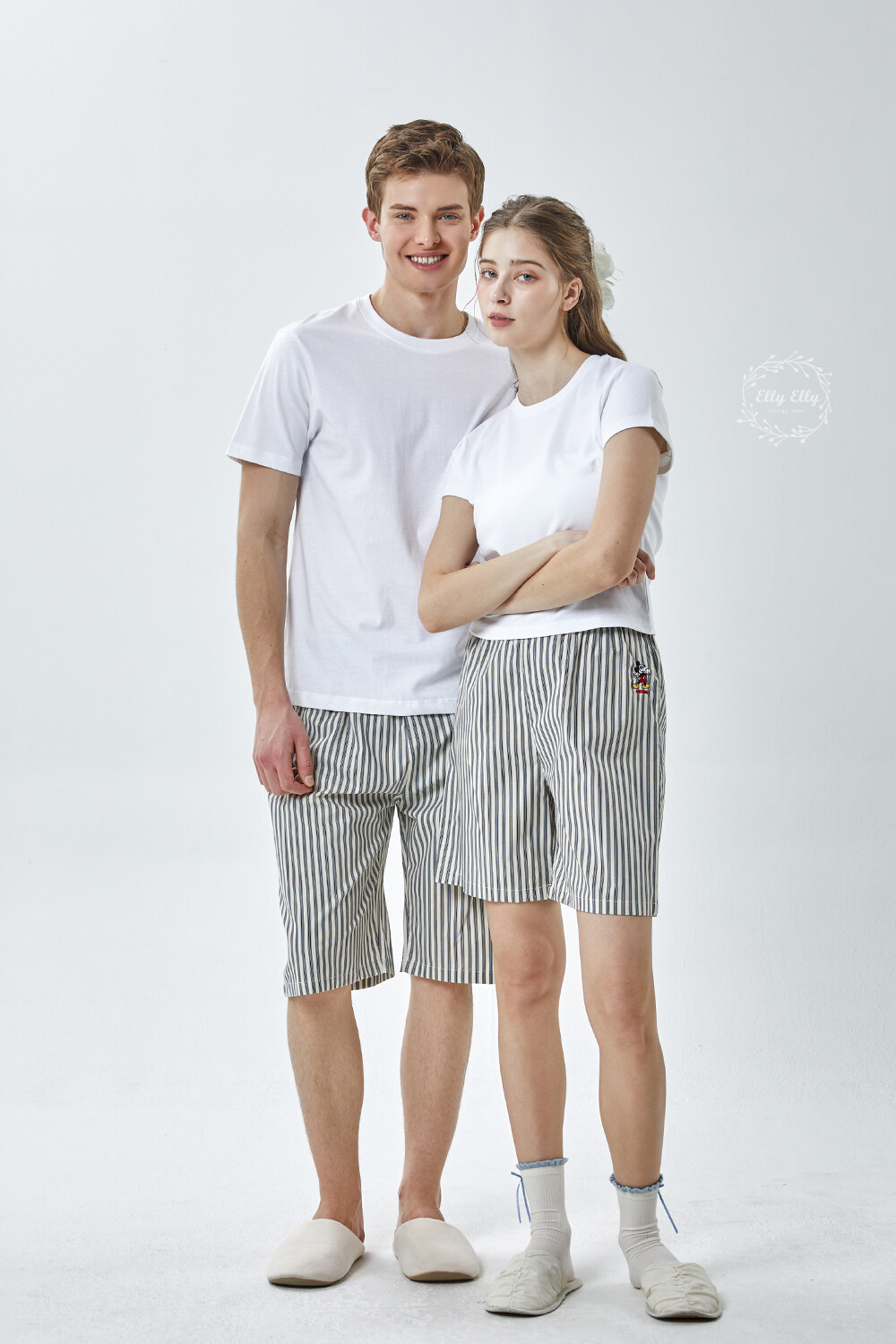 DK-5356 디즈니정품 남여공용 스트라이프 자수 5부파자마 잠옷바지 2COLOR