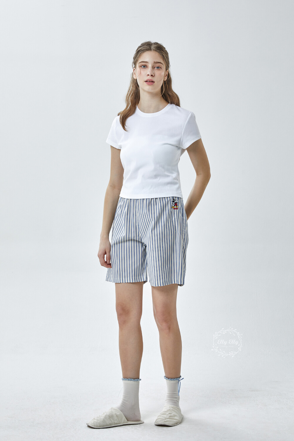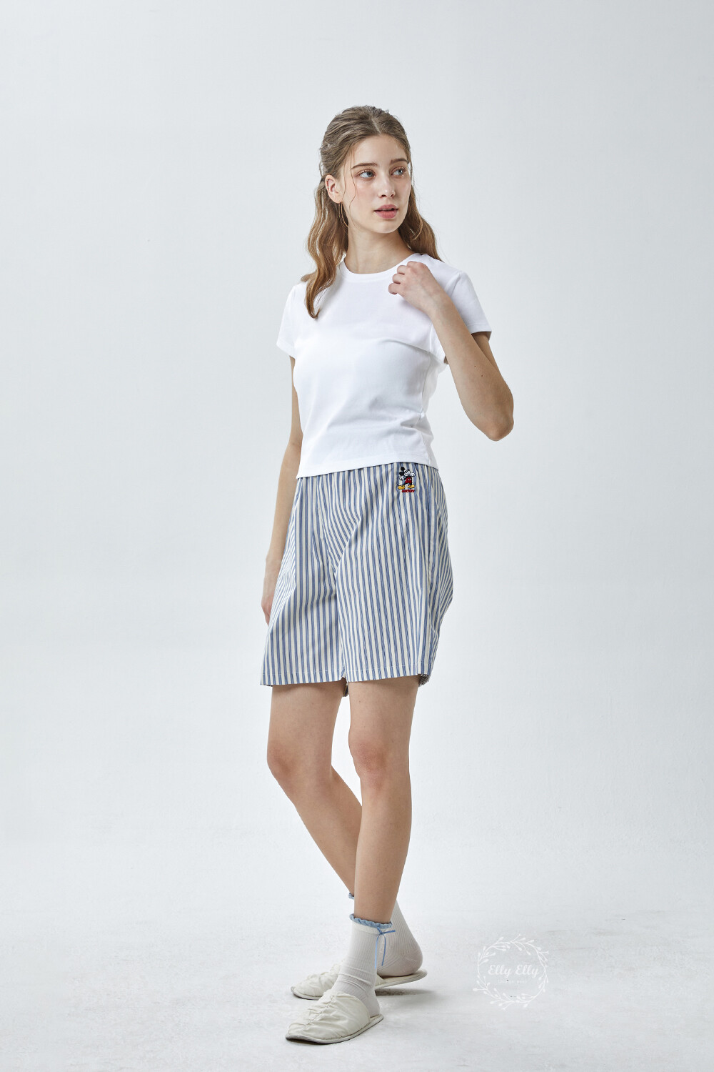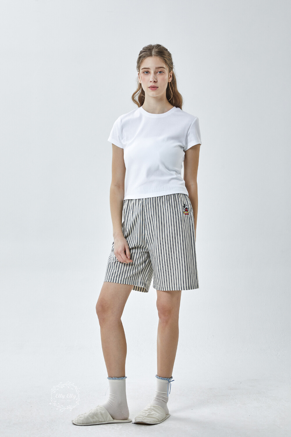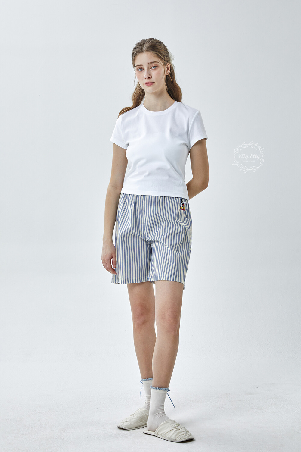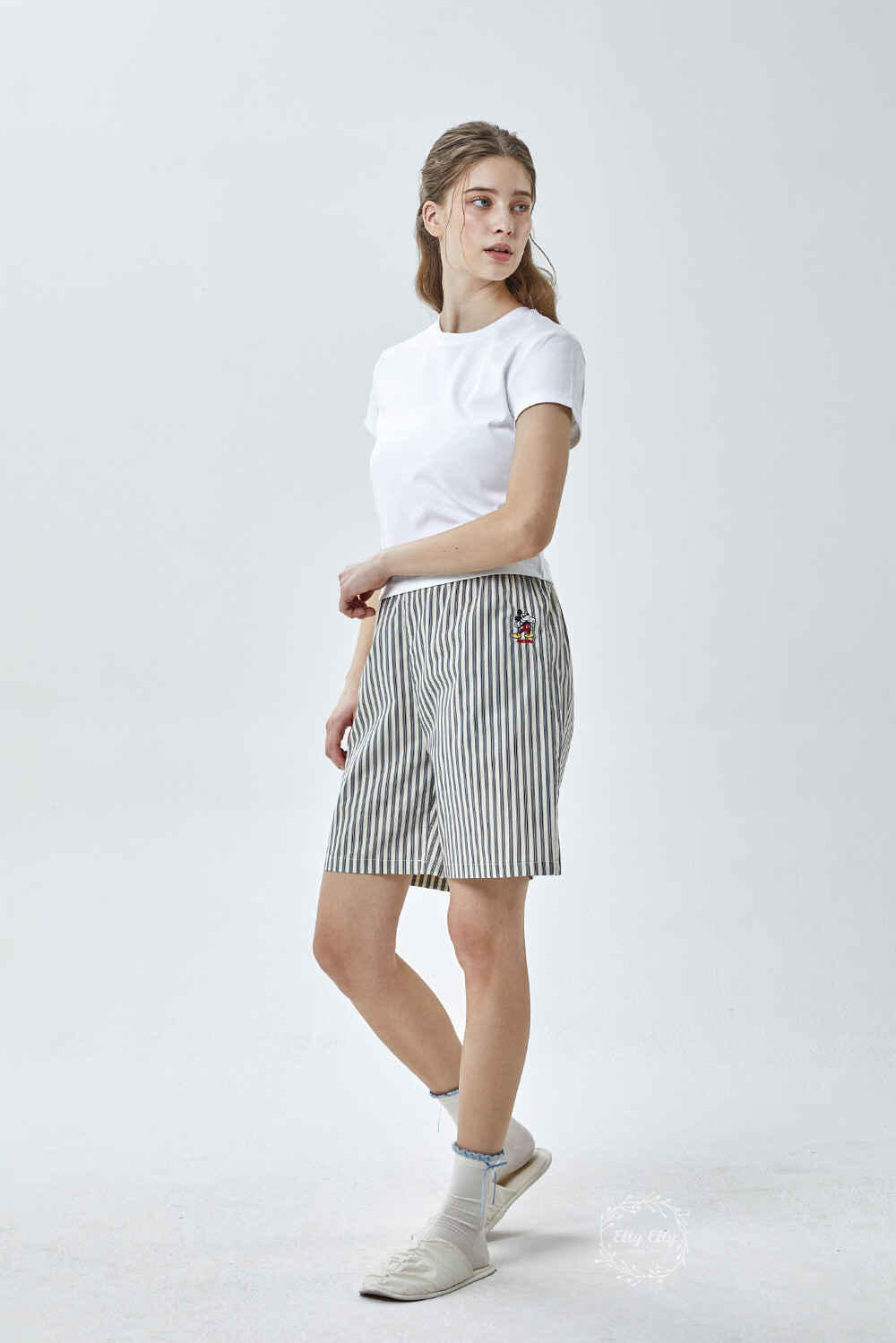 DK-5356 디즈니정품 남여공용 스트라이프 자수 5부파자마 잠옷바지 2COLOR