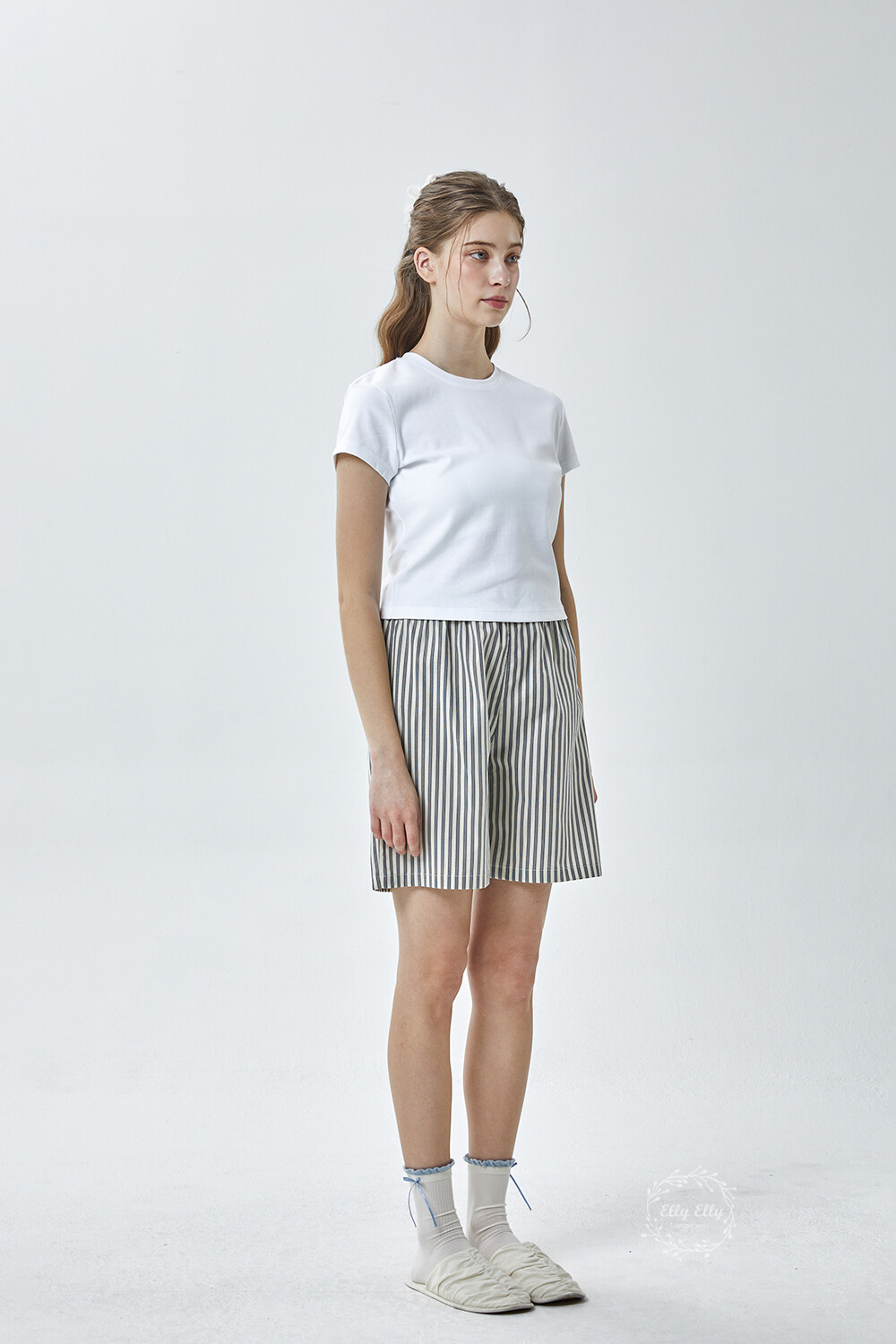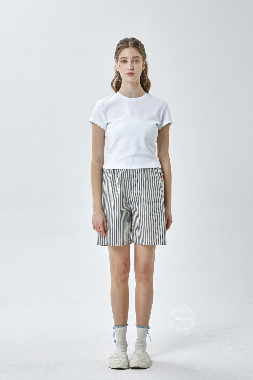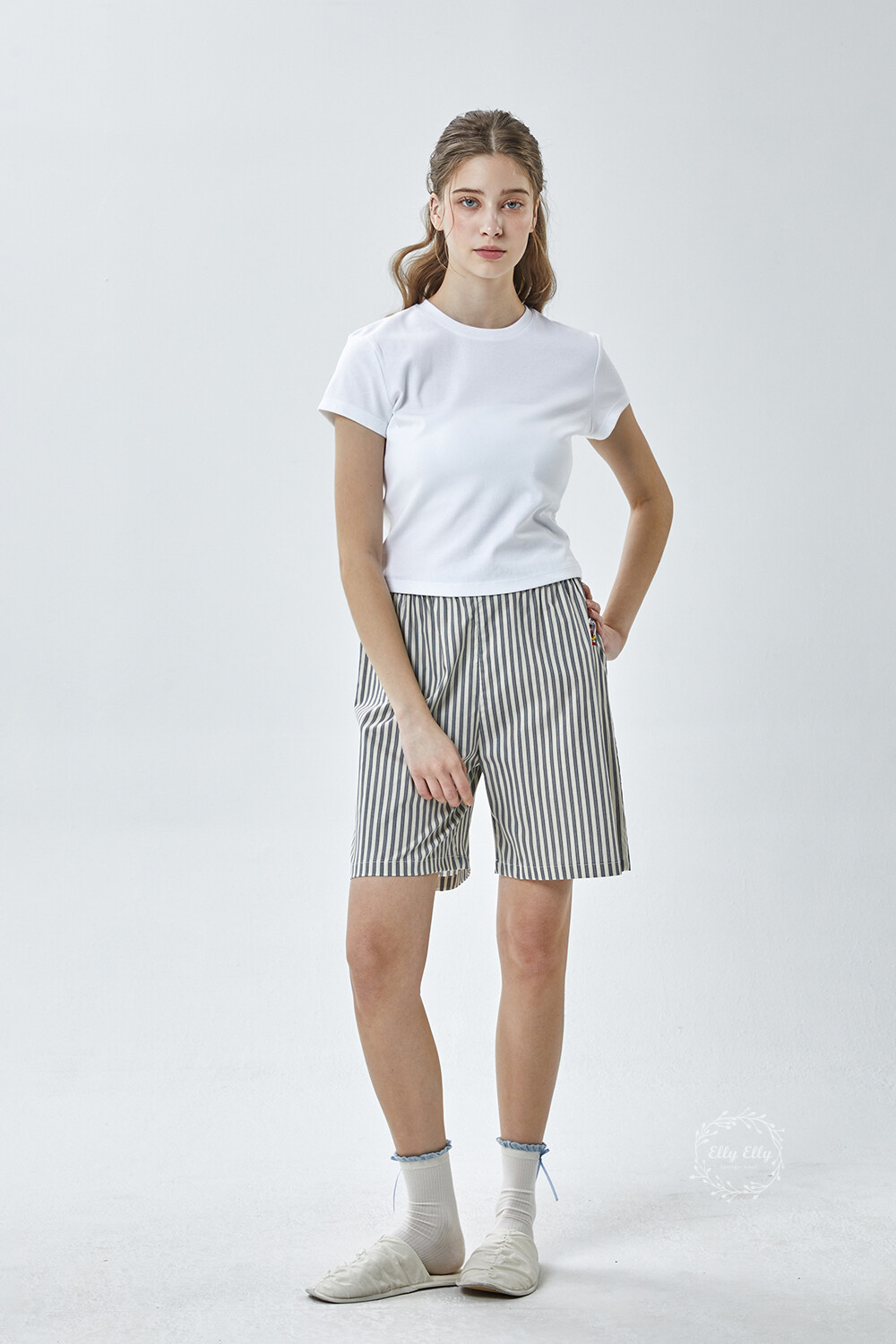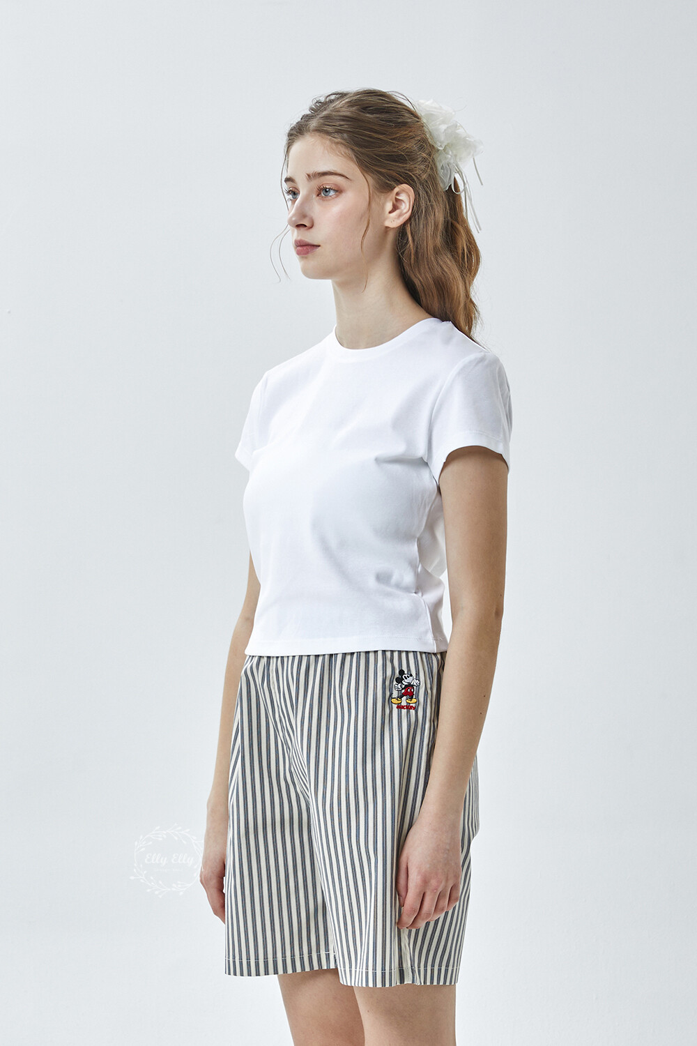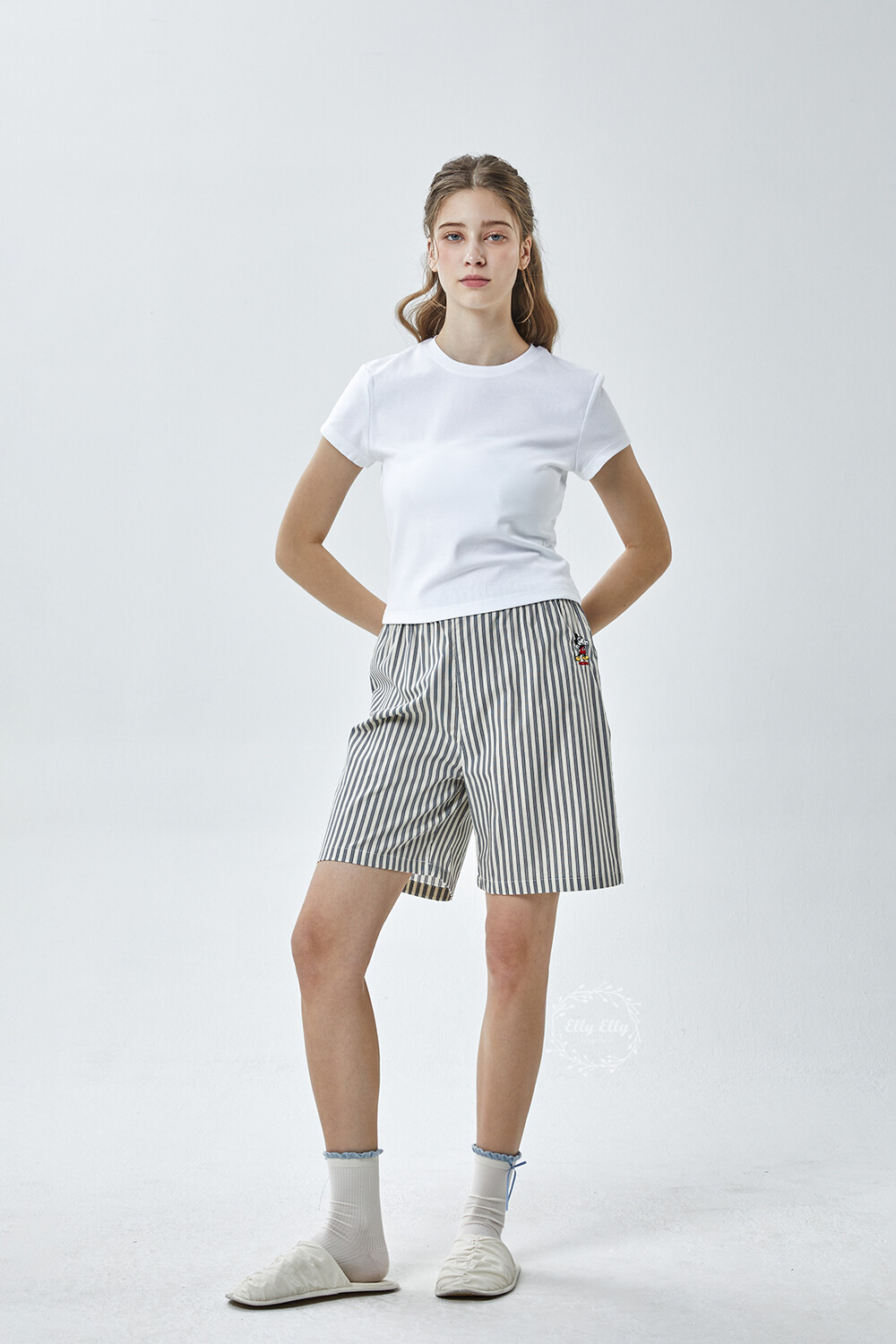 DK-5356 디즈니정품 남여공용 스트라이프 자수 5부파자마 잠옷바지 2COLOR