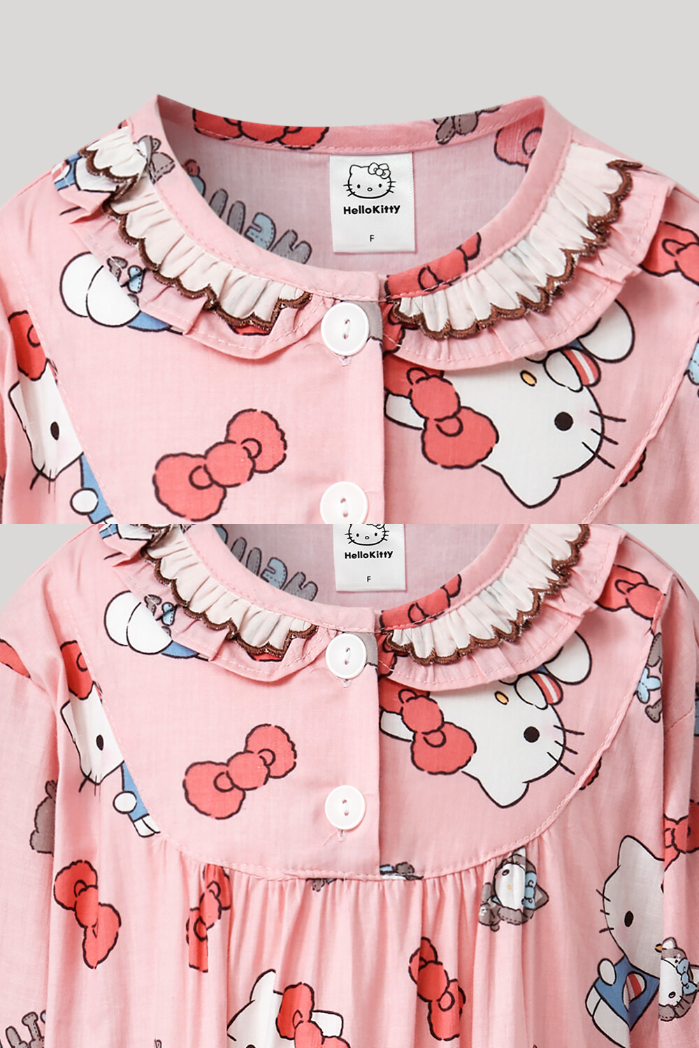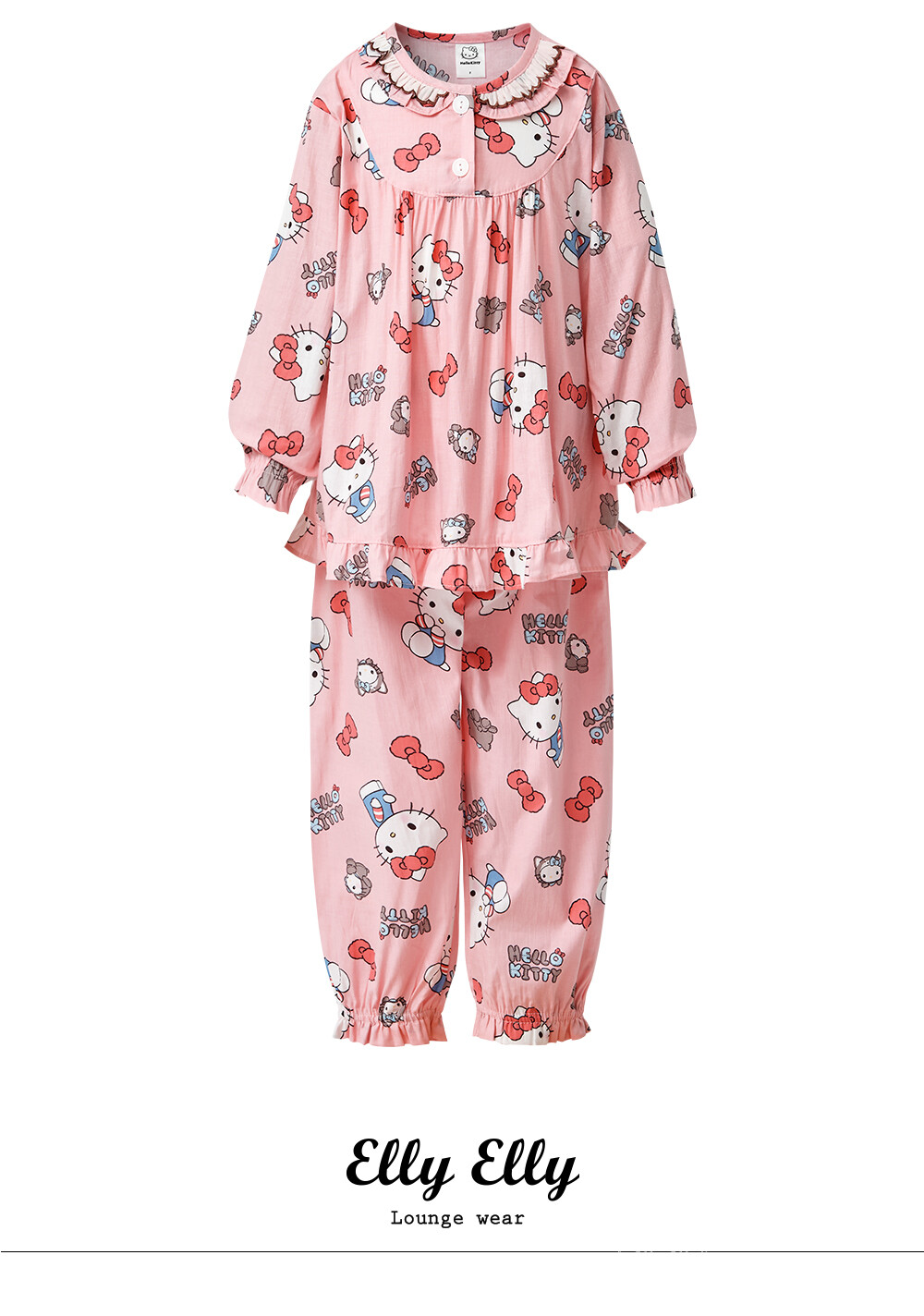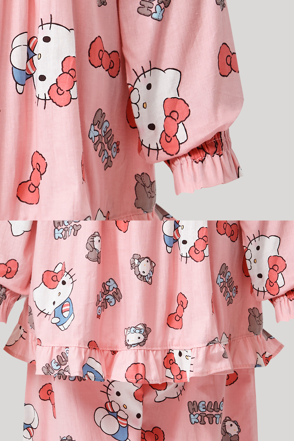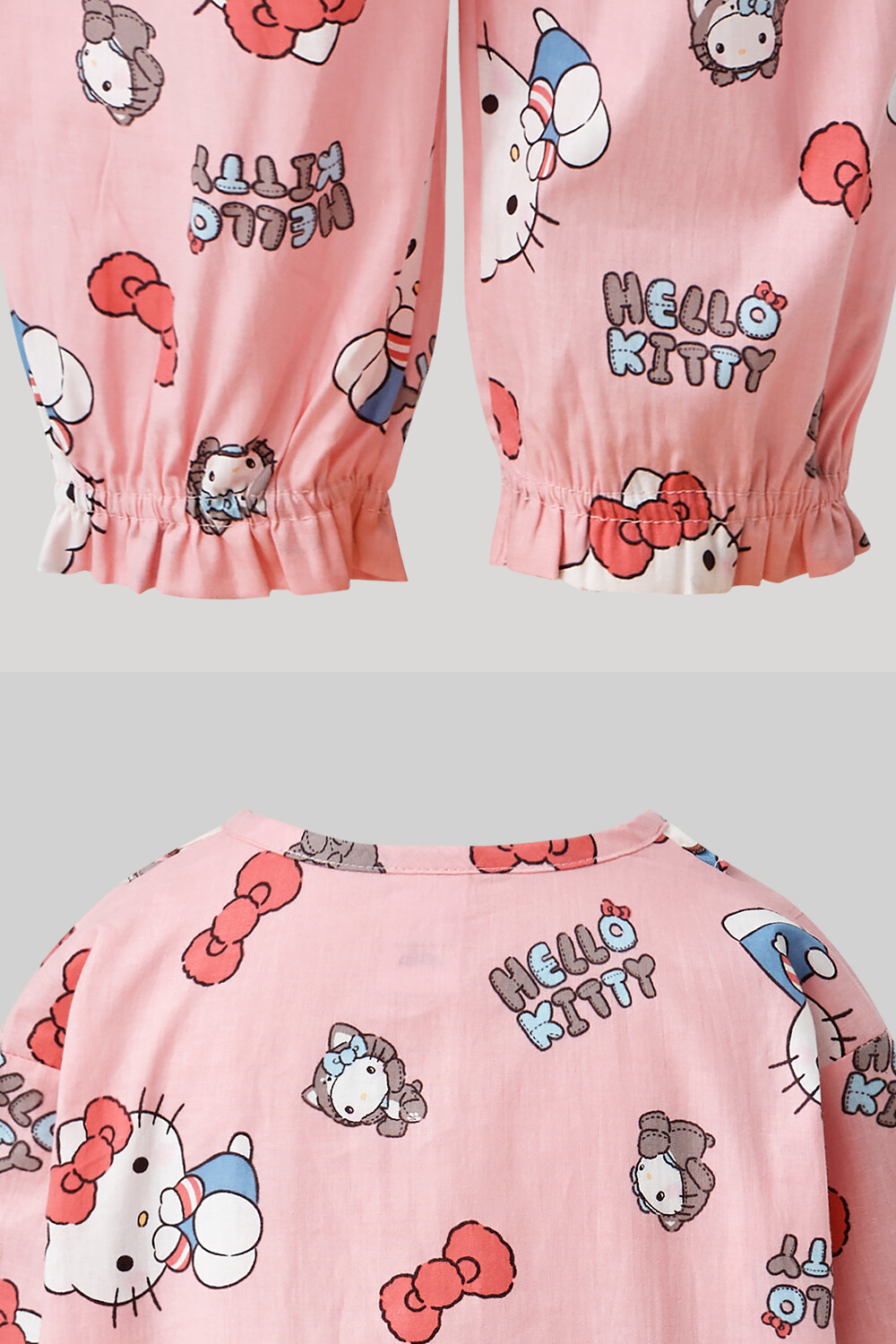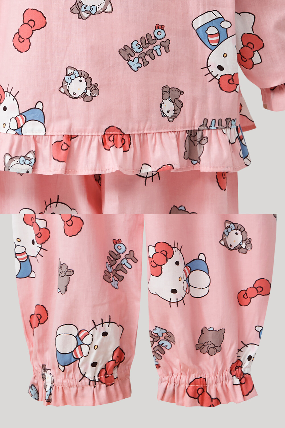 산리오 헬로키티 인형키티 여아동 긴팔상하 핑크