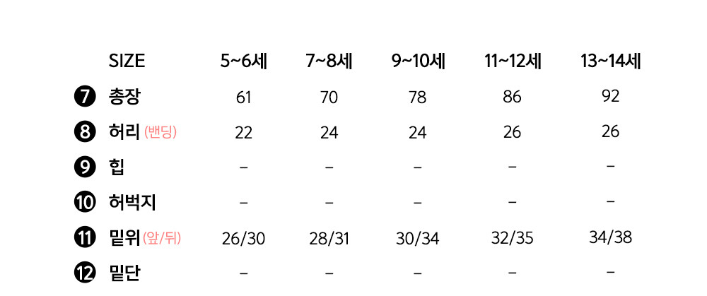여아동 - 5~6세,7~8세,9~10세,11~12세,13~14세