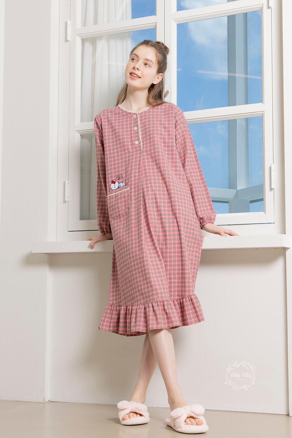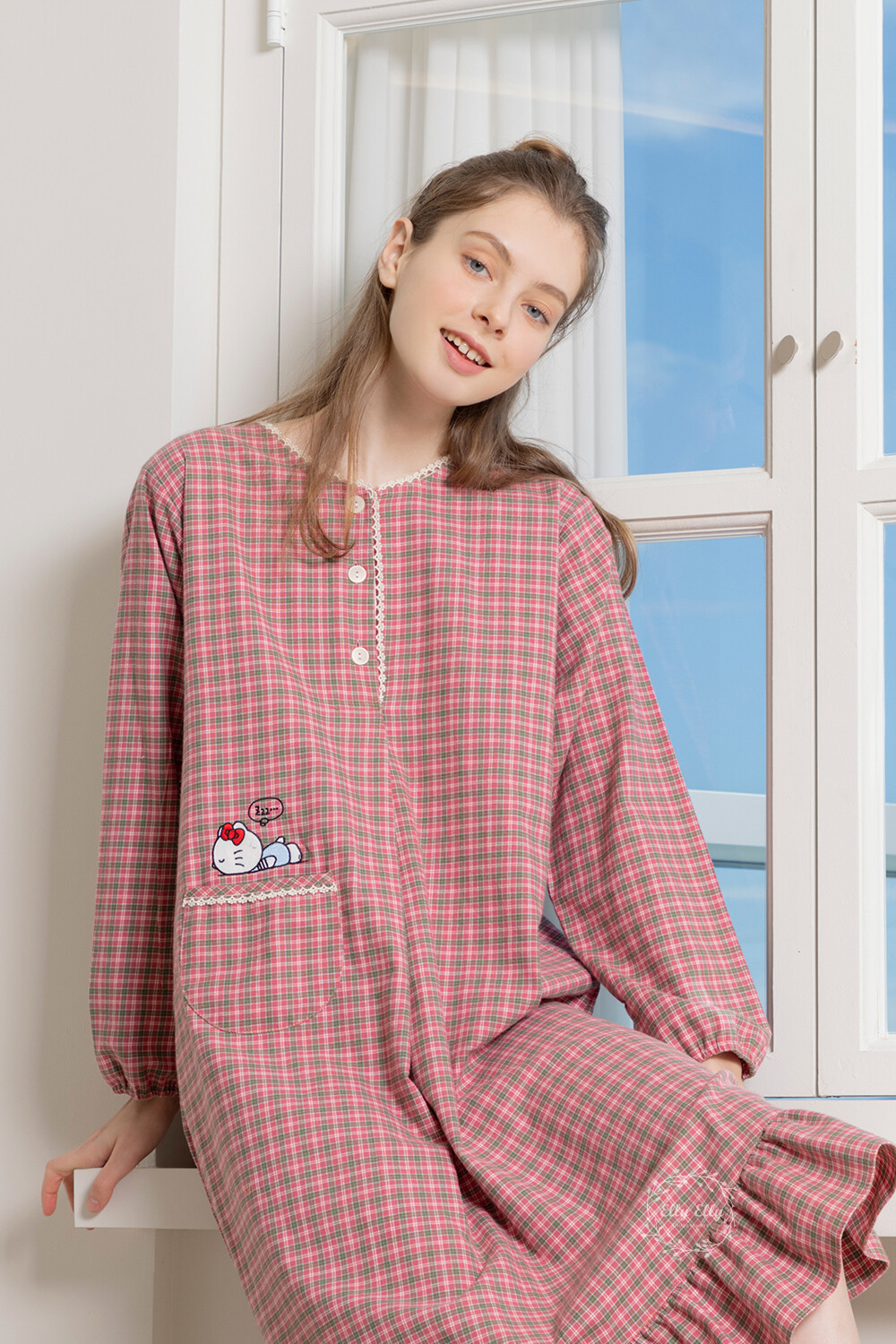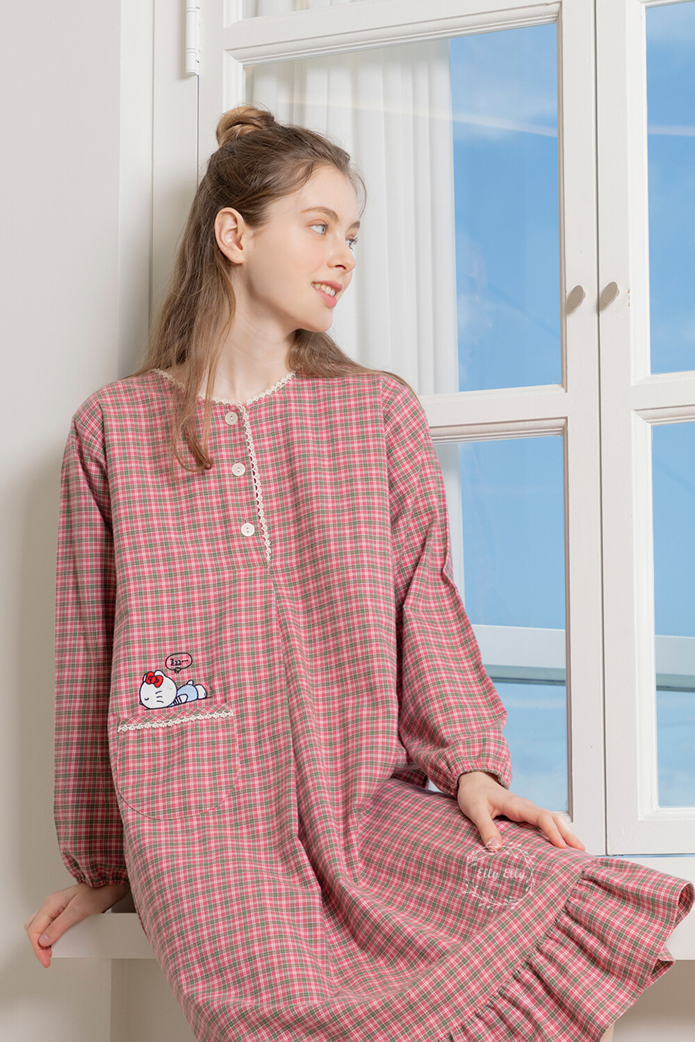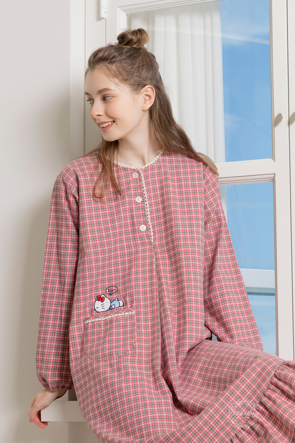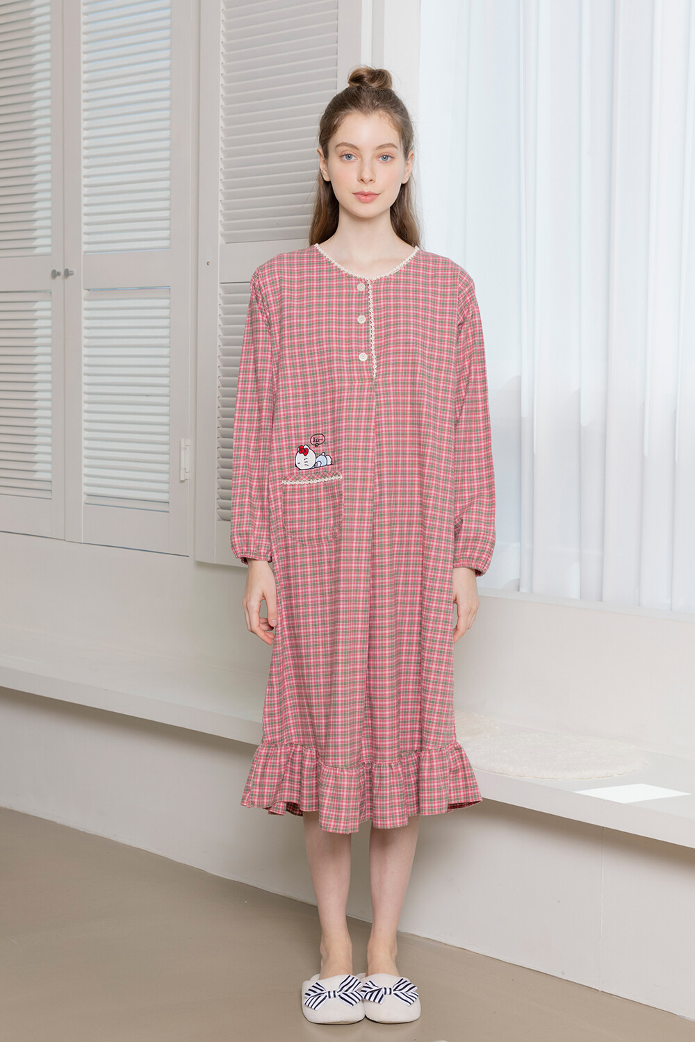 HK-4114 키티체크 기모레이스 여성 긴팔원피스 레드