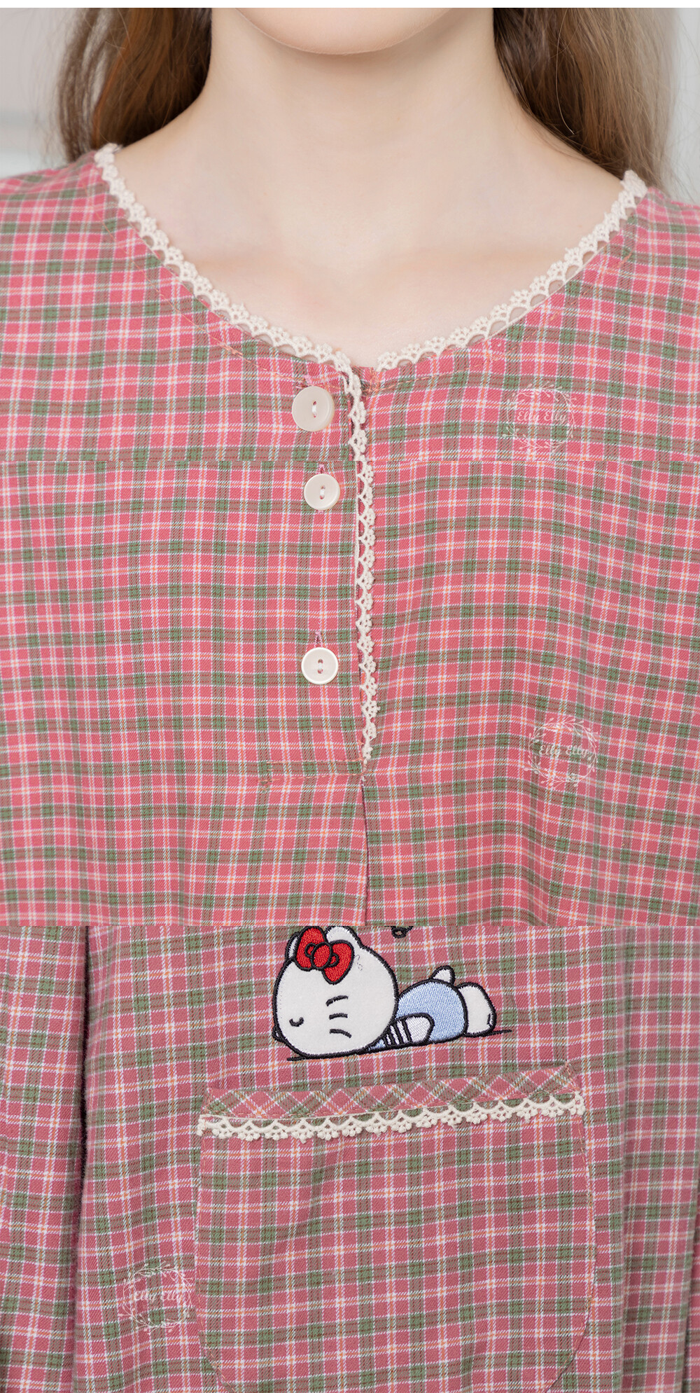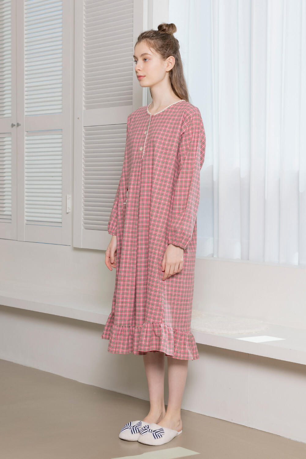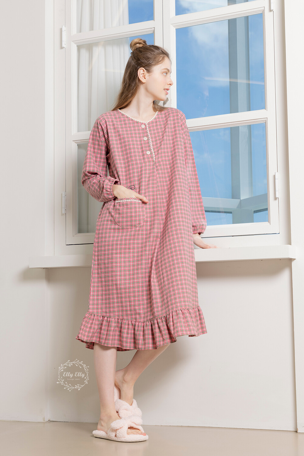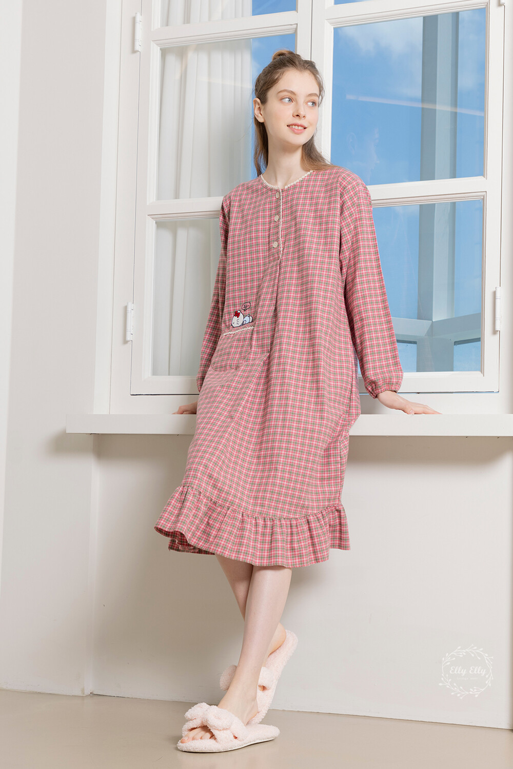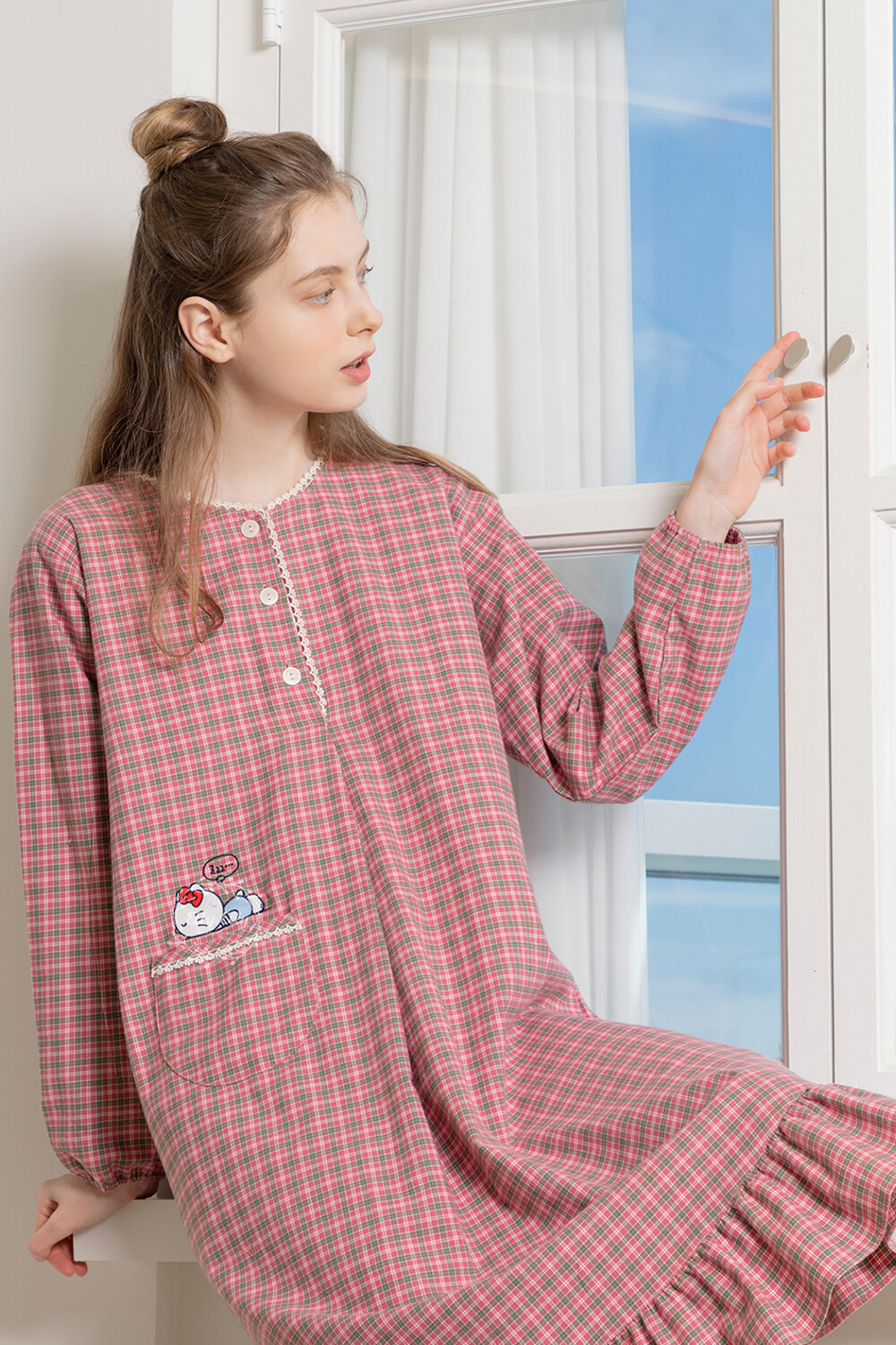 HK-4114 키티체크 기모레이스 여성 긴팔원피스 레드