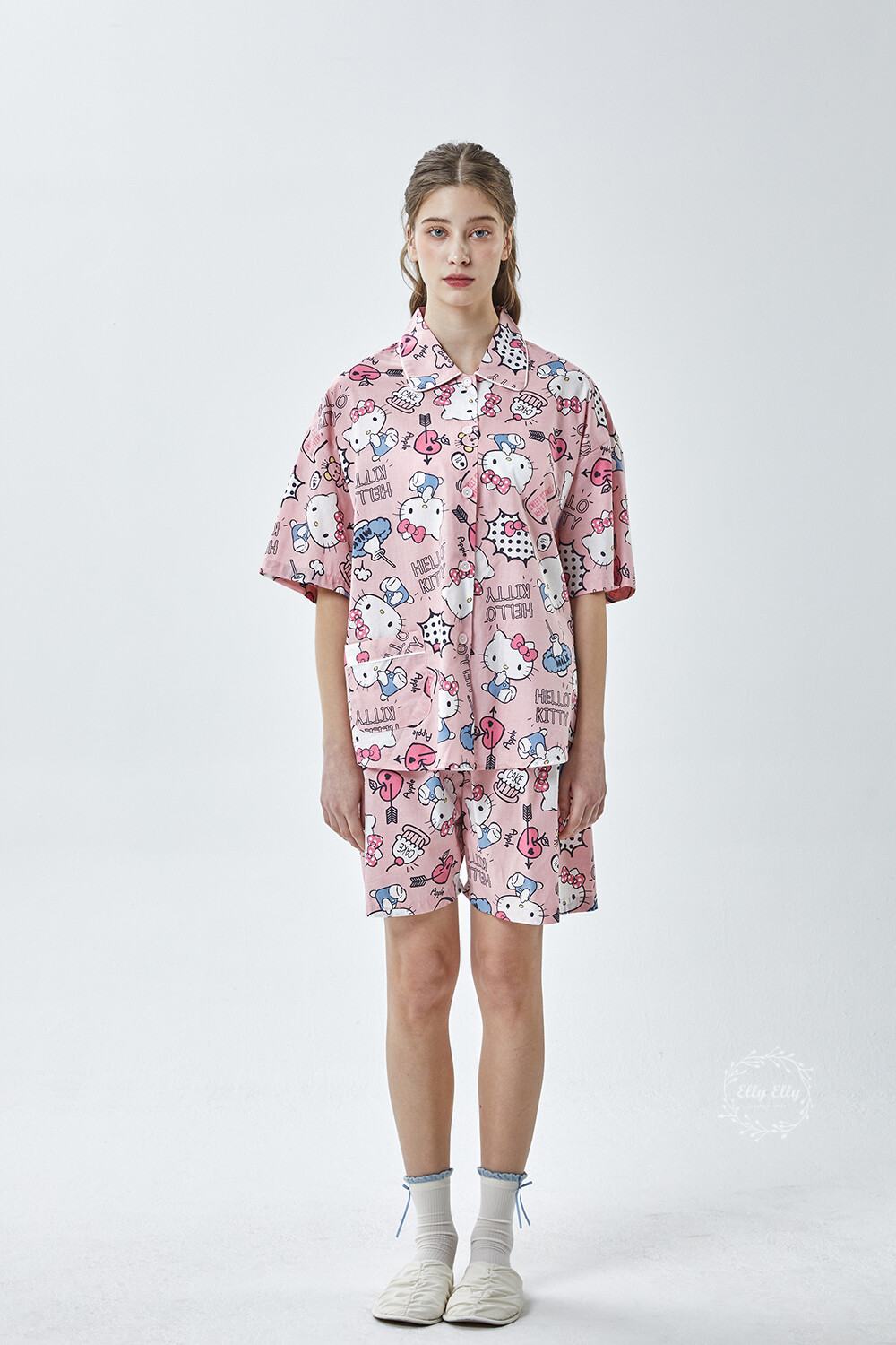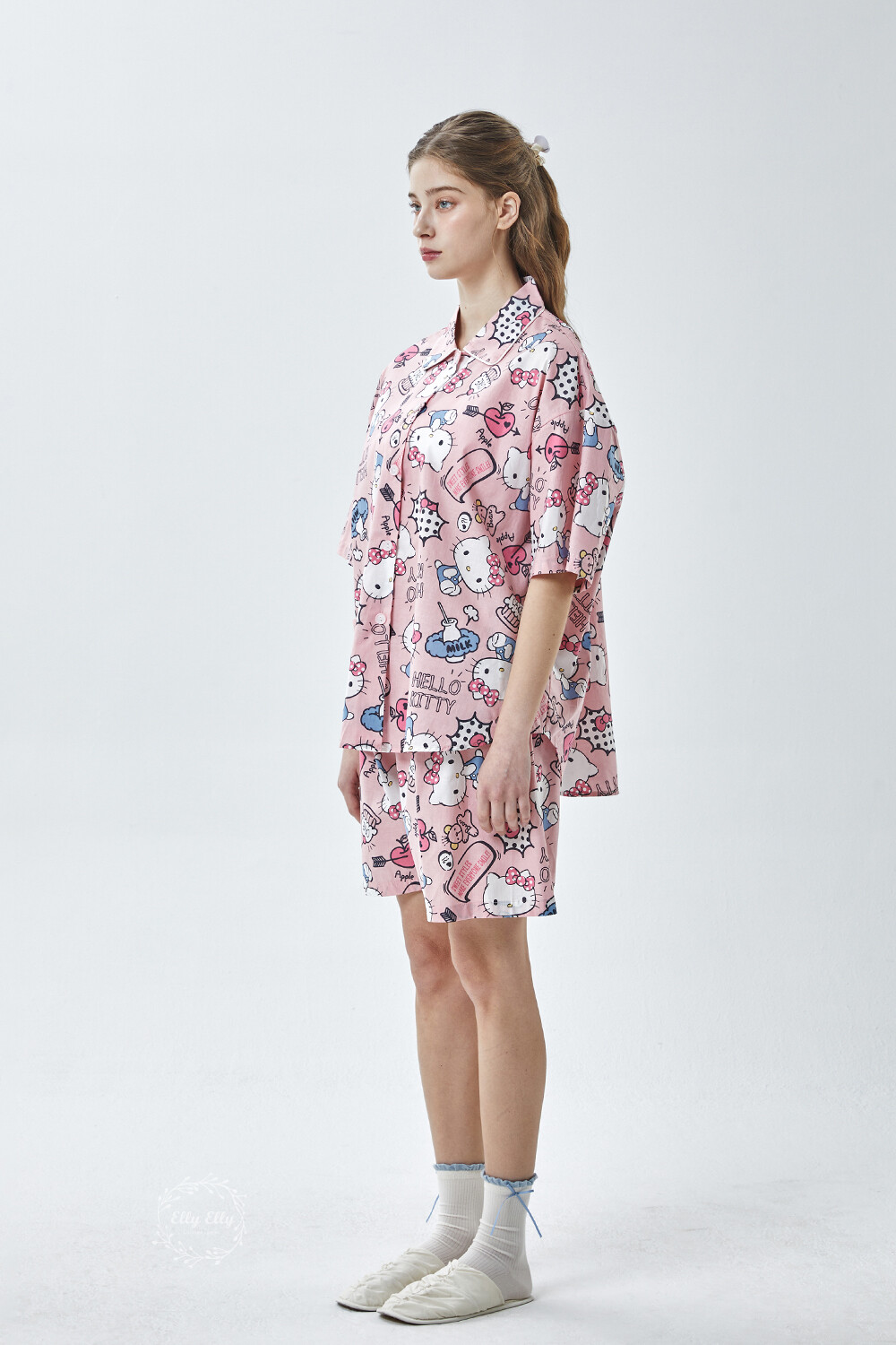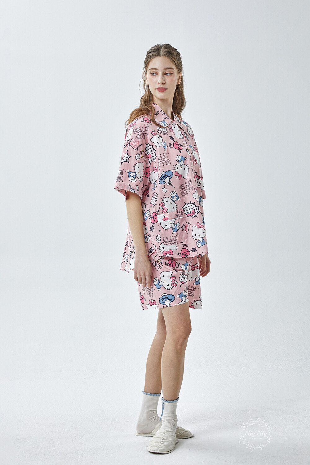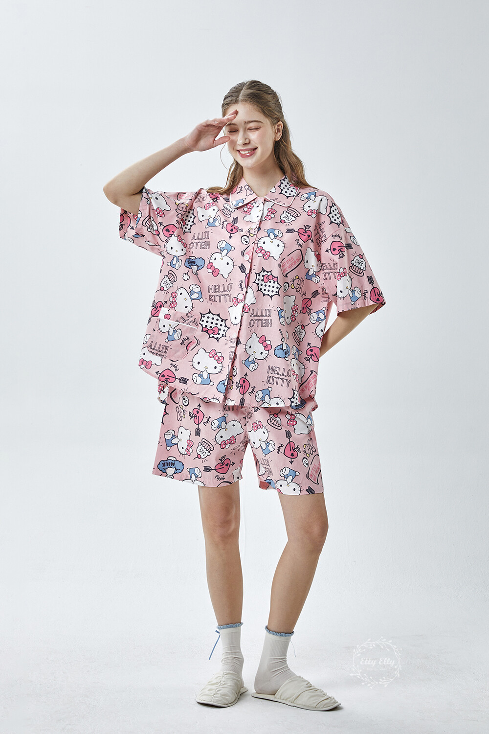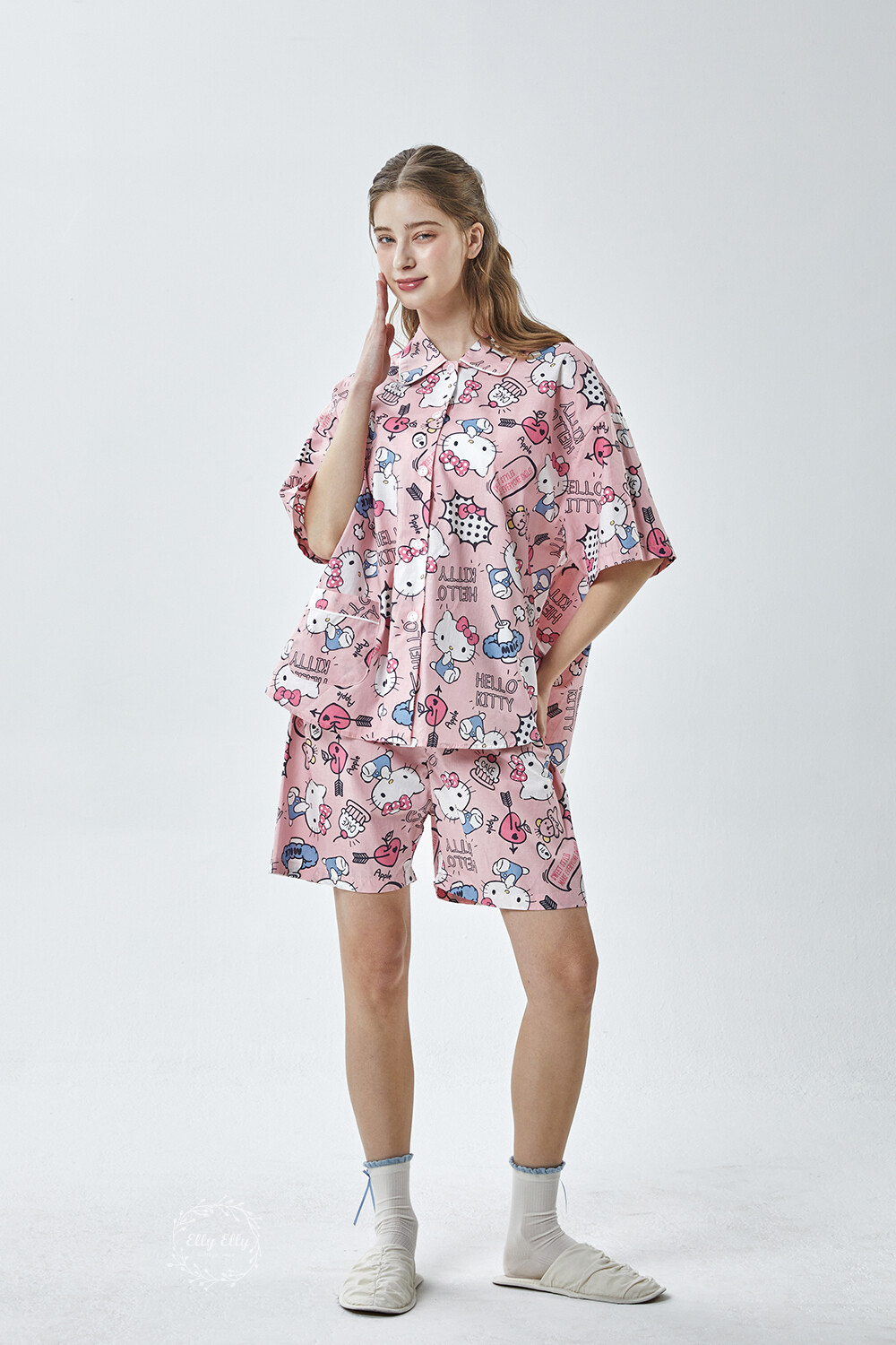 HK-4202 빅키티 와이카라 여성 반팔페어 핑크
