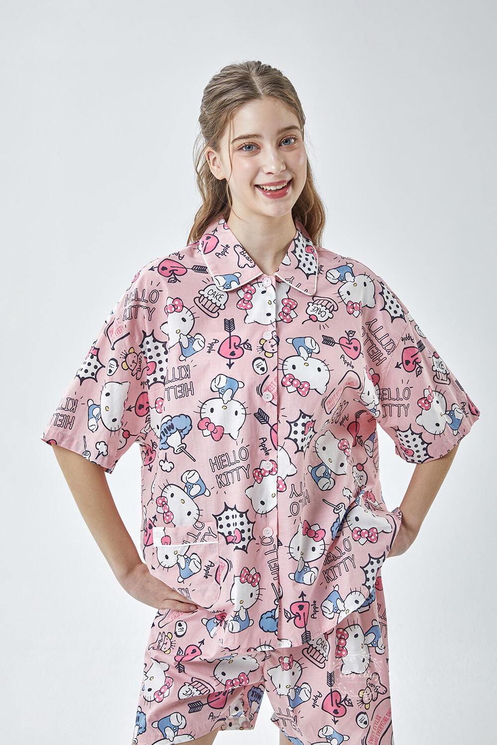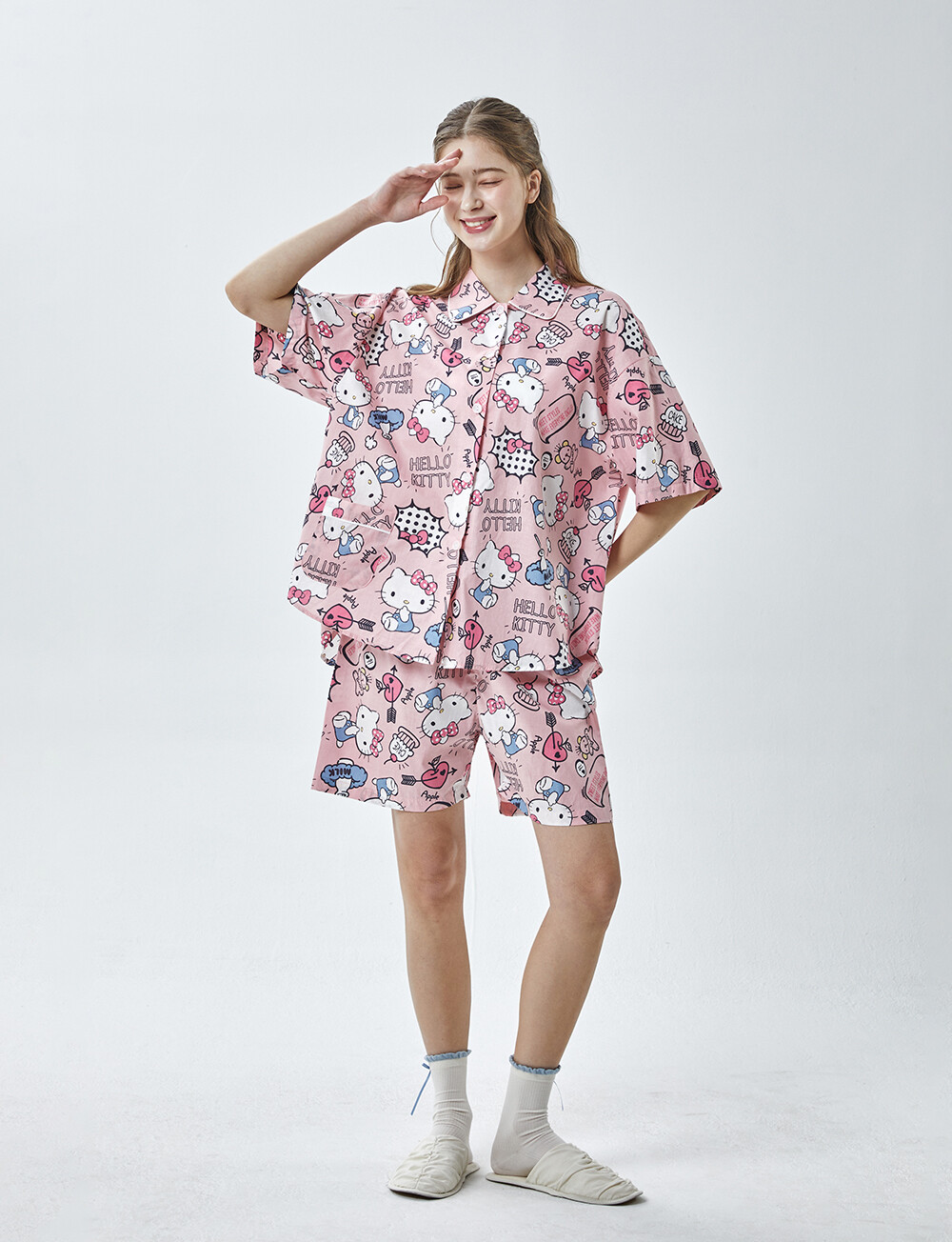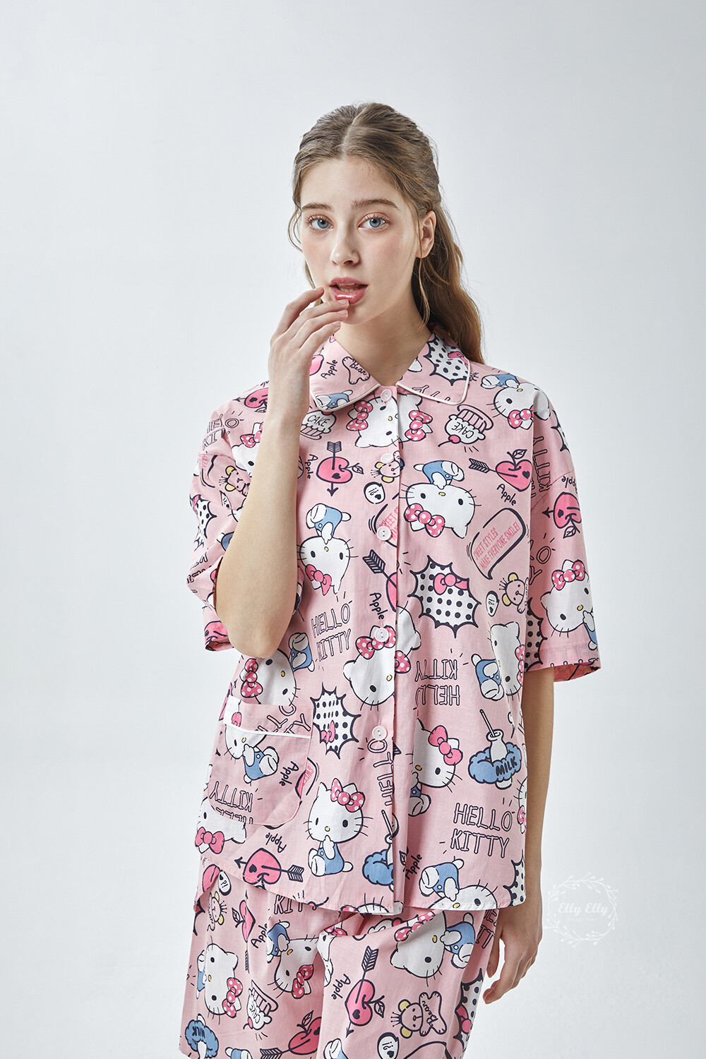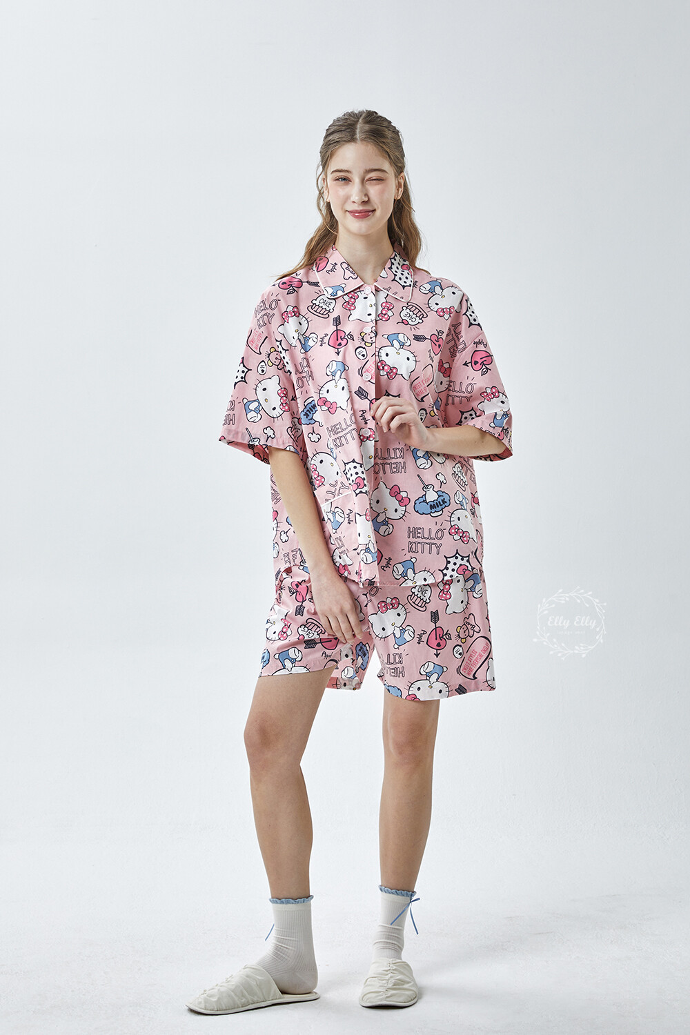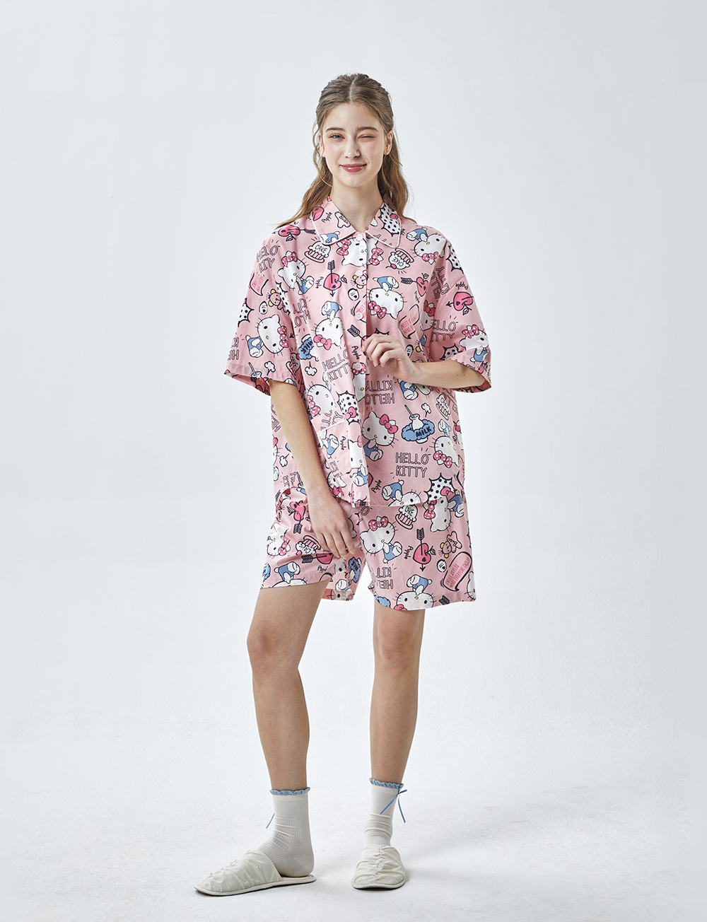 HK-4202 빅키티 와이카라 여성 반팔페어 핑크