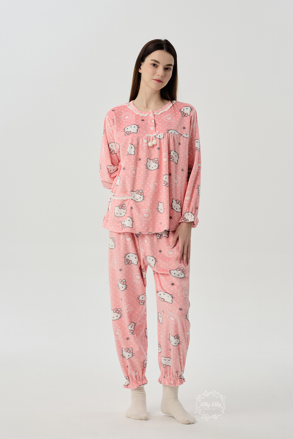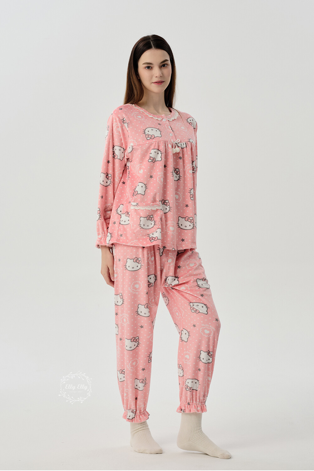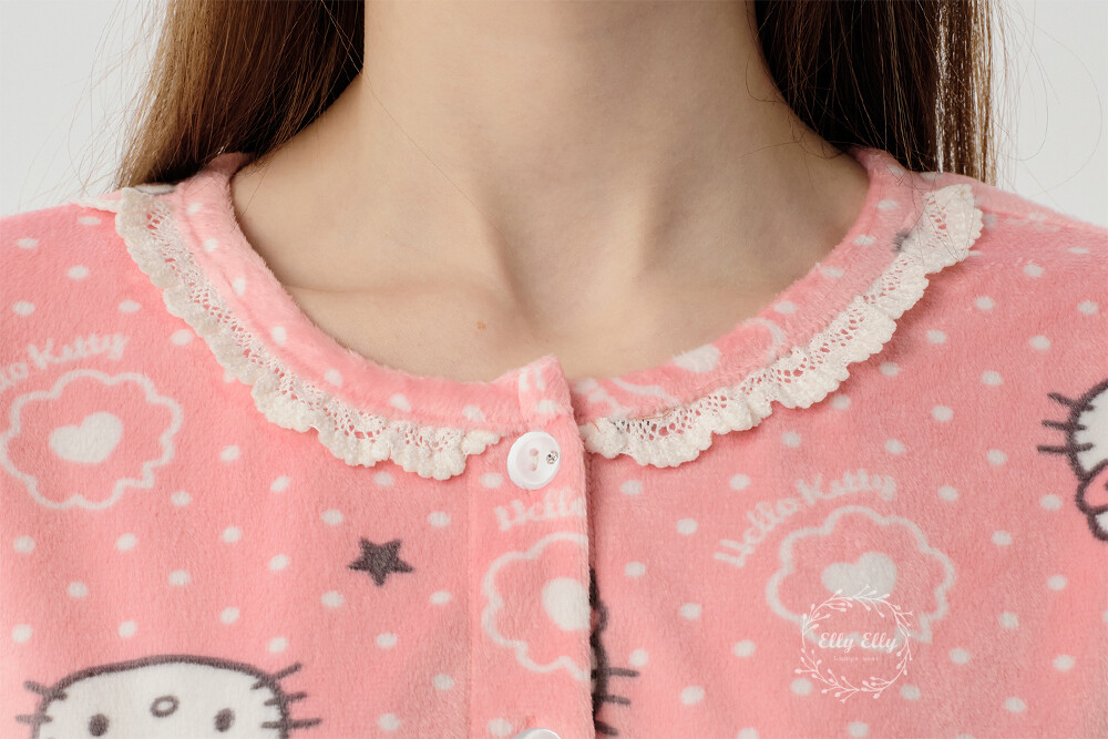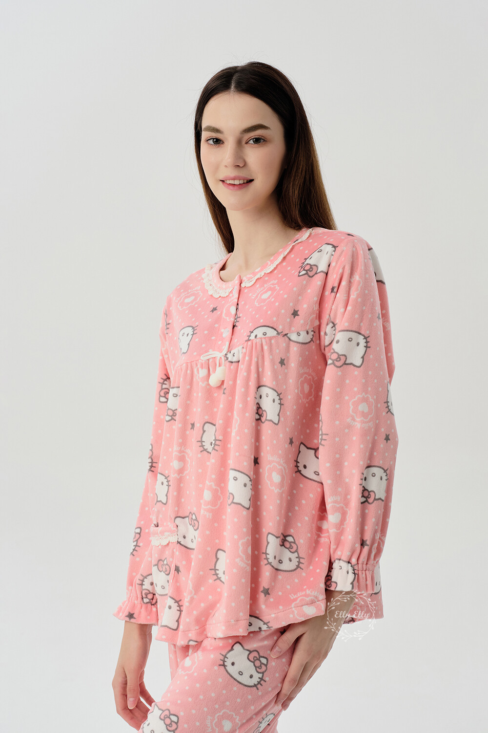 HK-4262 산리오정품 헬로키티 극세사 여성 긴팔투피스 잠옷세트