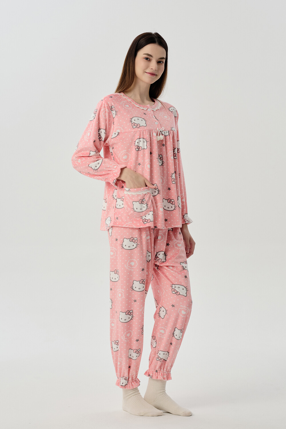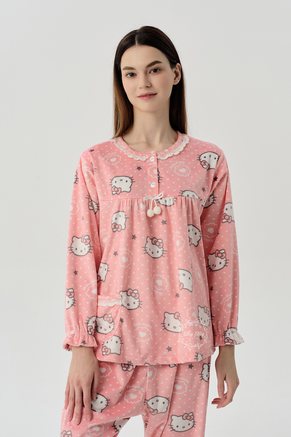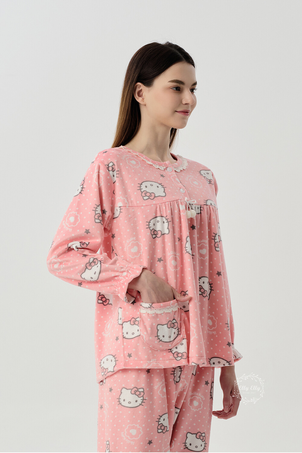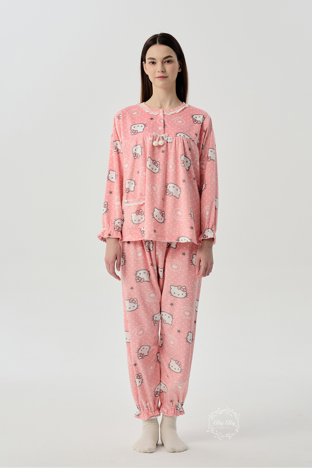 HK-4262 산리오정품 헬로키티 극세사 여성 긴팔투피스 잠옷세트