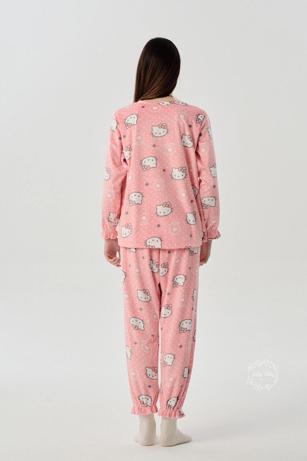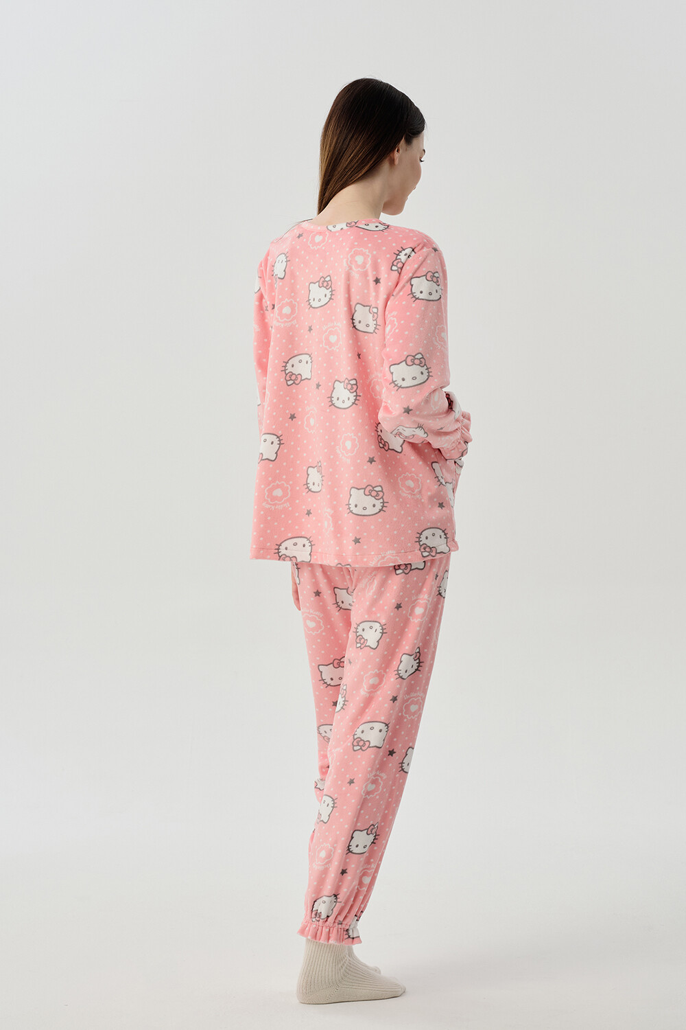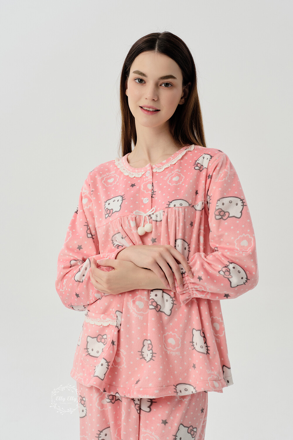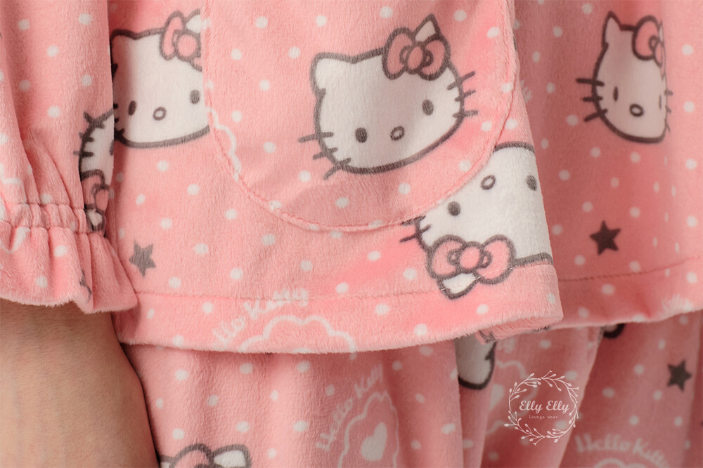 HK-4262 산리오정품 헬로키티 극세사 여성 긴팔투피스 잠옷세트