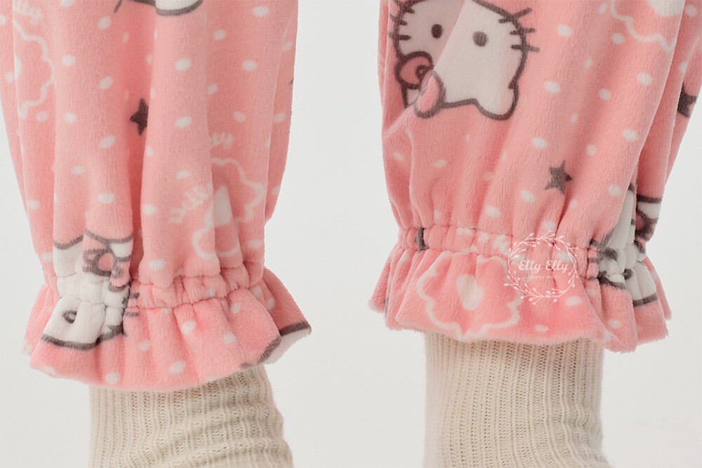 극세사, 헬로키티 패턴, 가슴 방울 장식,