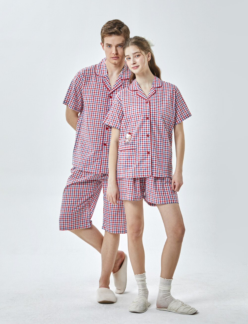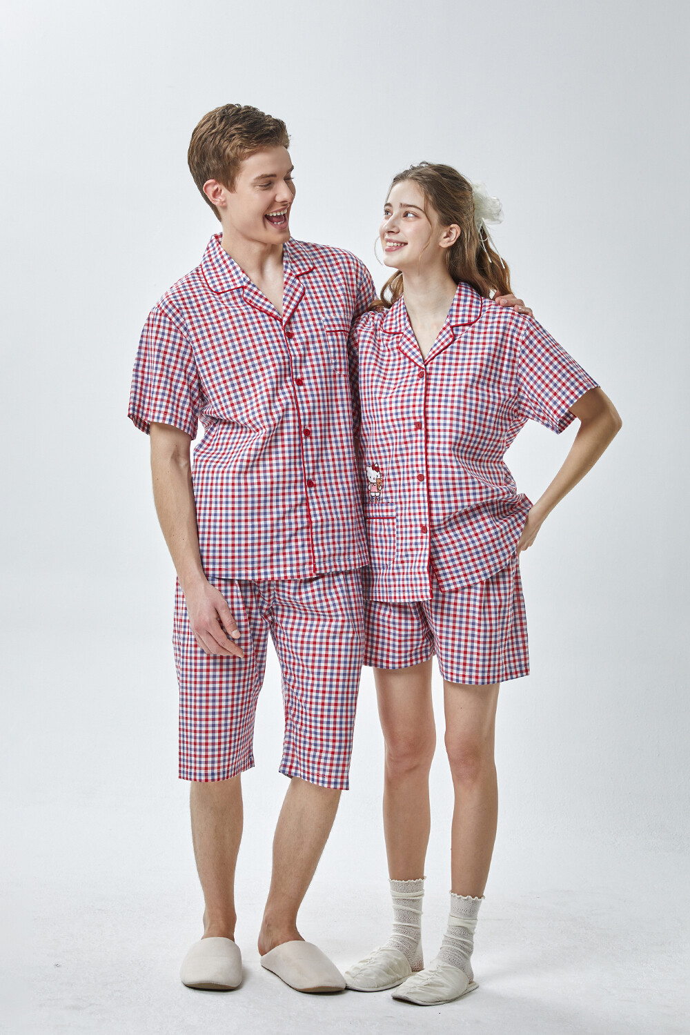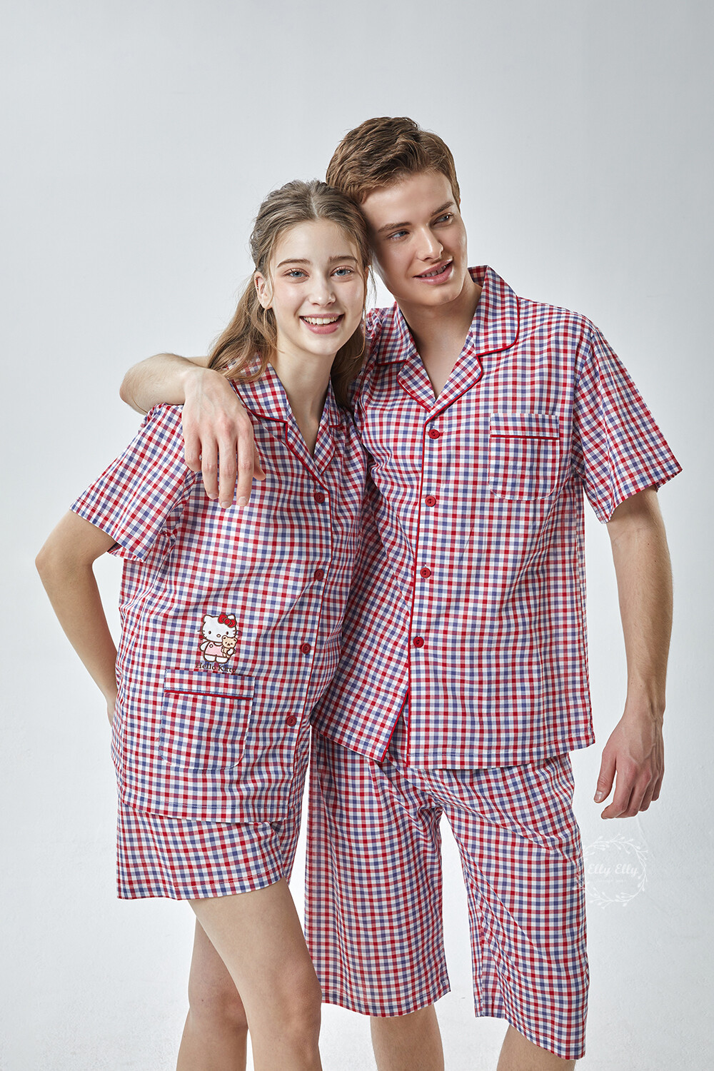 HK-4289(여)/LL-704(남) 산리오정품 파이핑 와이카라 커플잠옷세트 반팔상하