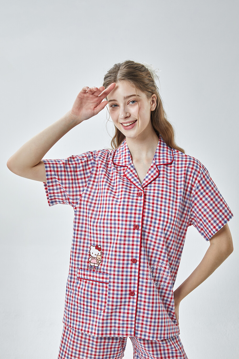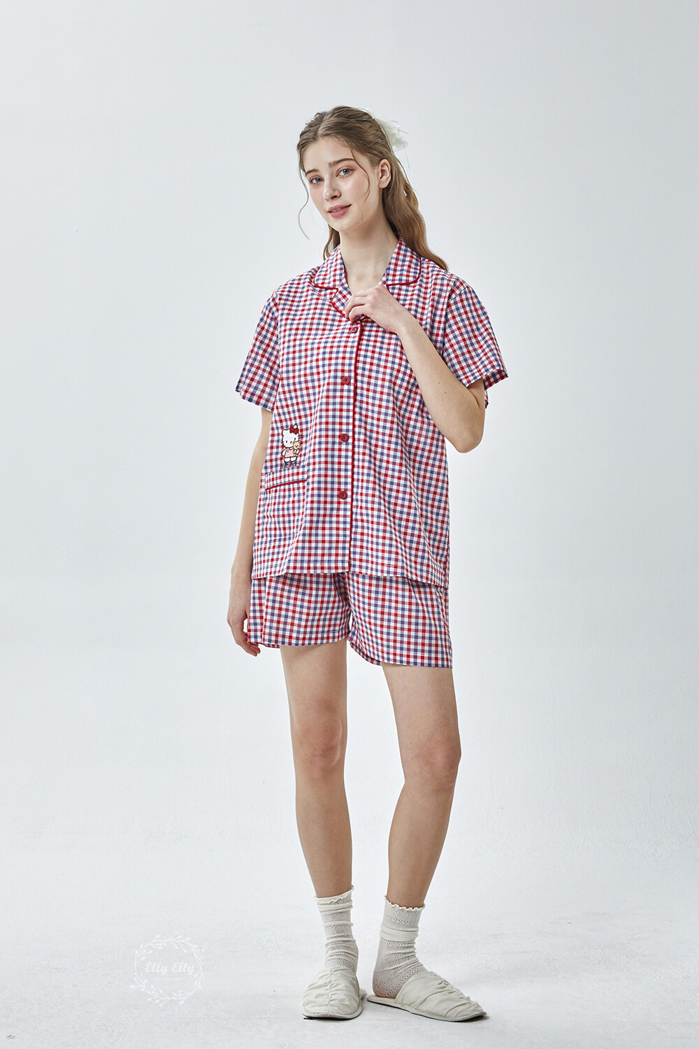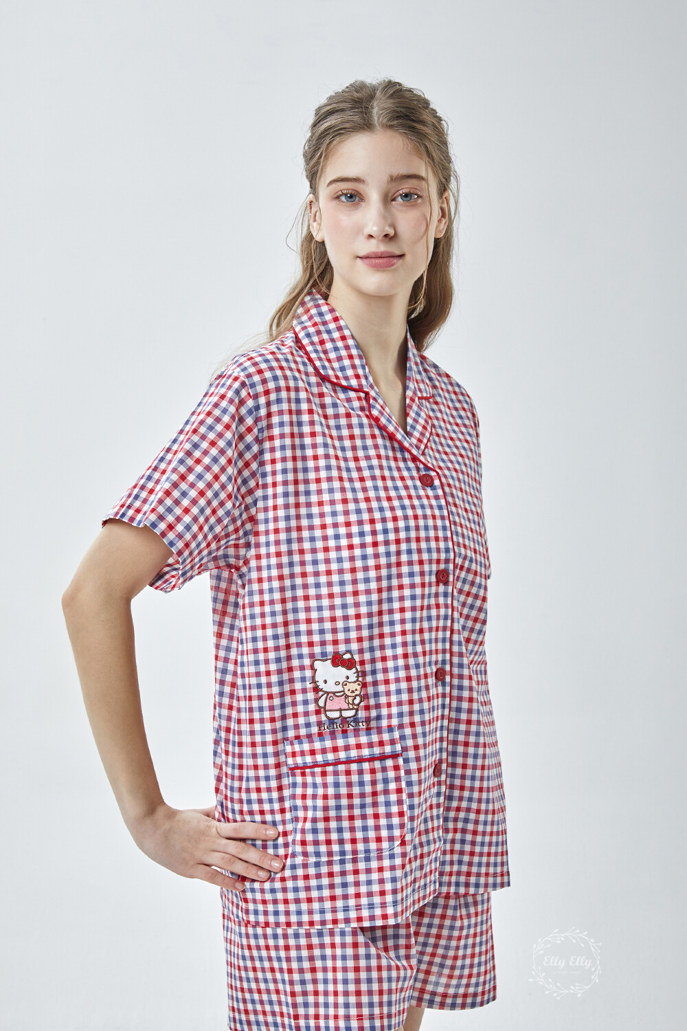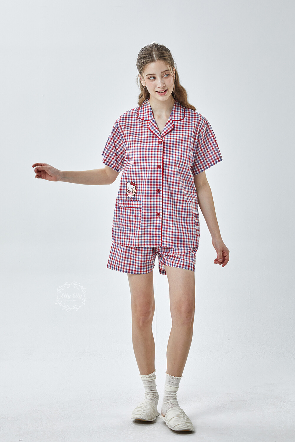 HK-4289(여)/LL-704(남) 산리오정품 파이핑 와이카라 커플잠옷세트 반팔상하