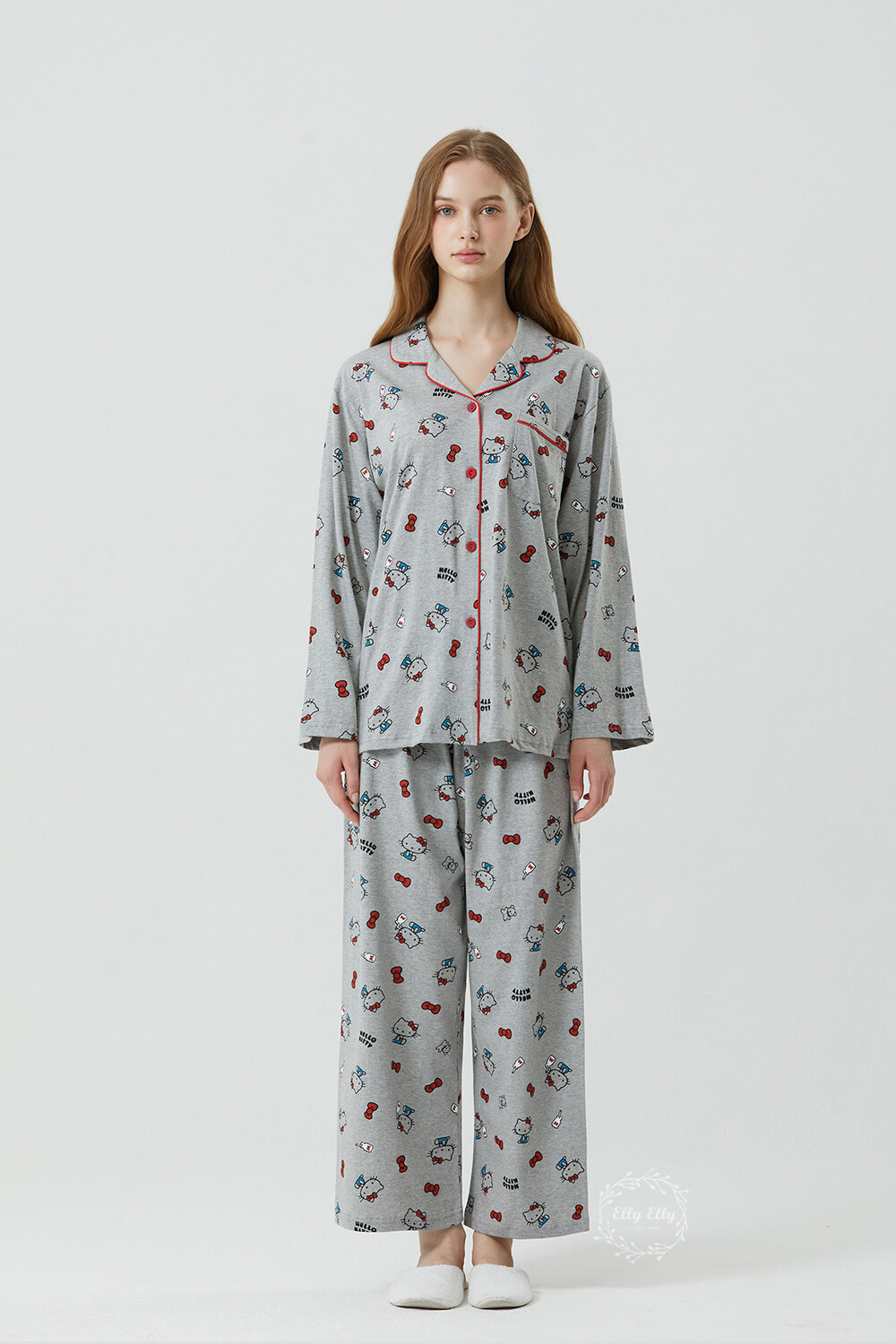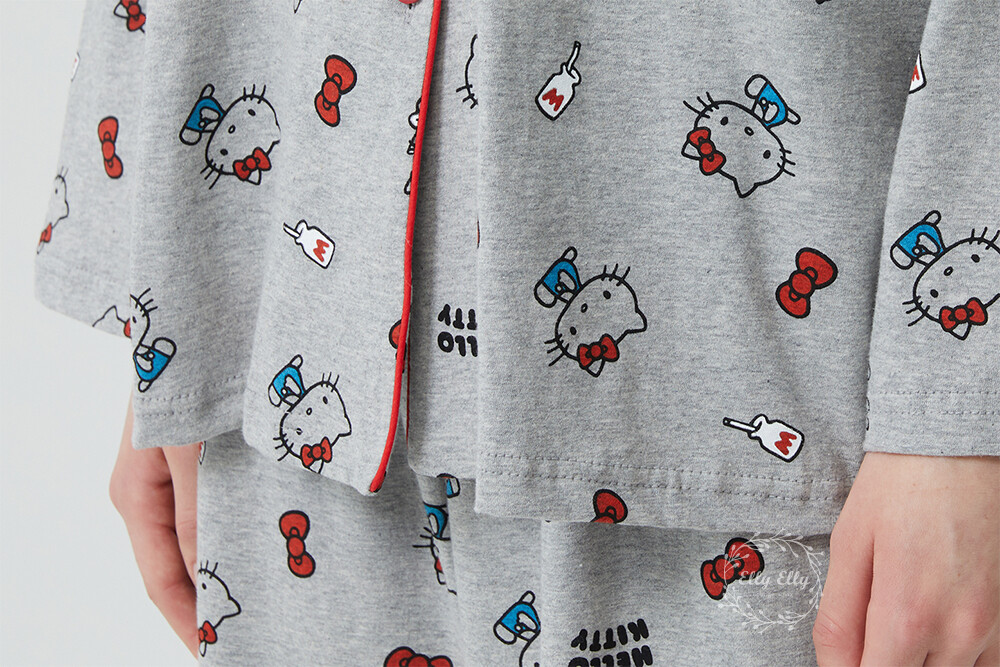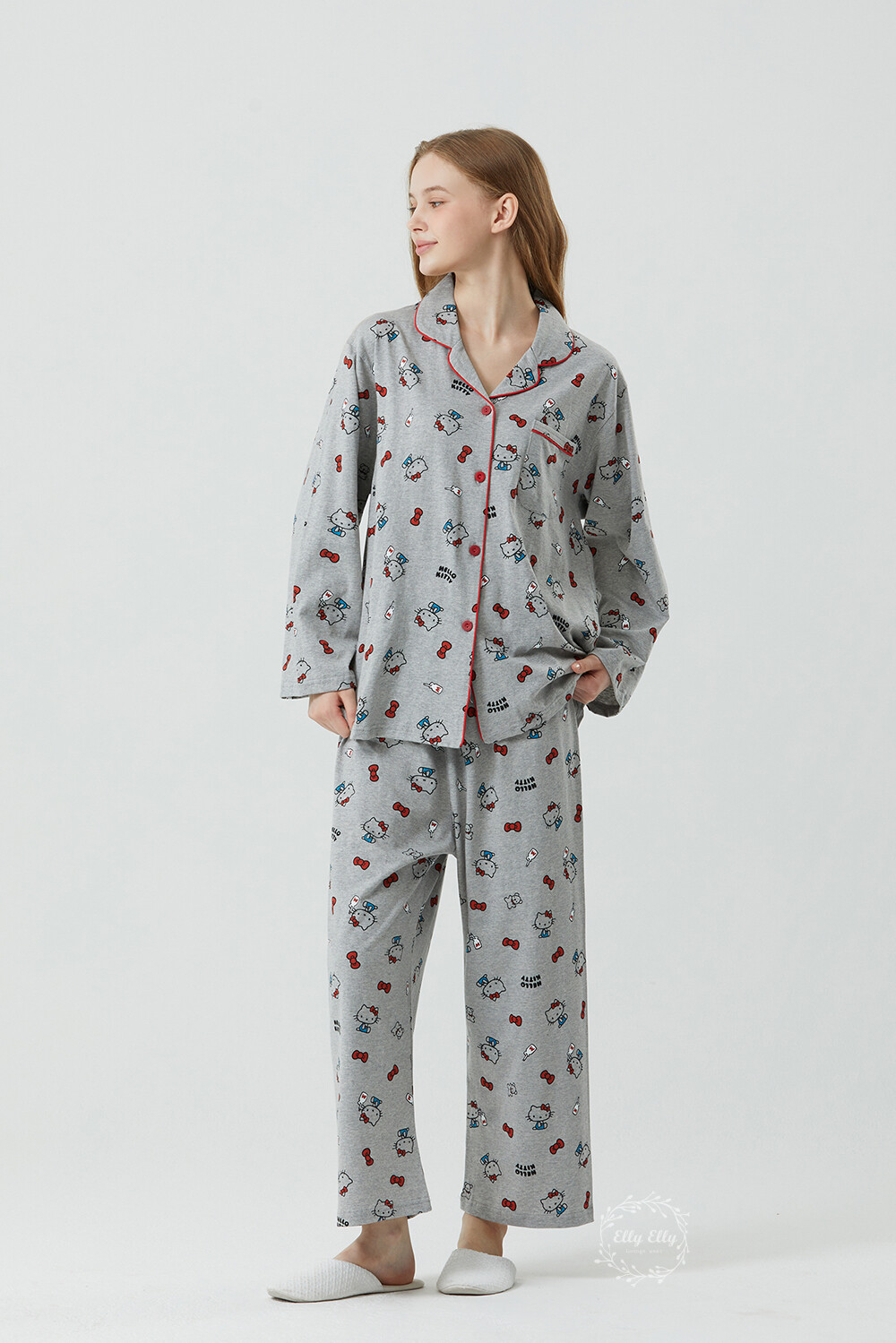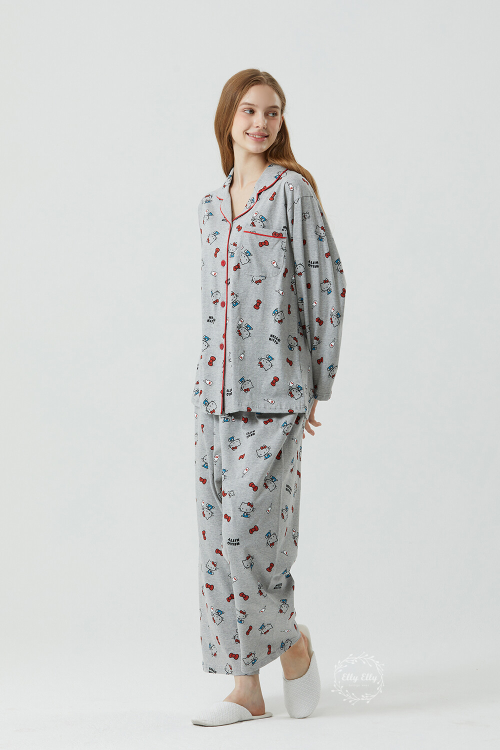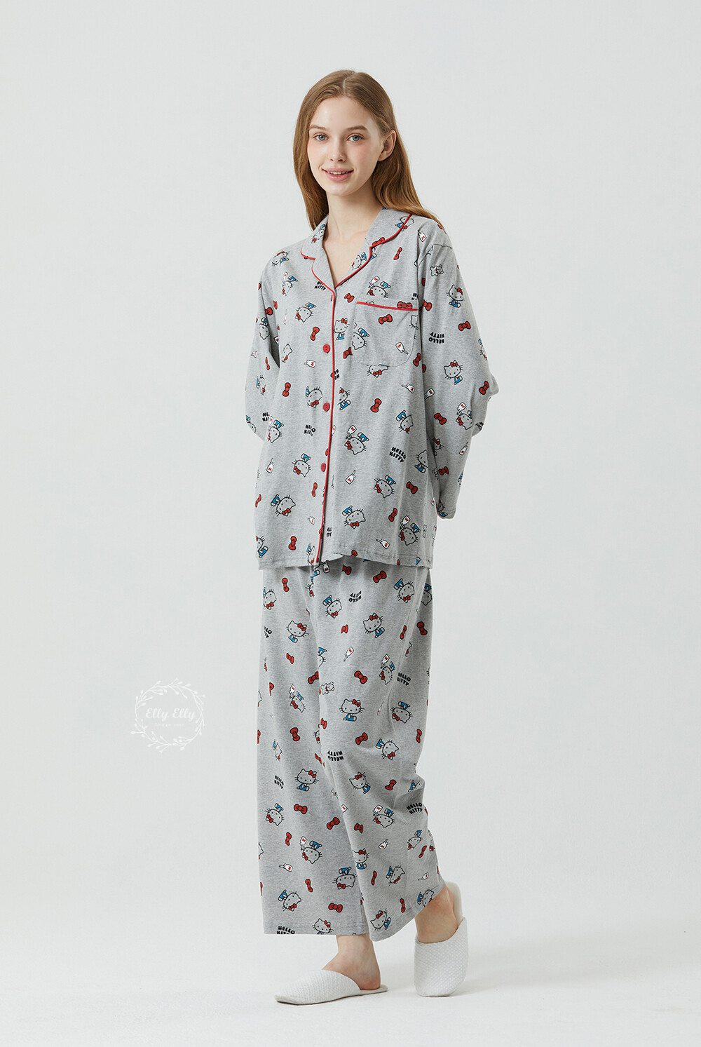 HK-4300 산리오정품 헬로키티 와이카라 다이마루 긴팔페어 잠옷세트