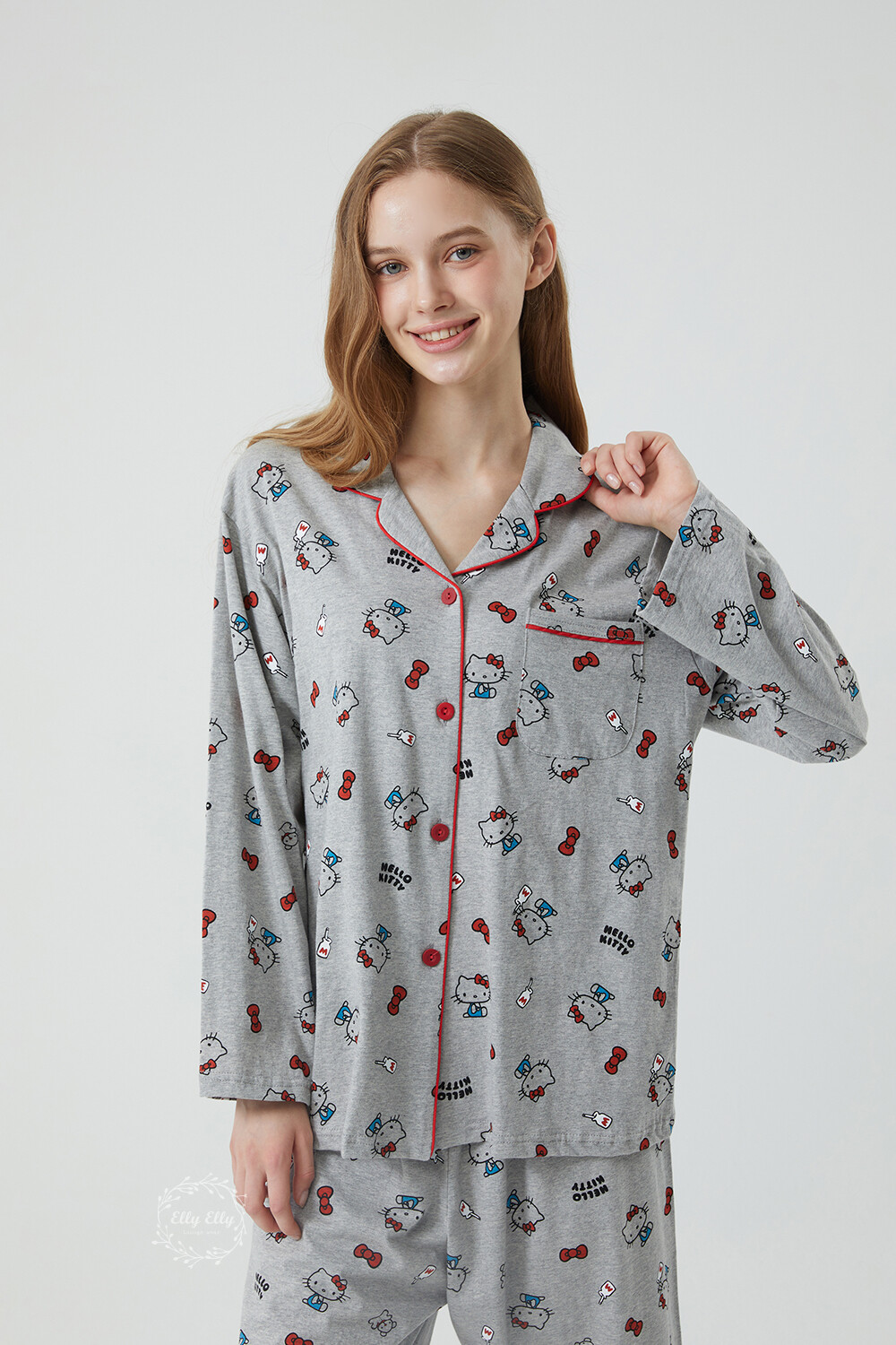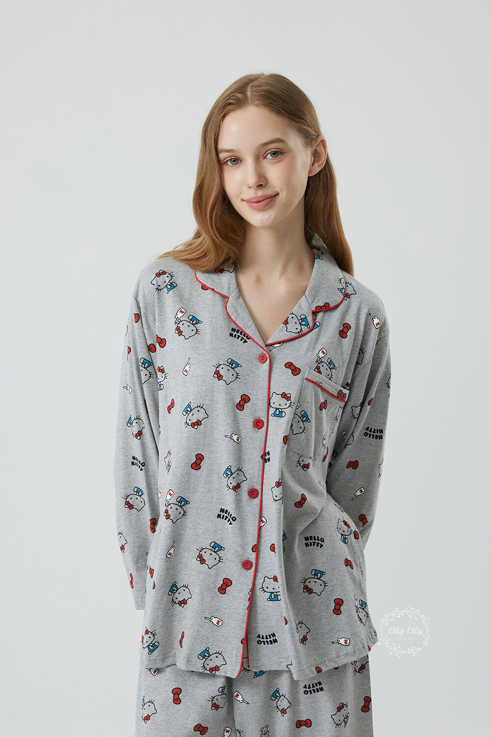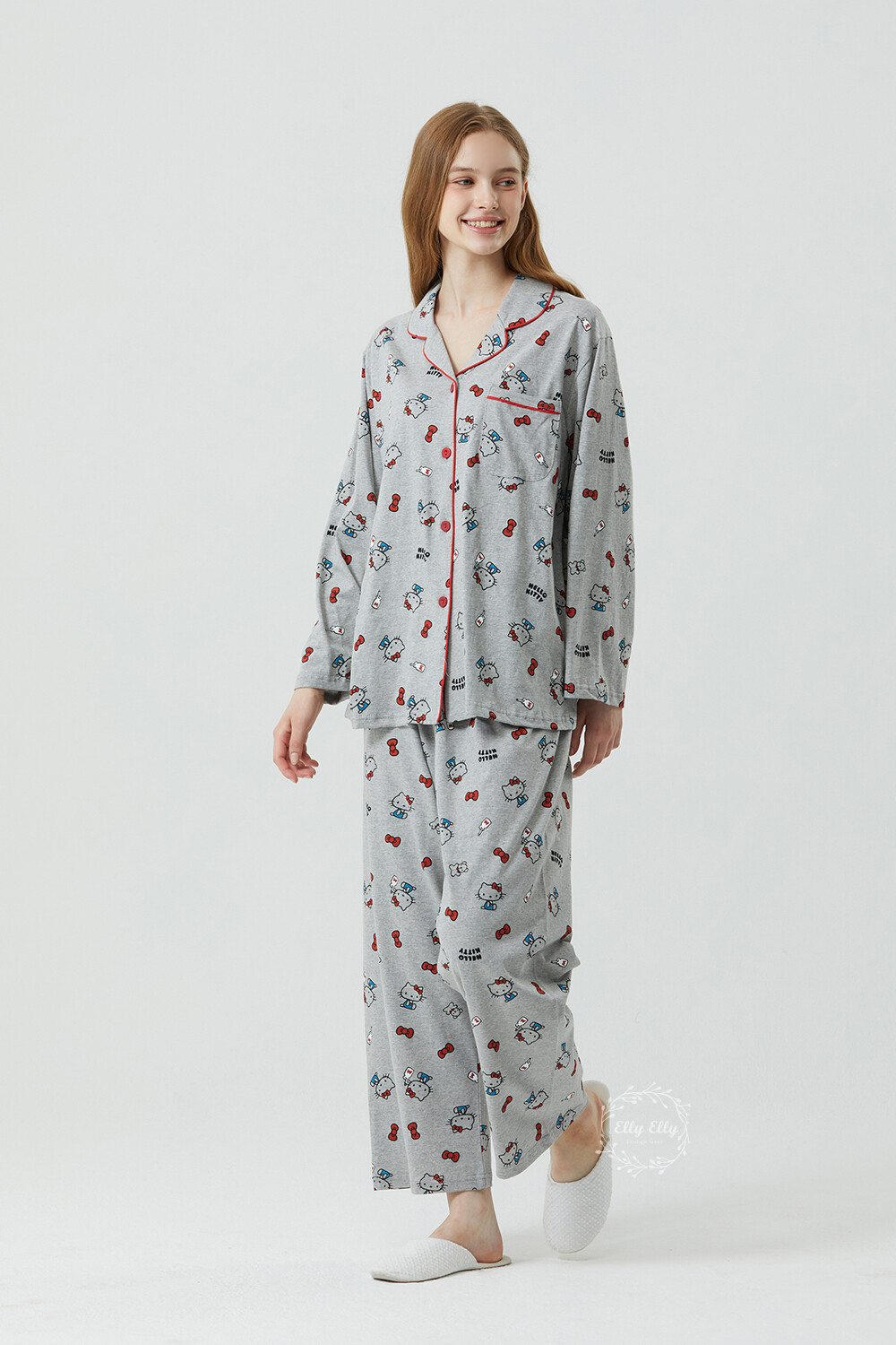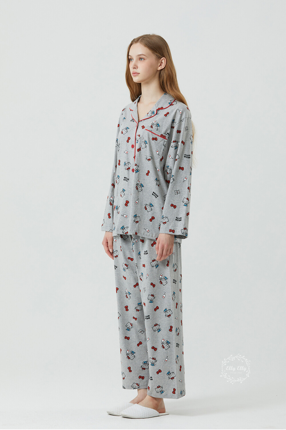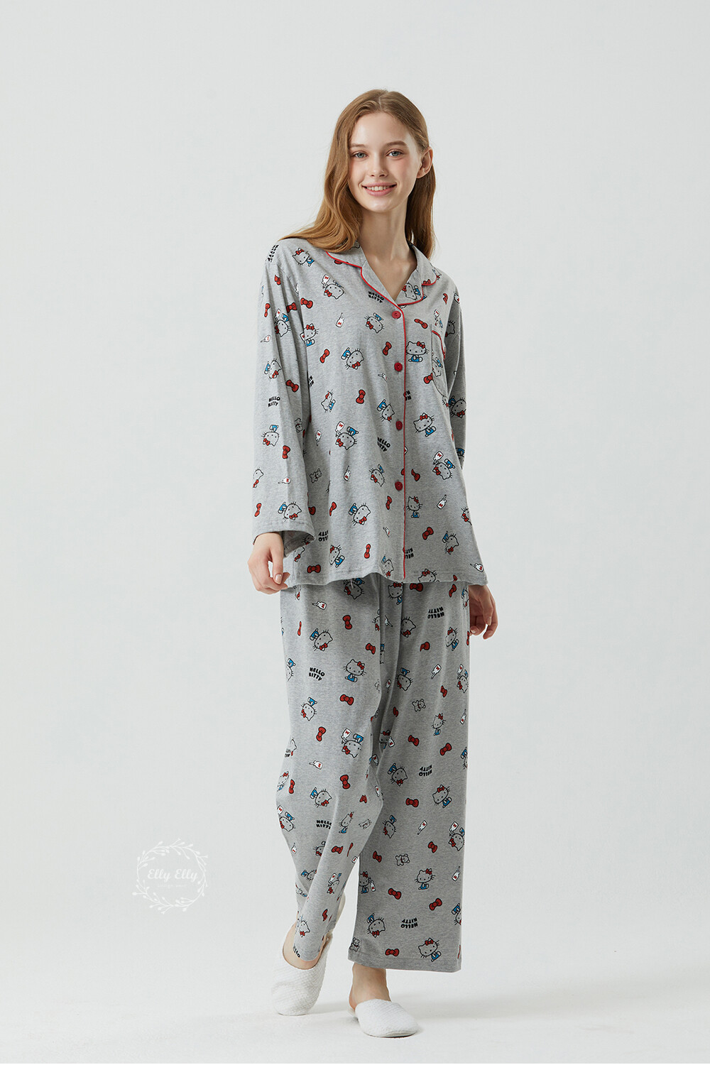 HK-4300 산리오정품 헬로키티 와이카라 다이마루 긴팔페어 잠옷세트