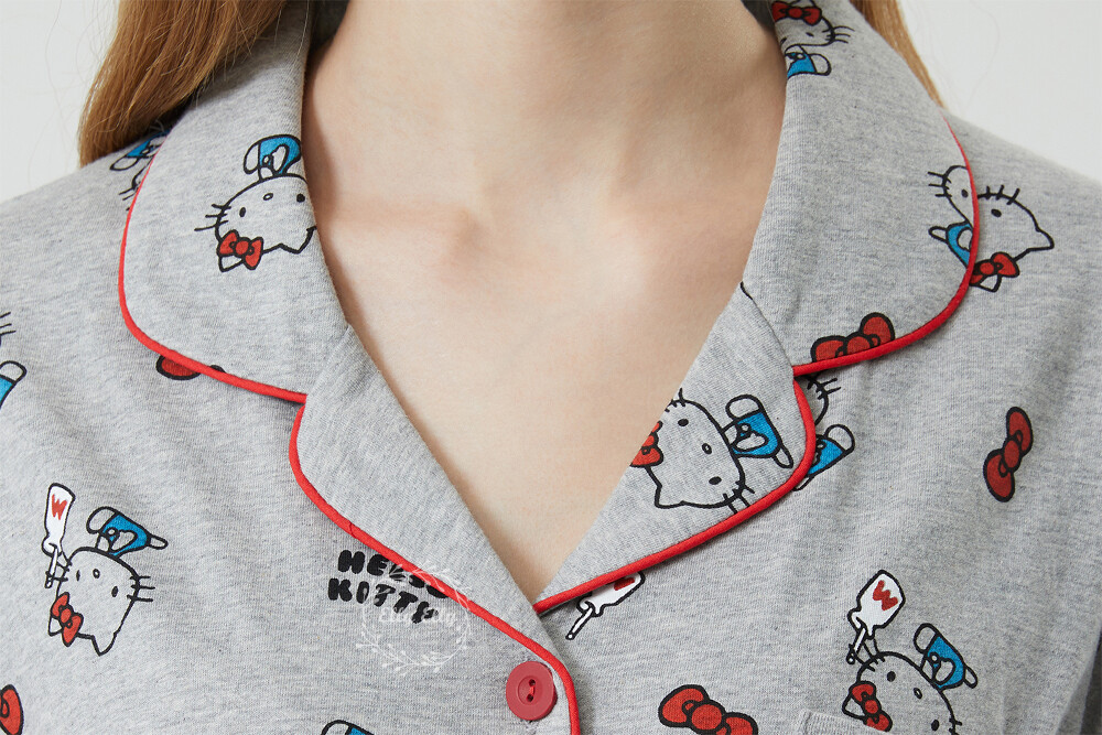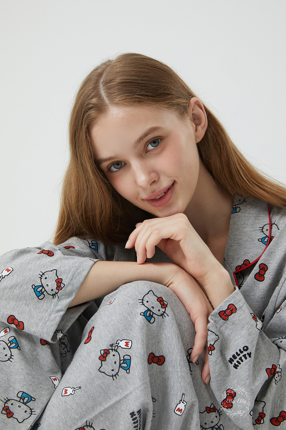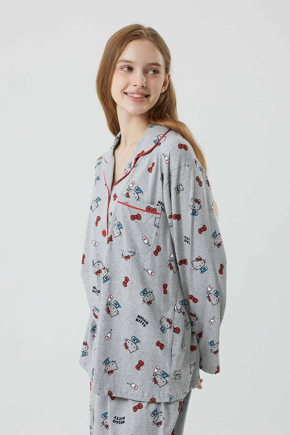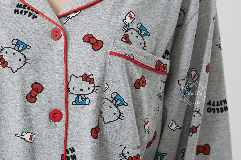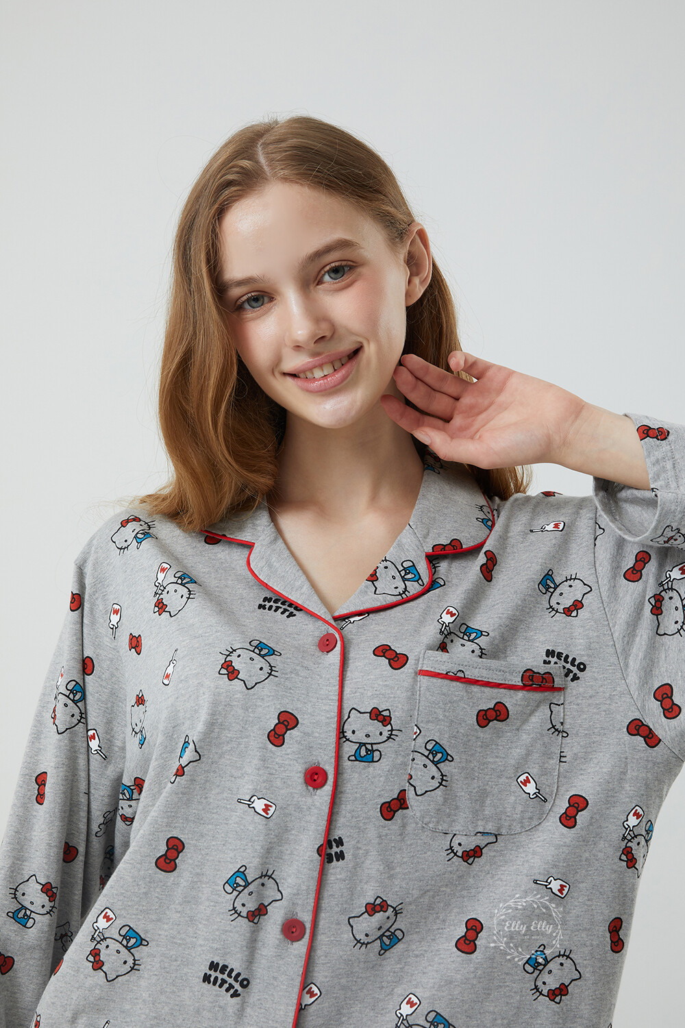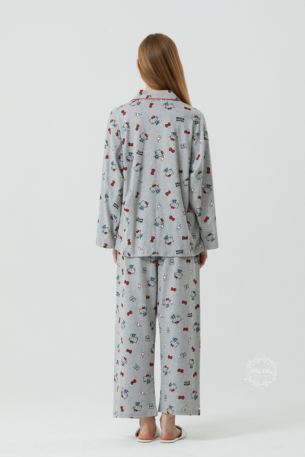HK-4300 산리오정품 헬로키티 와이카라 다이마루 긴팔페어 잠옷세트