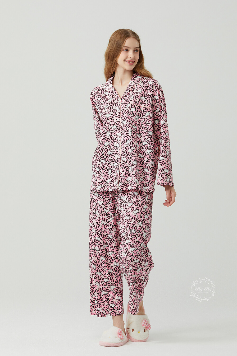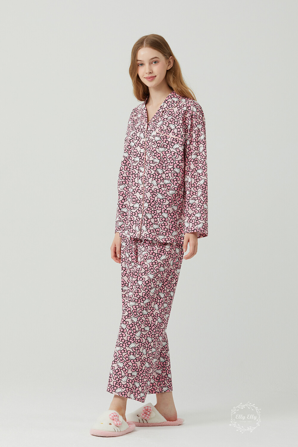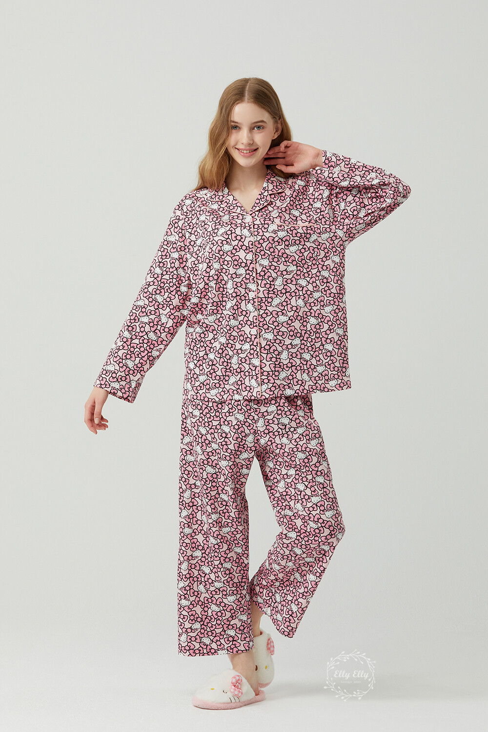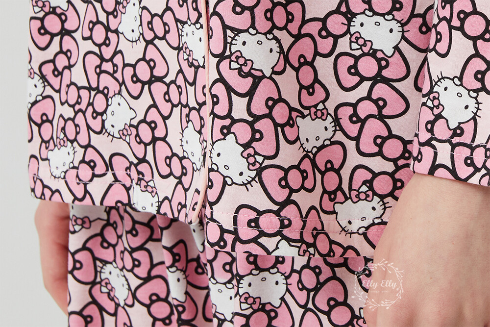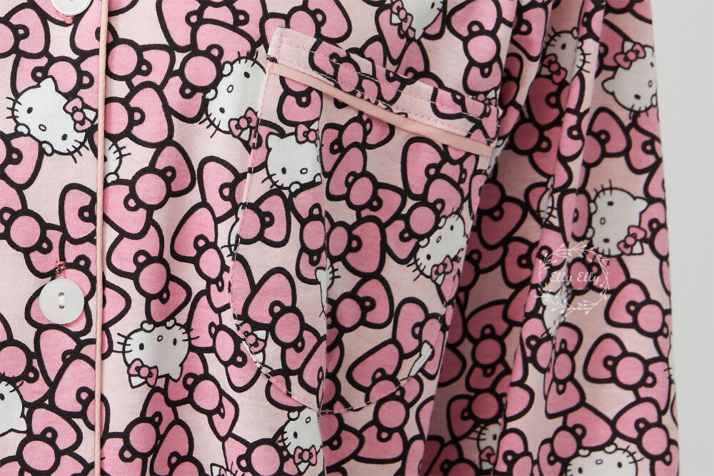HK-4302 산리오정품 헬로키티 와이카라 리본키티 긴팔페어 잠옷세트