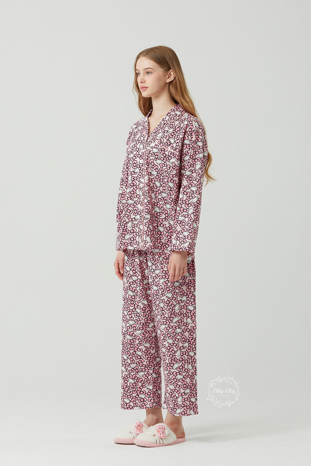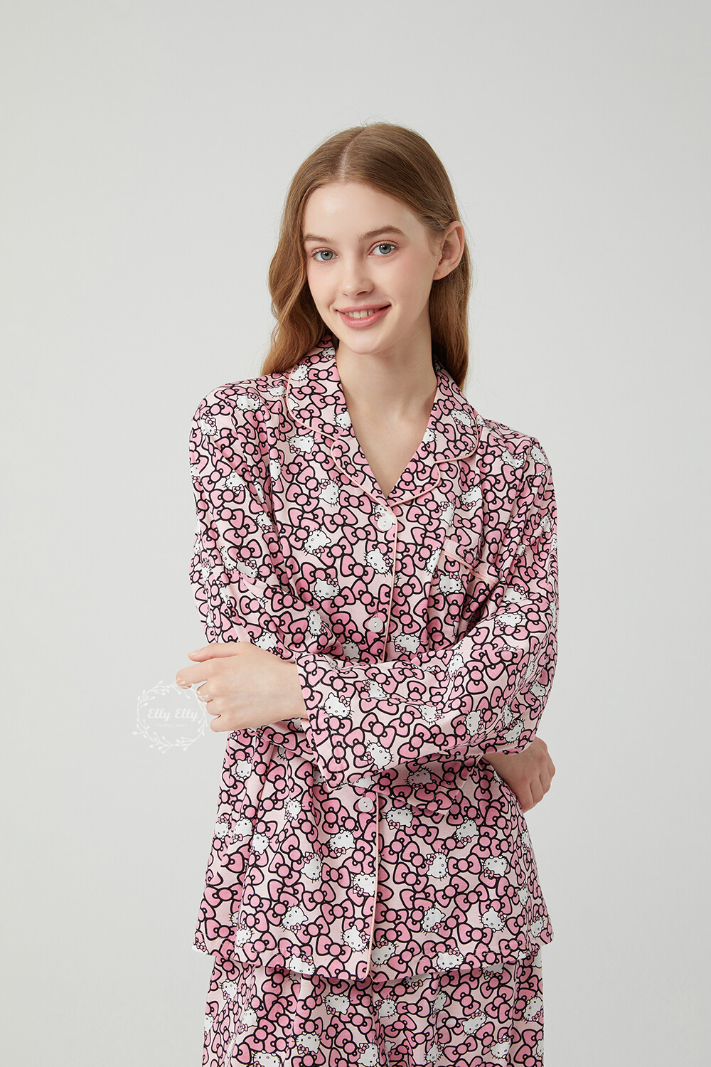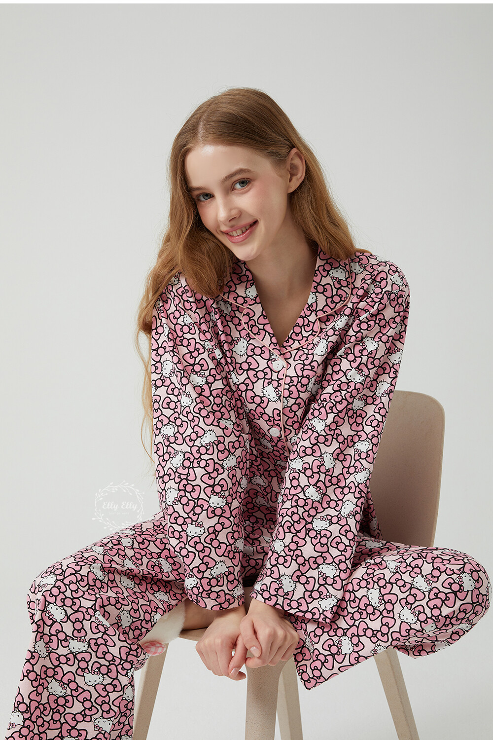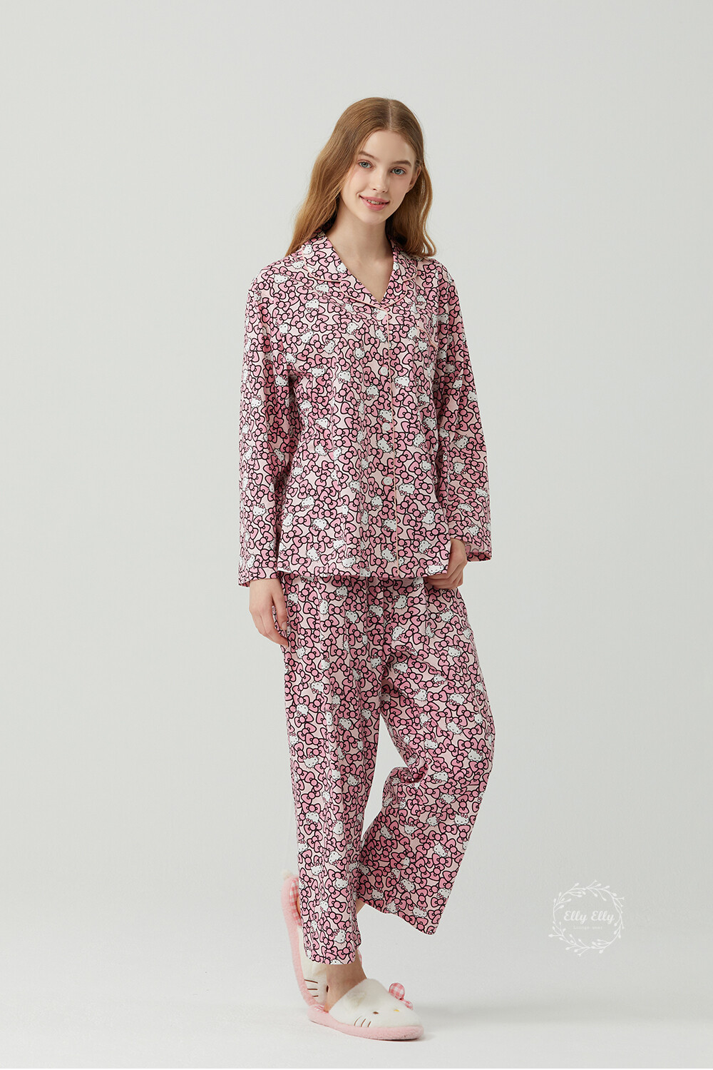 HK-4302 산리오정품 헬로키티 와이카라 리본키티 긴팔페어 잠옷세트