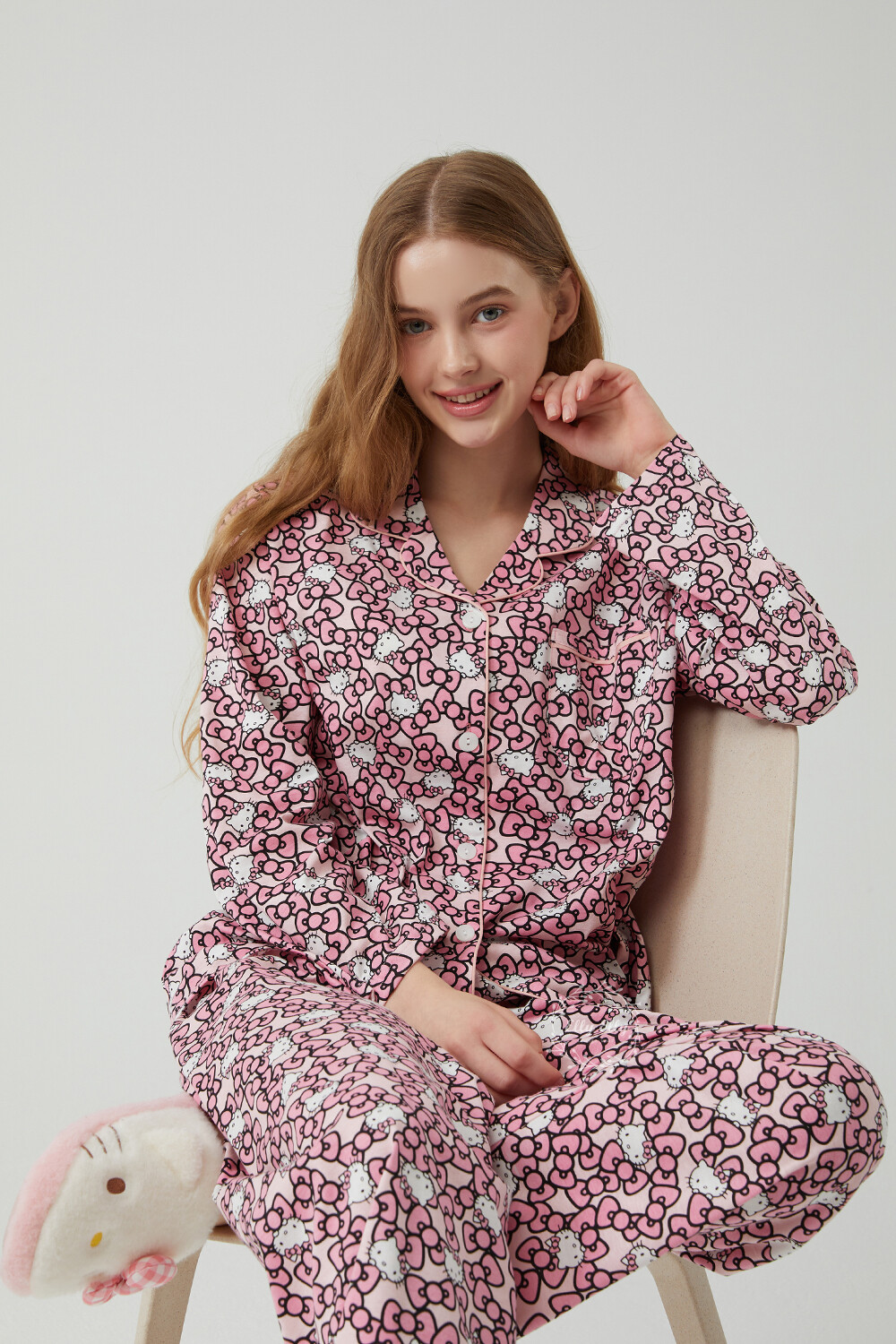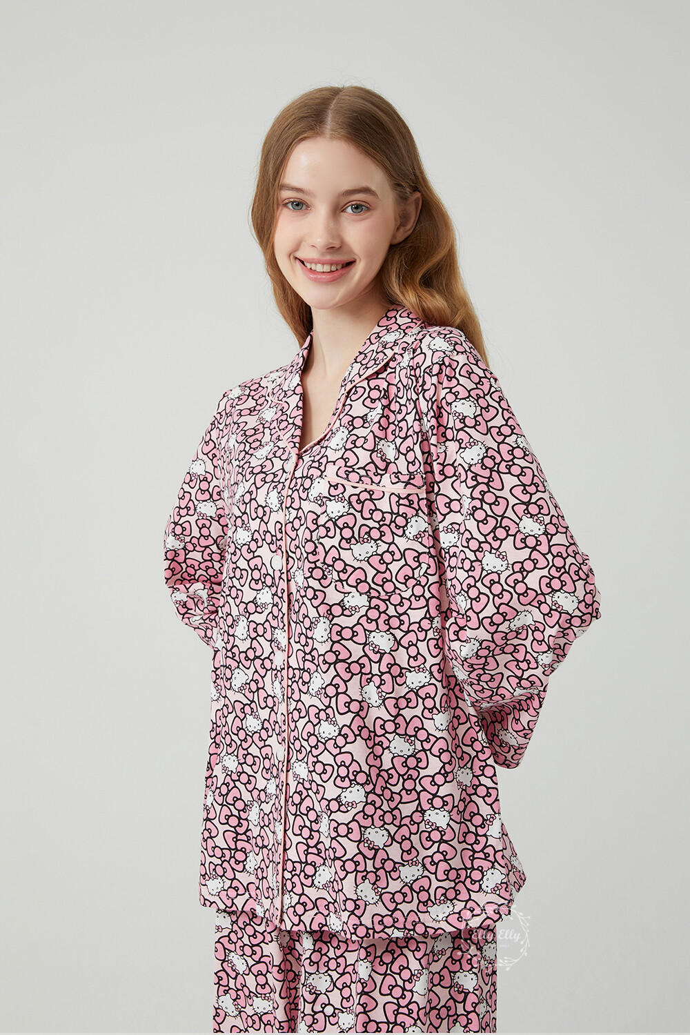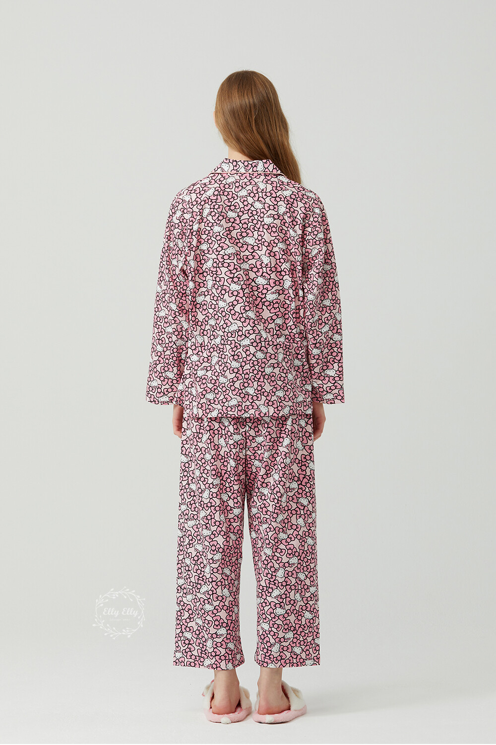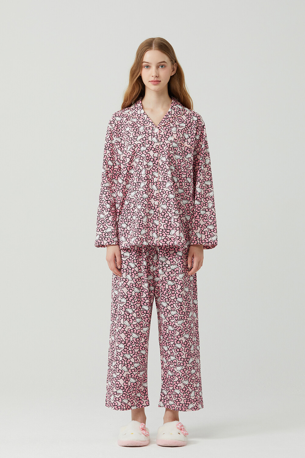 HK-4302 산리오정품 헬로키티 와이카라 리본키티 긴팔페어 잠옷세트