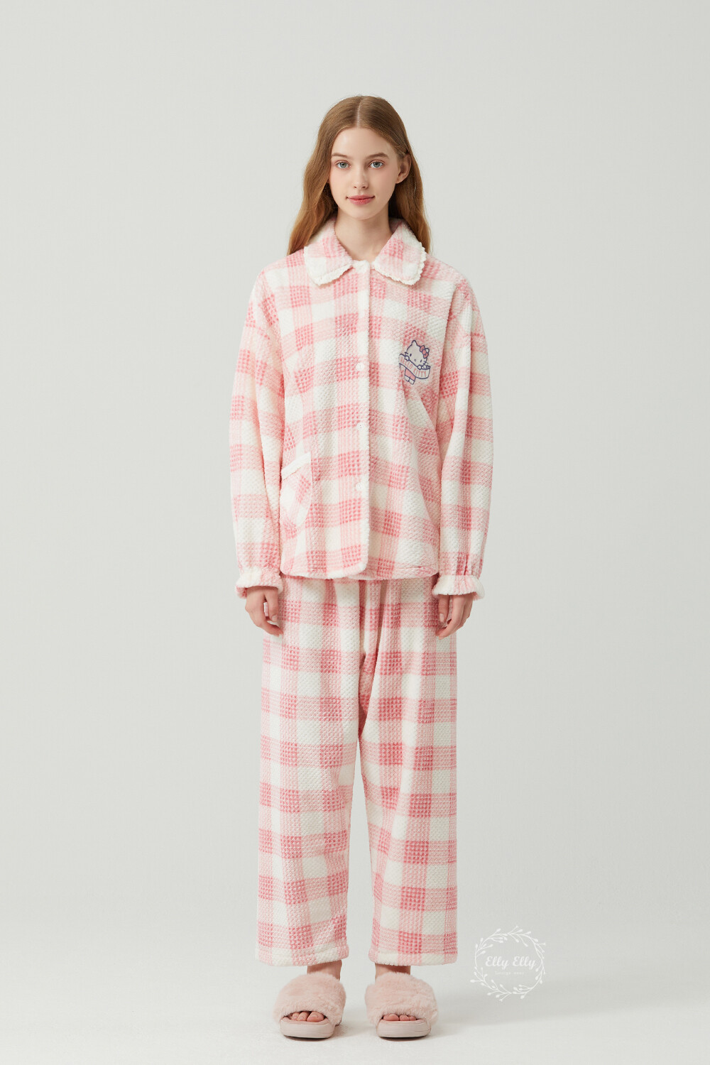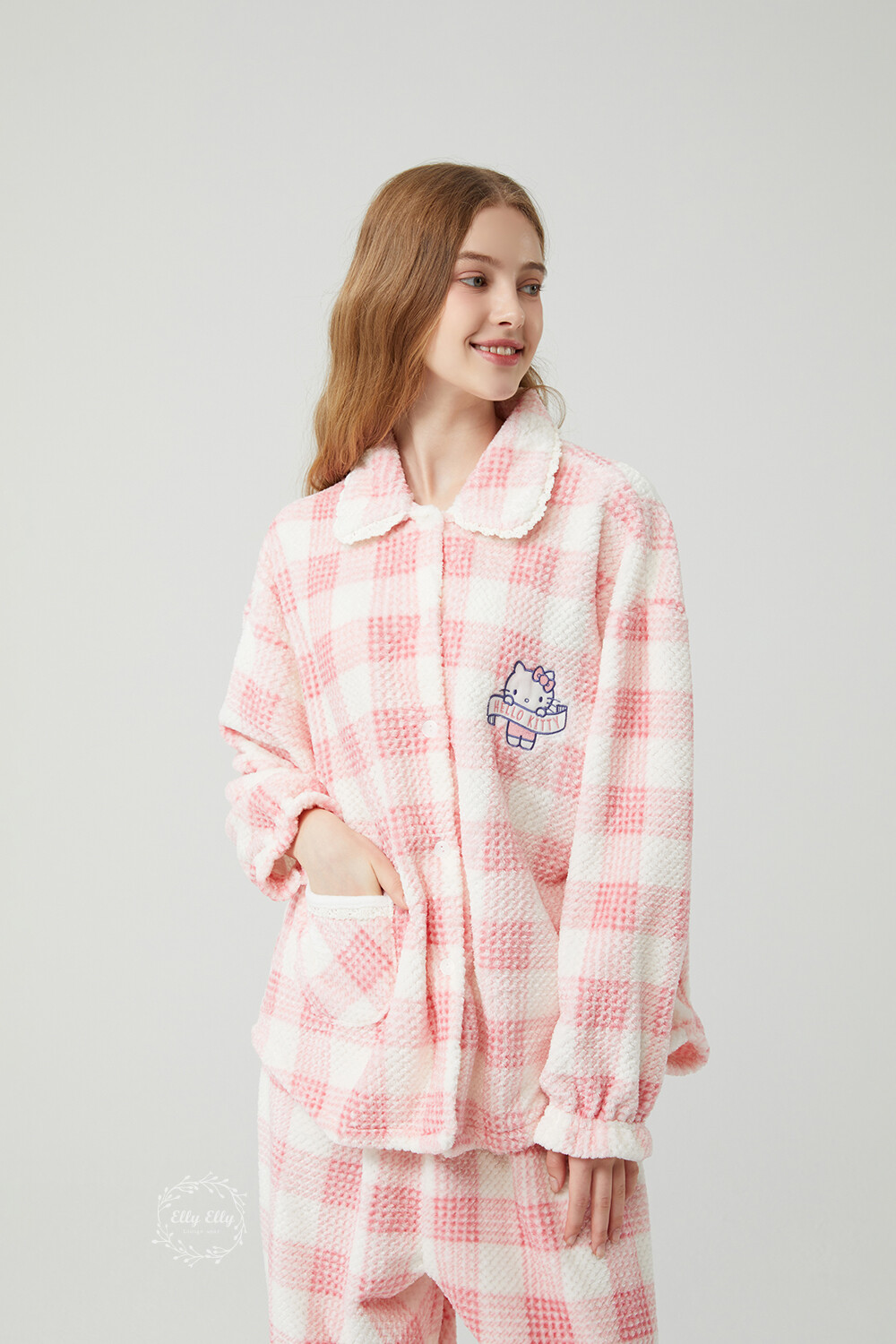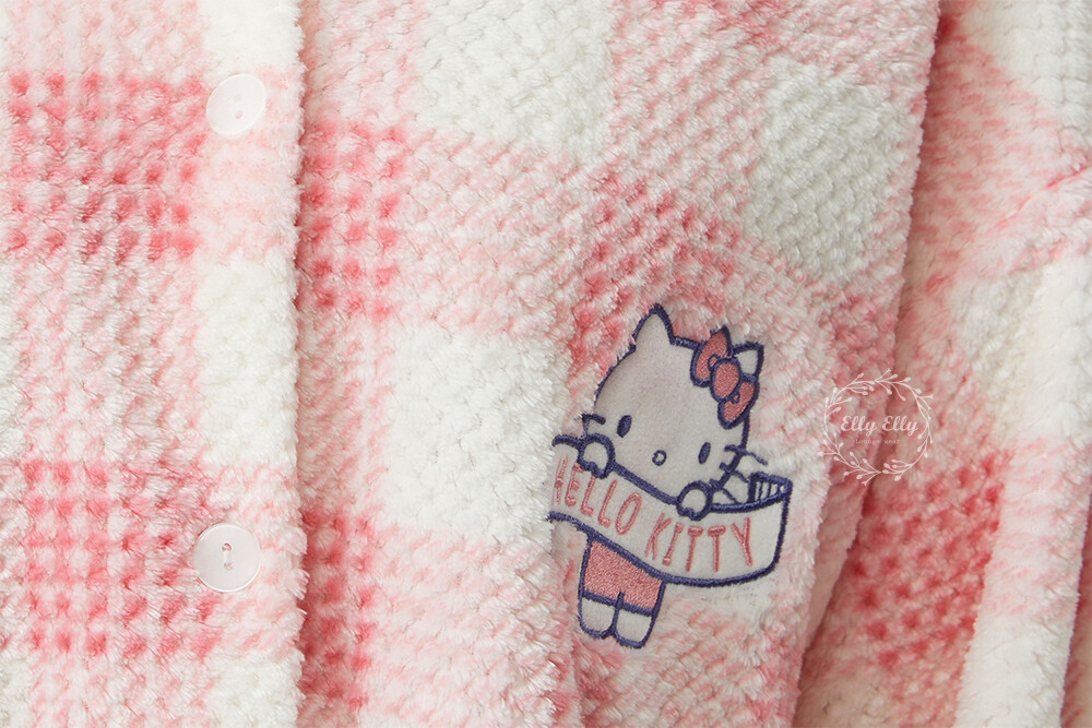 HK-4322 산리오정품 헬로키티 자수 와플 극세사 와이카라 여성 긴팔상하