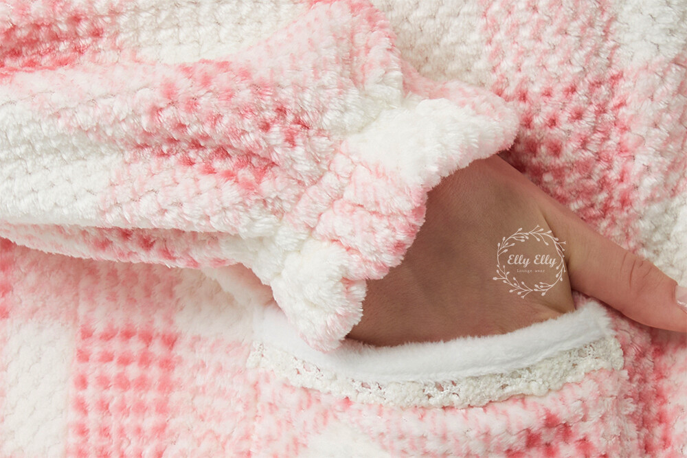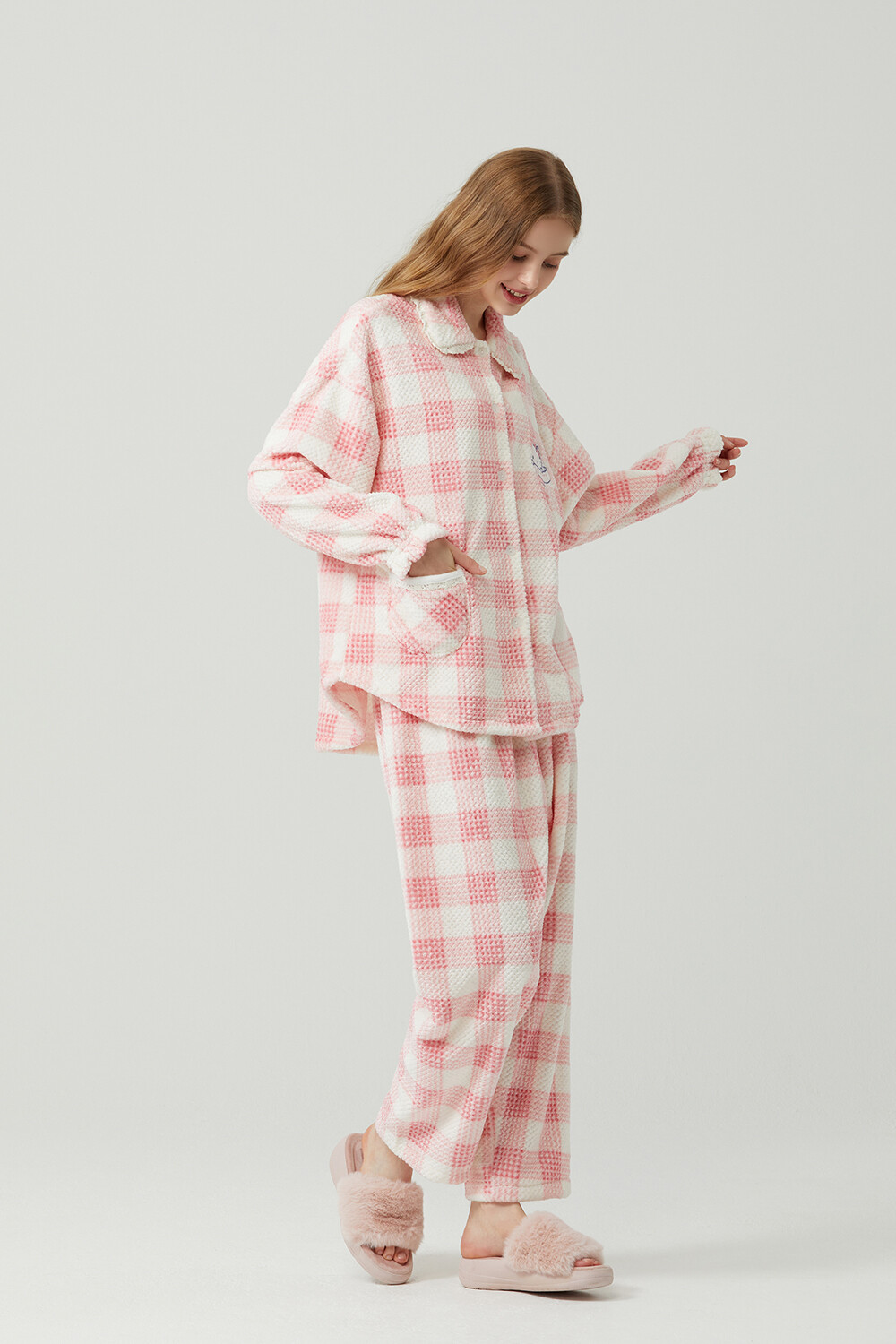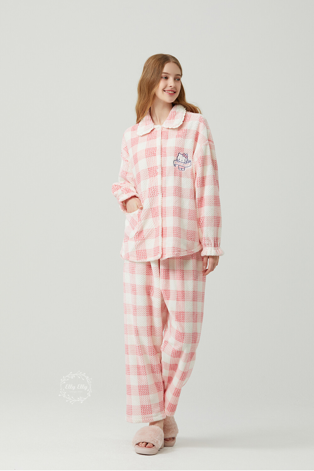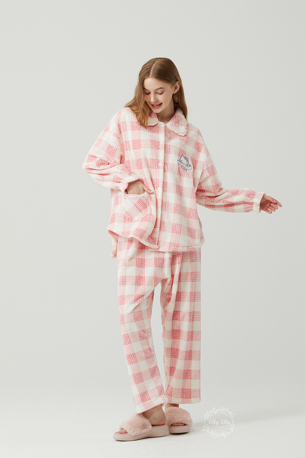 HK-4322 산리오정품 헬로키티 자수 와플 극세사 와이카라 여성 긴팔상하