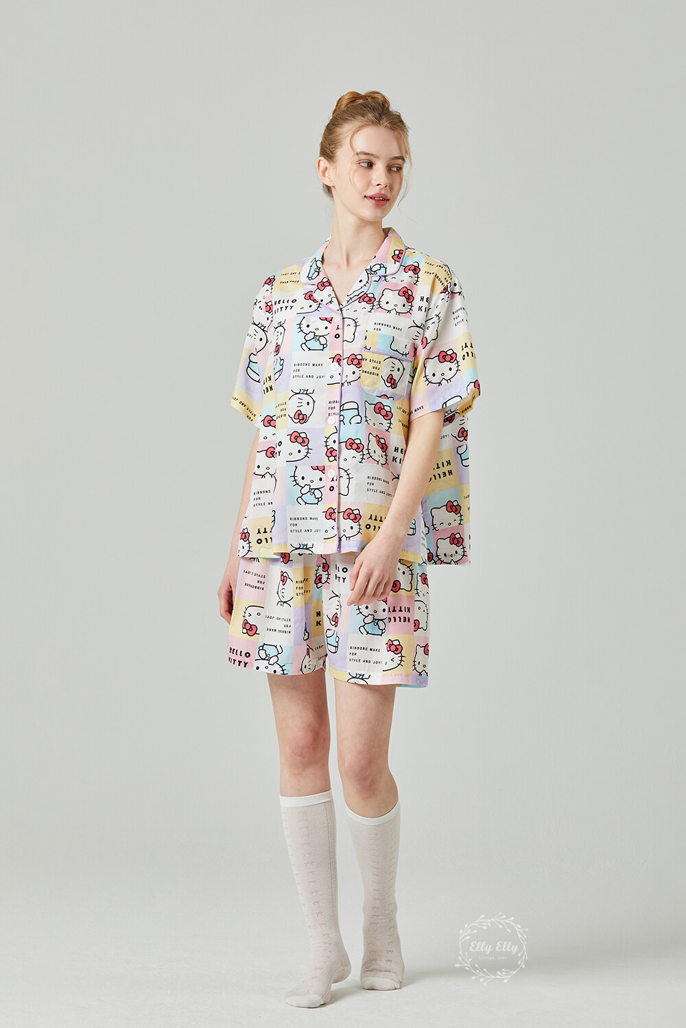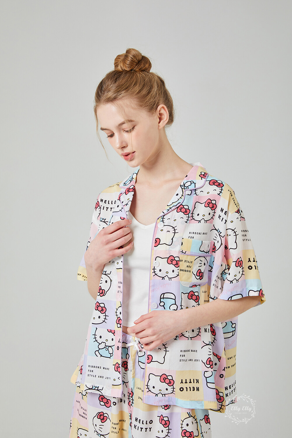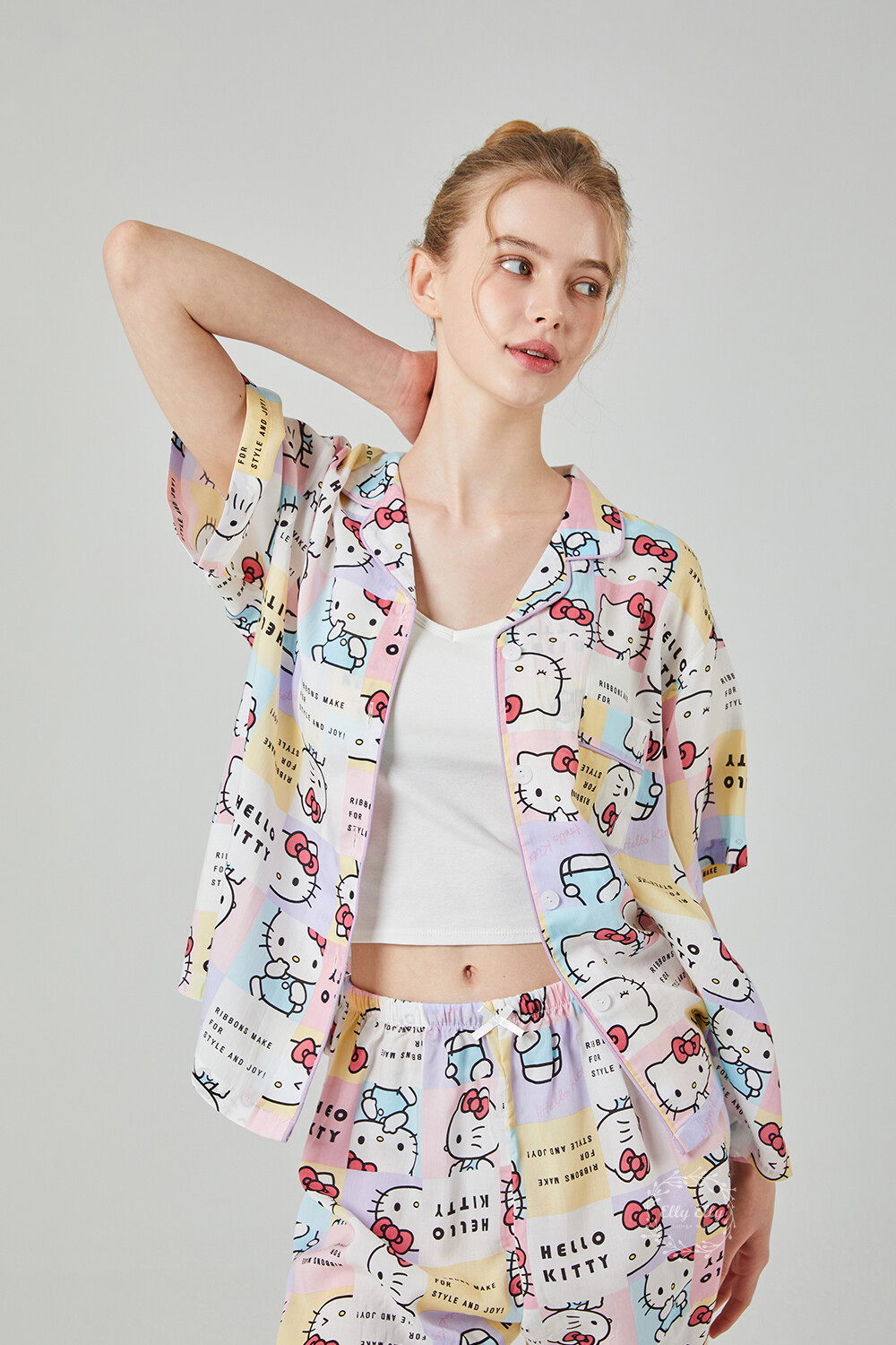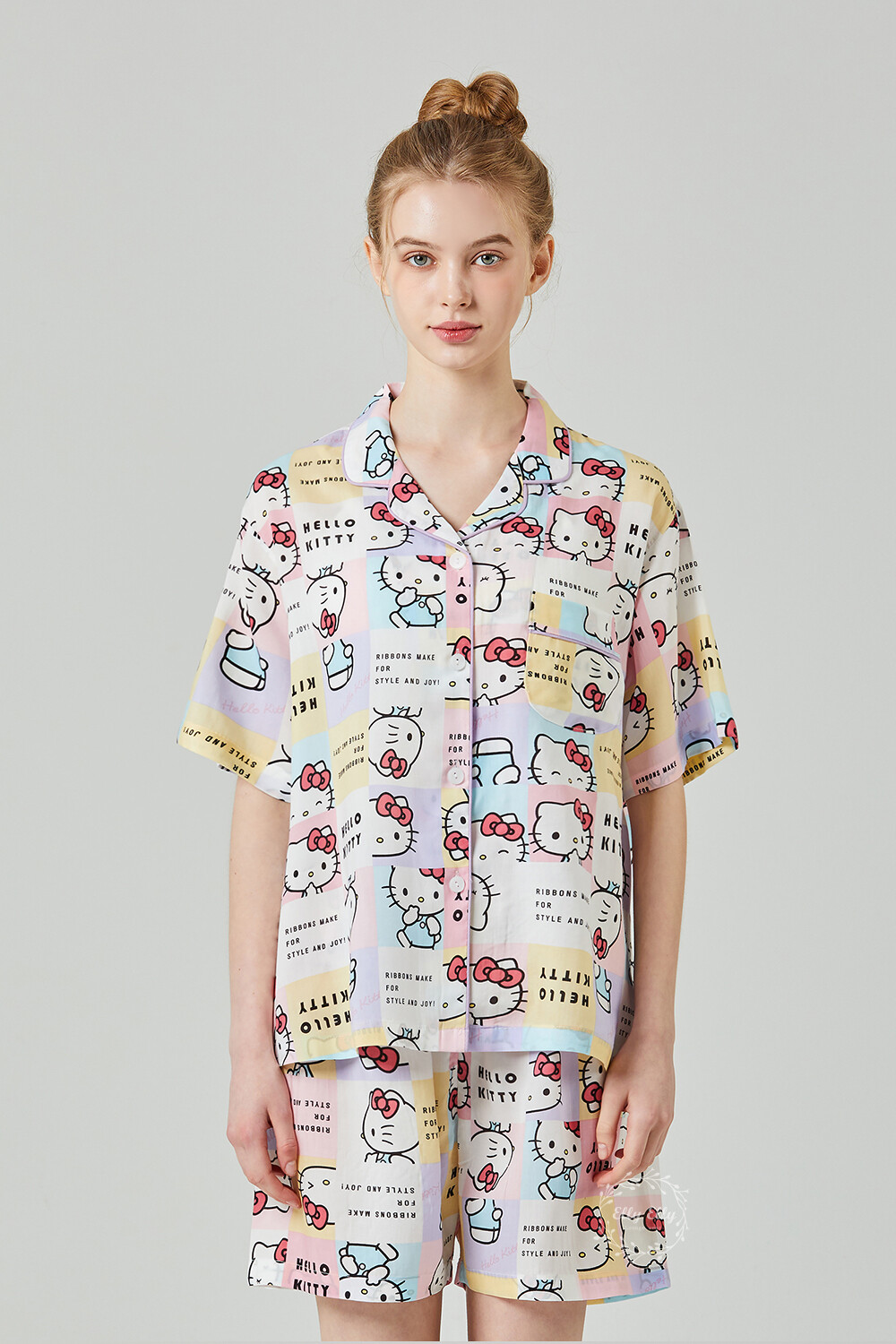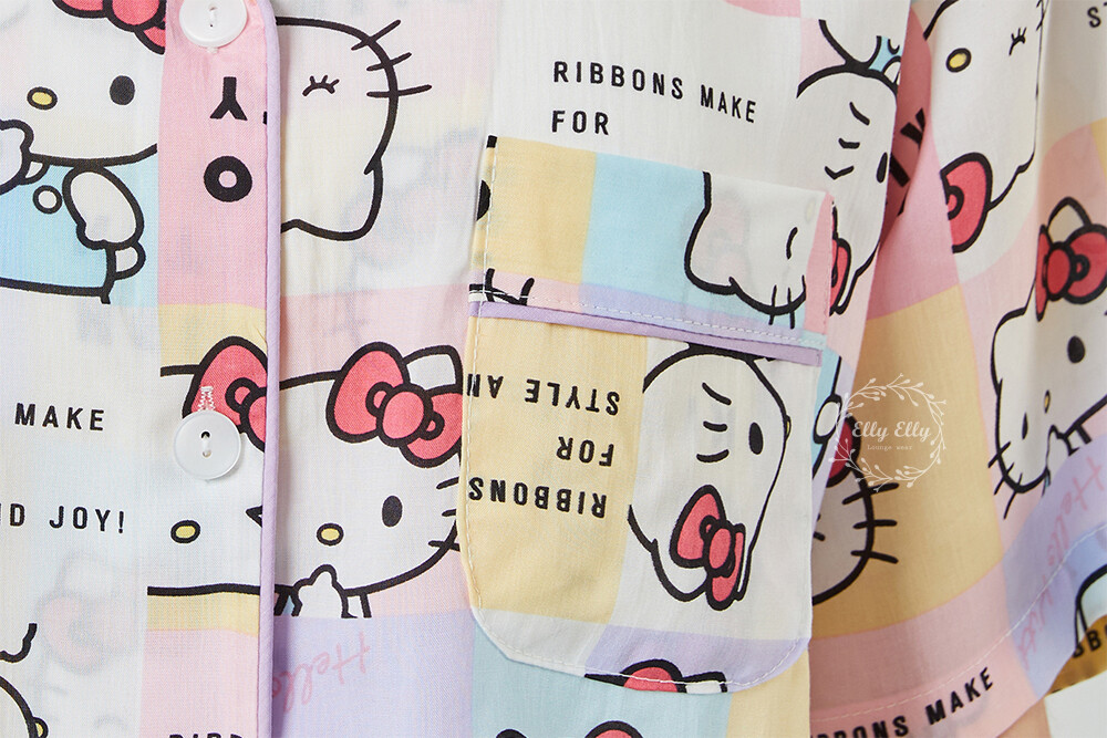 HK-4511 산리오정품 헬로키티 와이카라 파이핑 반팔상하