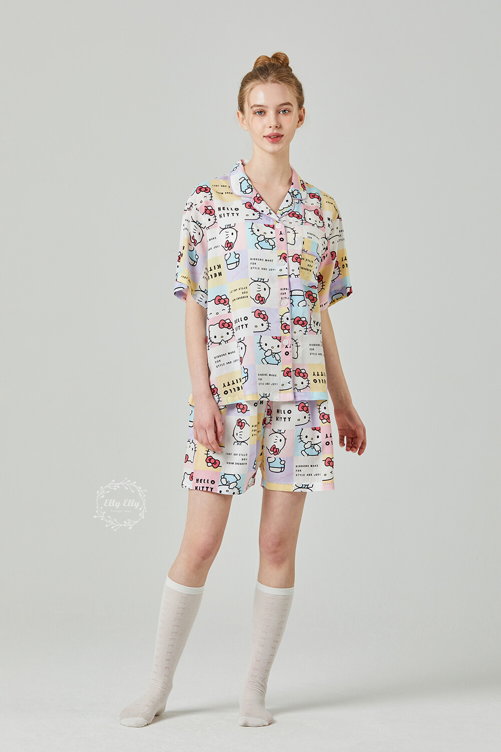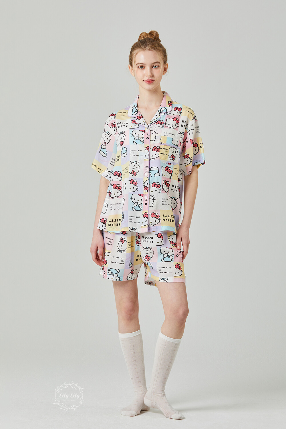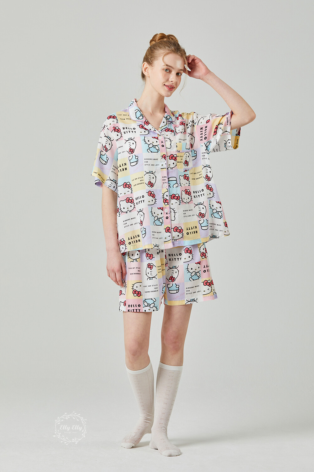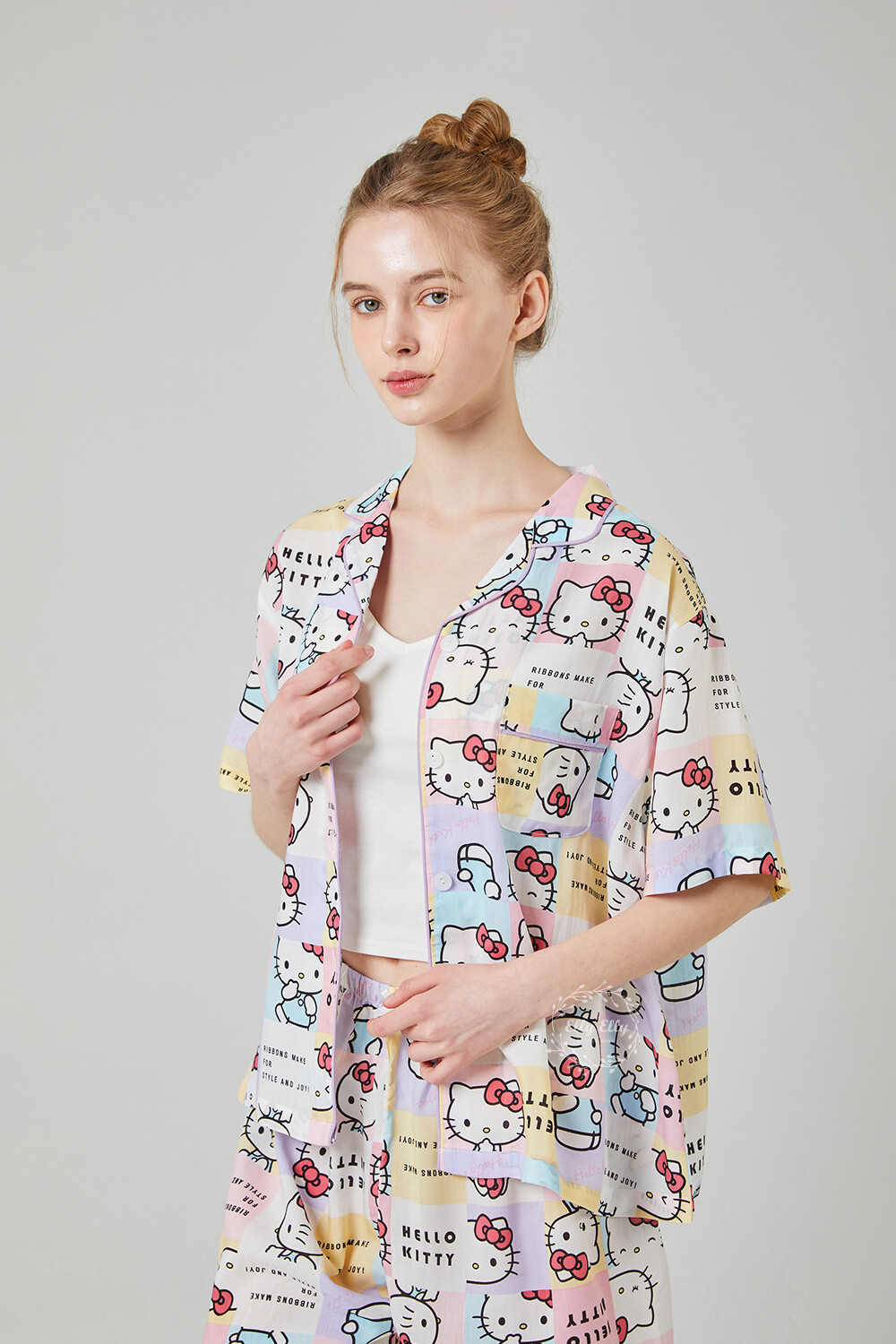 HK-4511 산리오정품 헬로키티 와이카라 파이핑 반팔상하