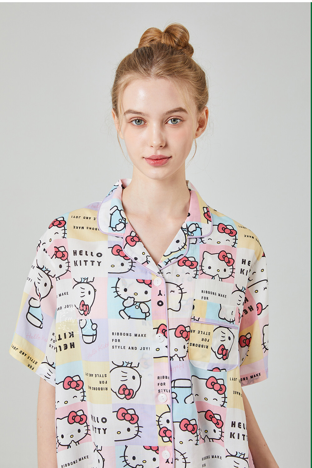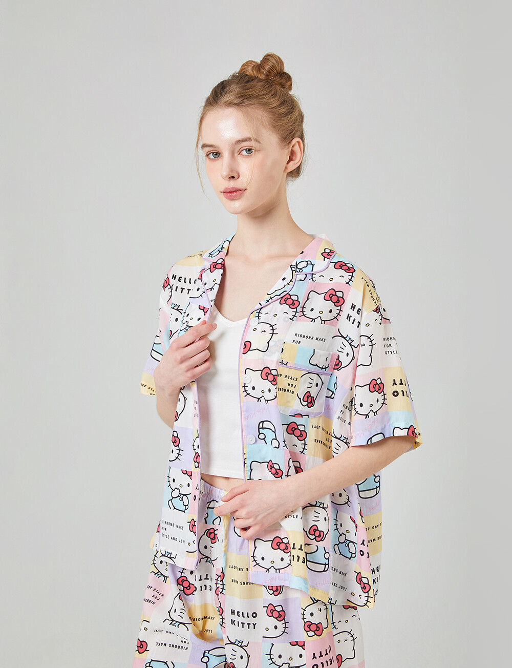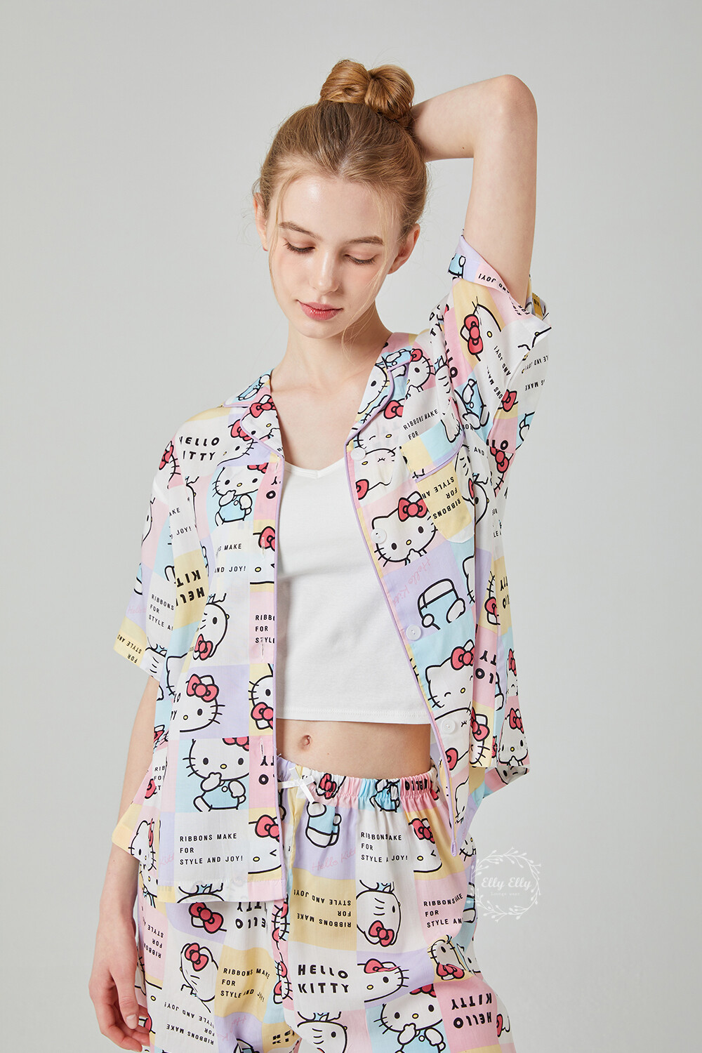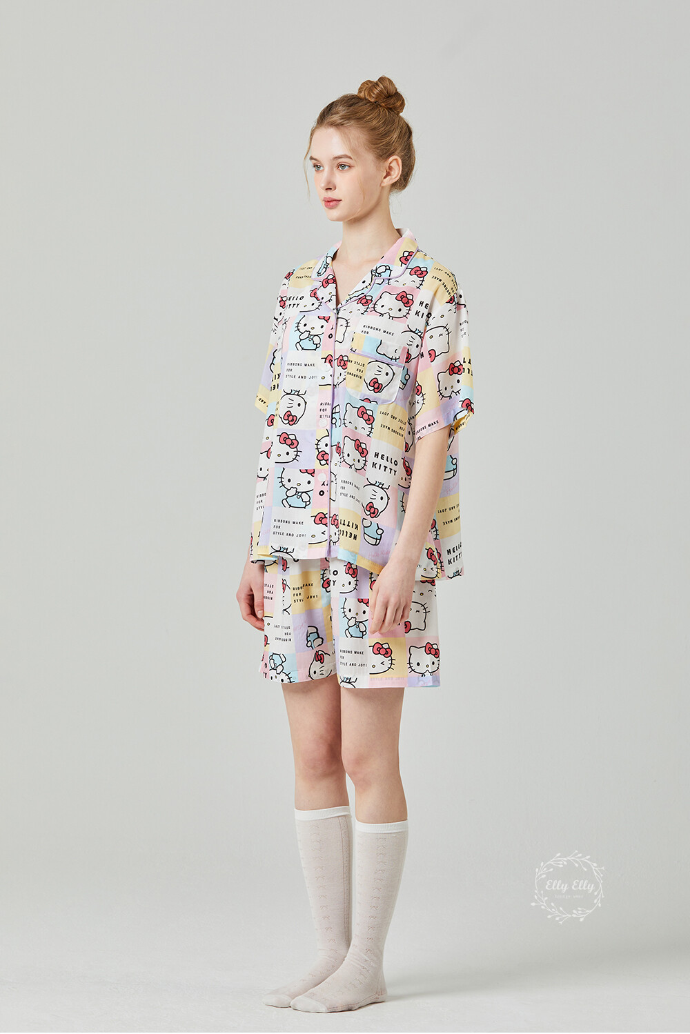 HK-4511 산리오정품 헬로키티 와이카라 파이핑 반팔상하