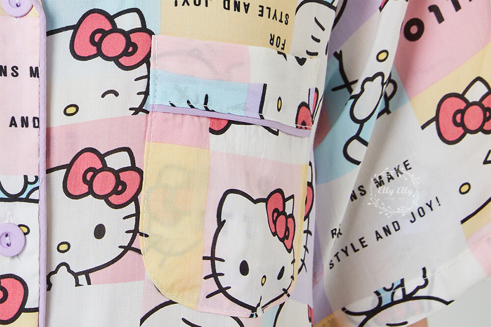 HK-4512 산리오정품 헬로키티 와이카라 파이핑 반팔원피스