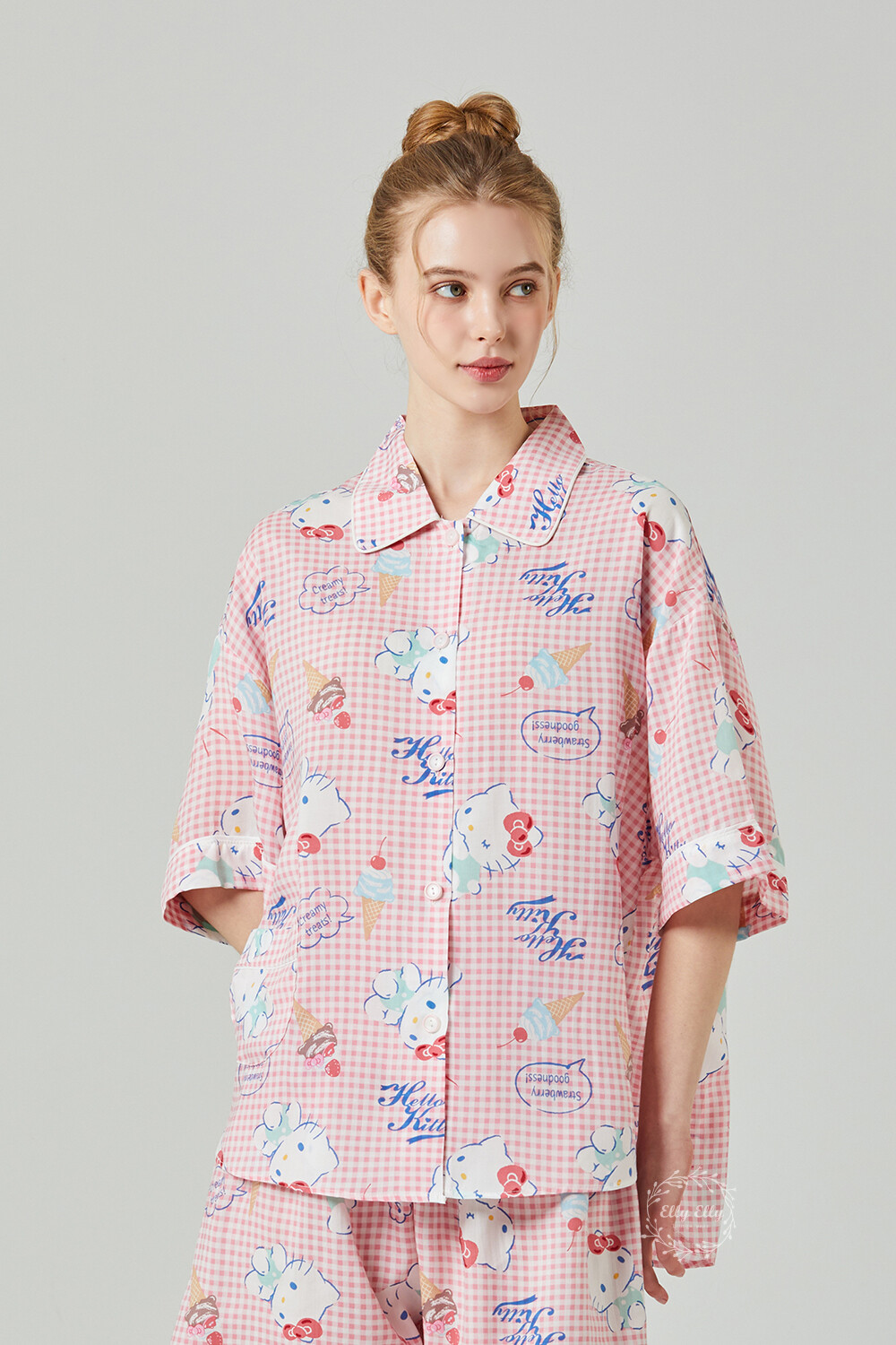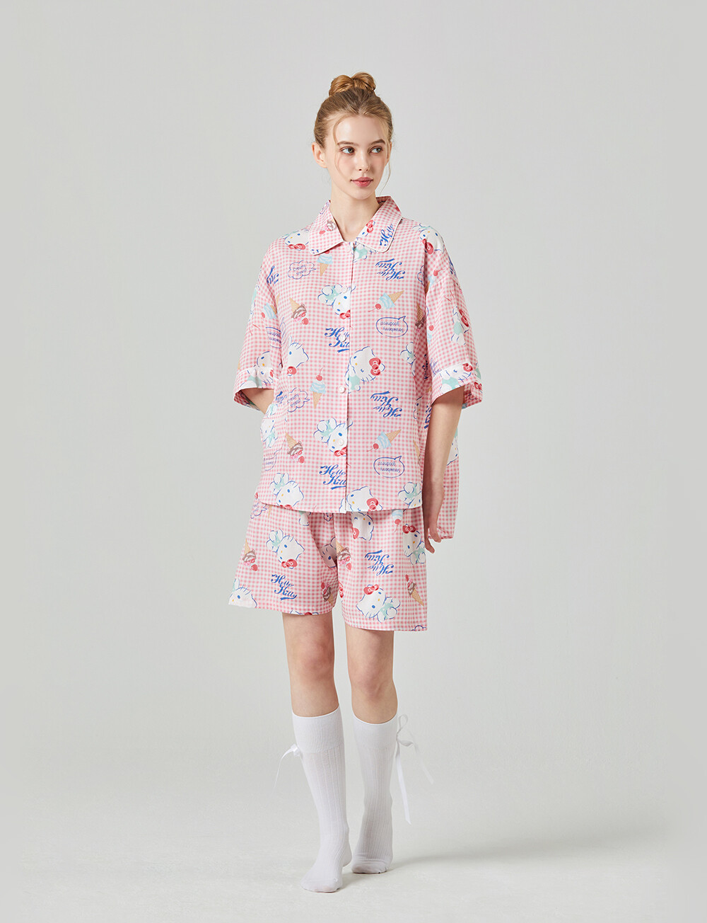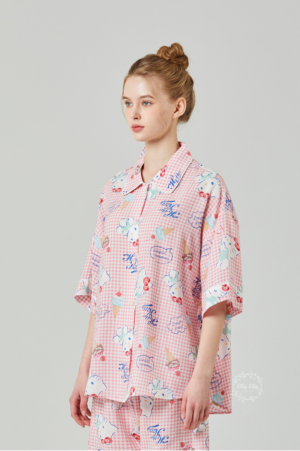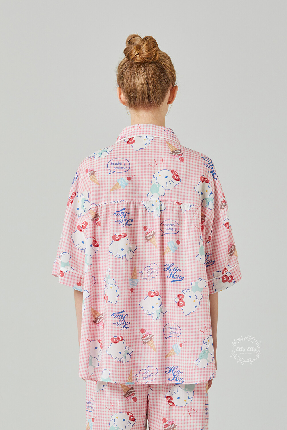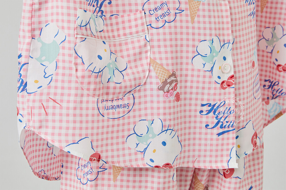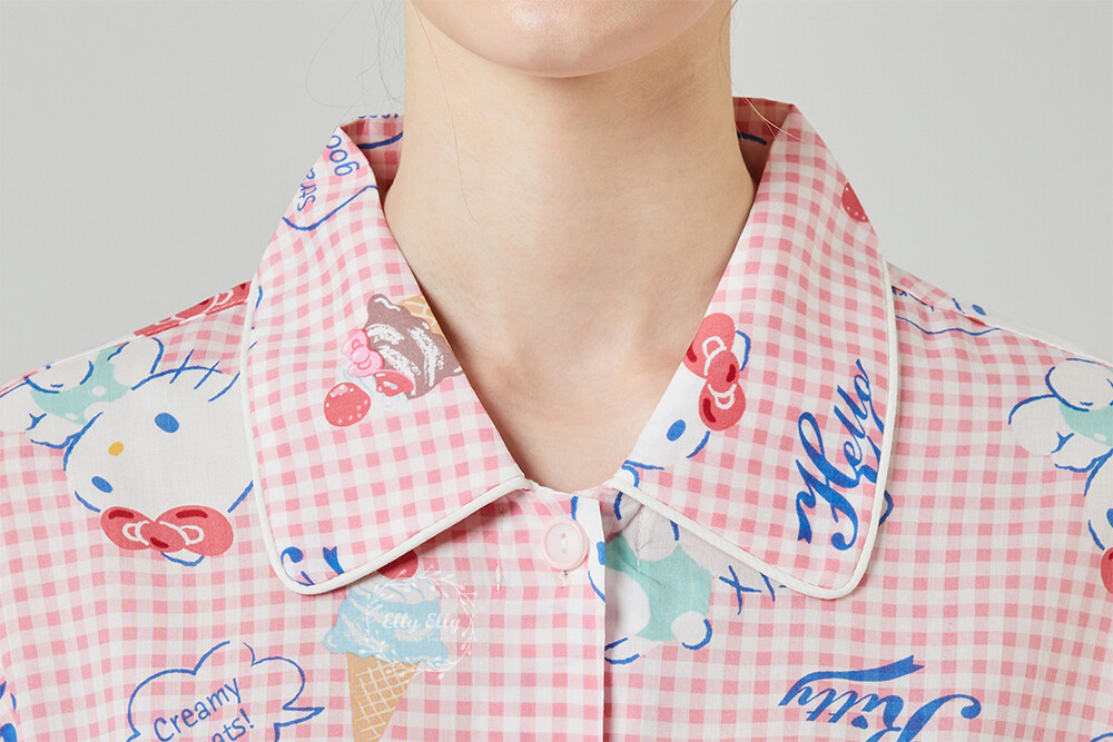 HK-4513 산리오정품 헬로키티 와이카라 체크 반팔상하