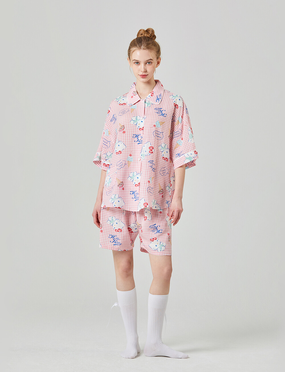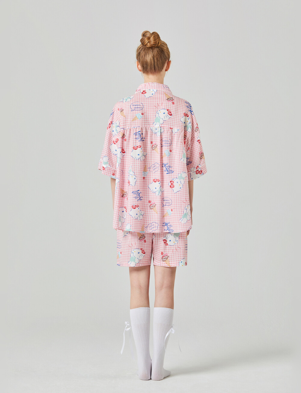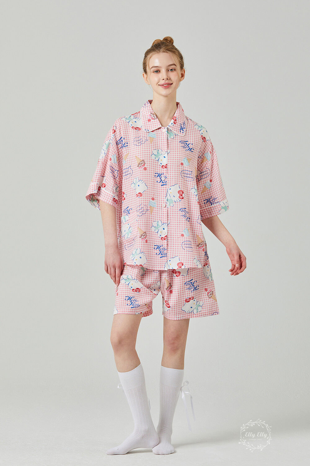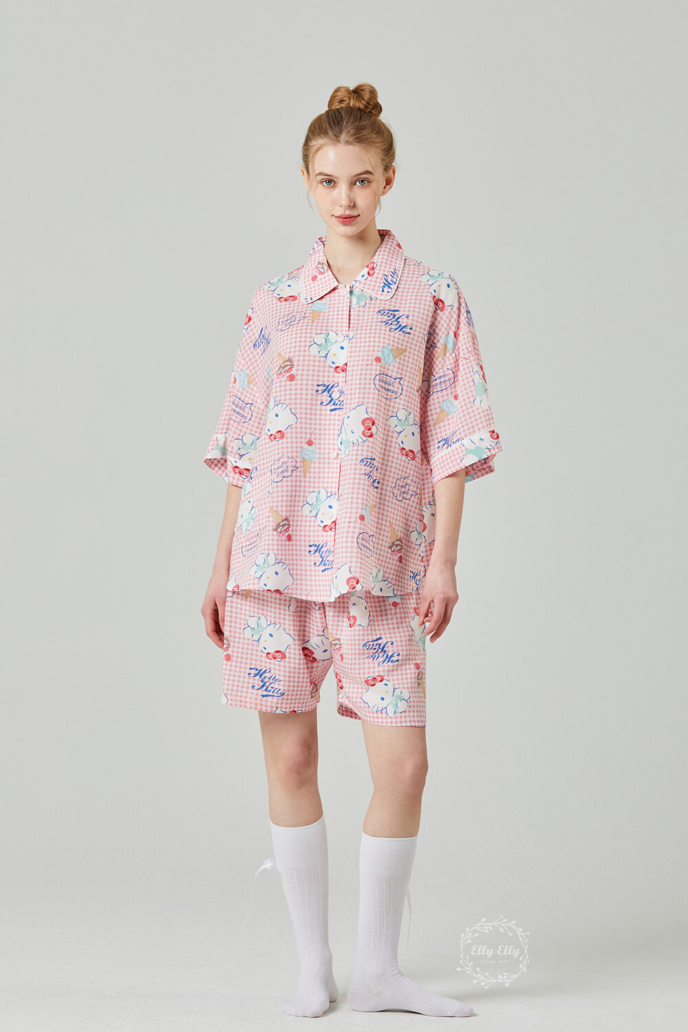 HK-4513 산리오정품 헬로키티 와이카라 체크 반팔상하