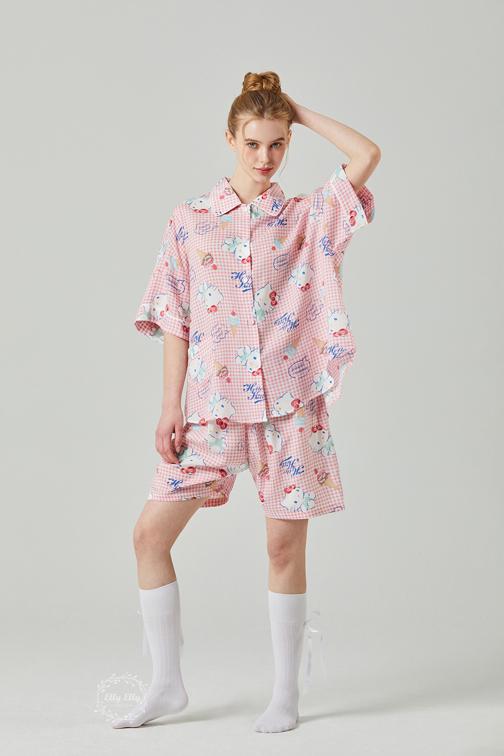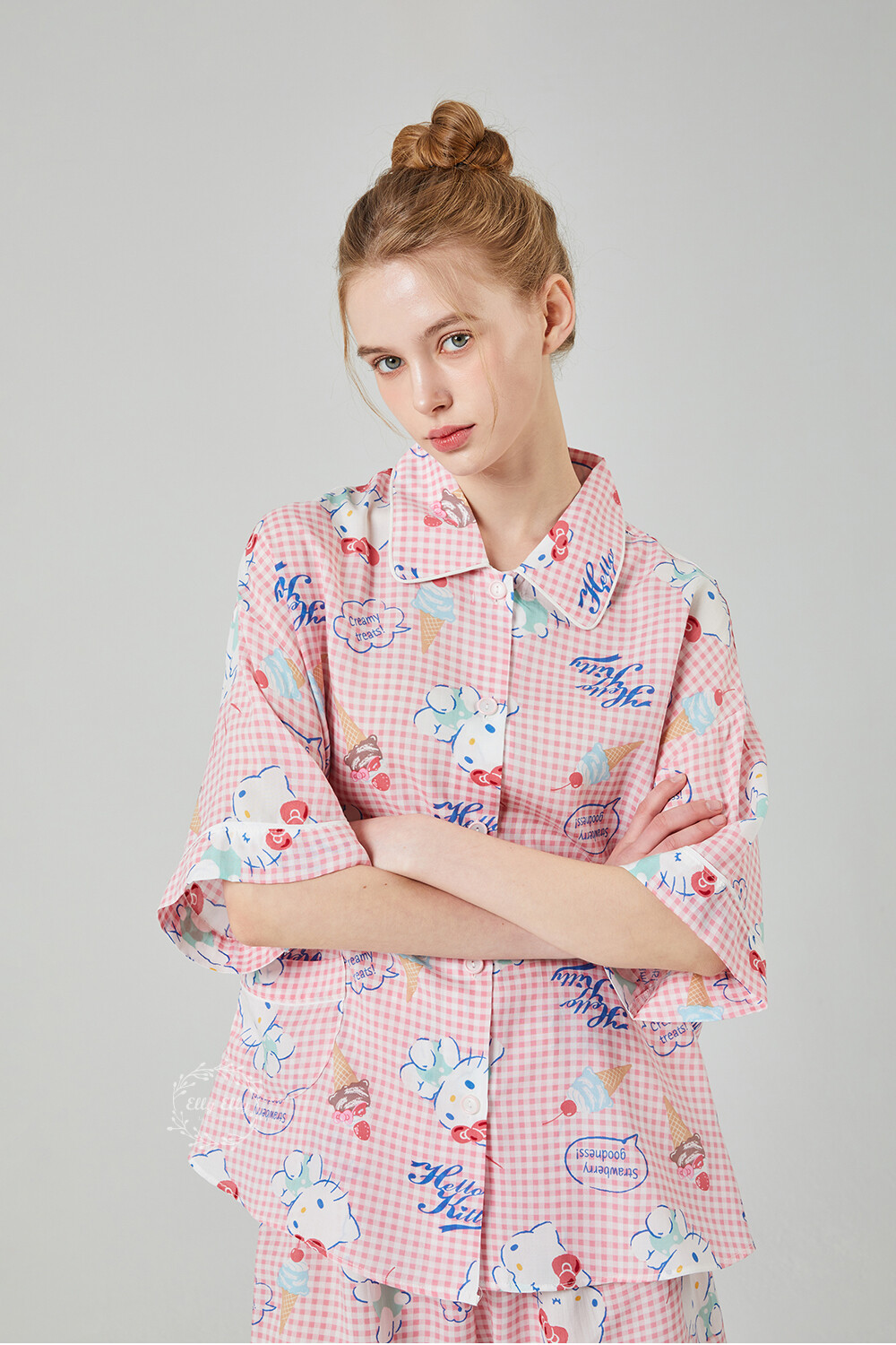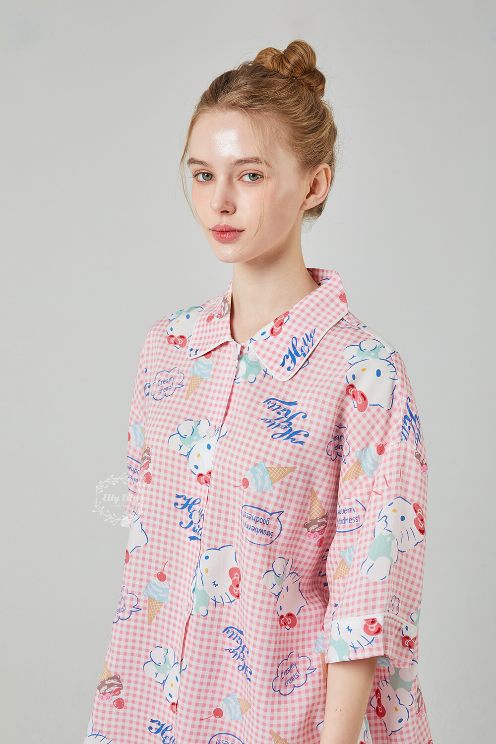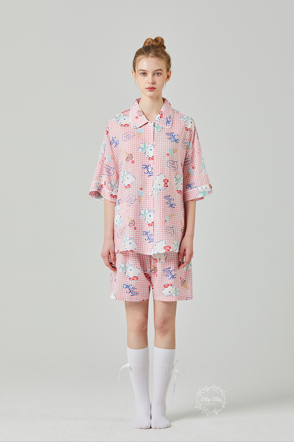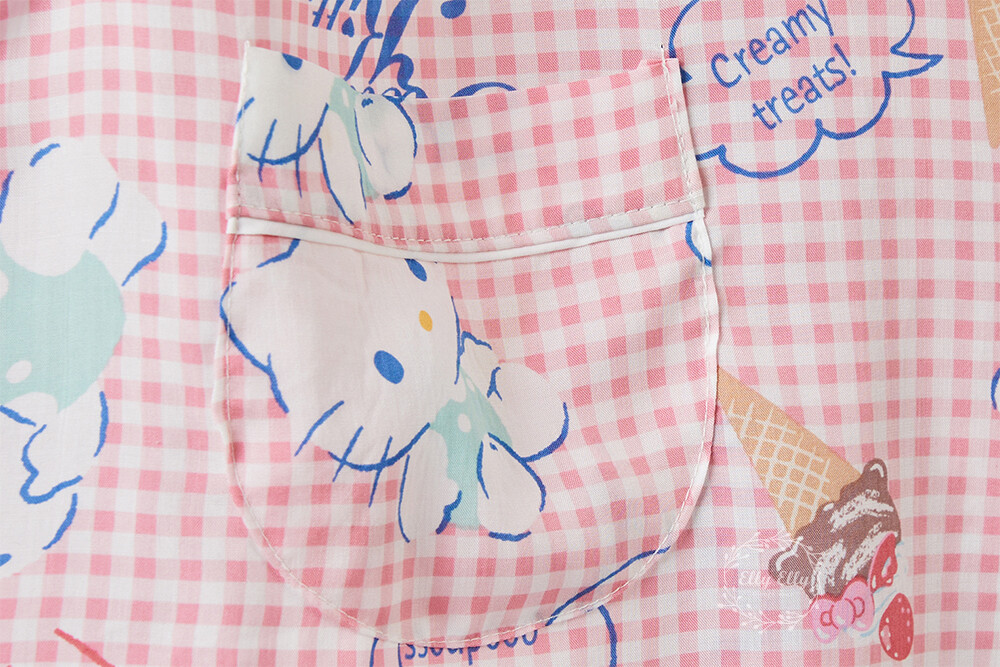 HK-4513 산리오정품 헬로키티 와이카라 체크 반팔상하