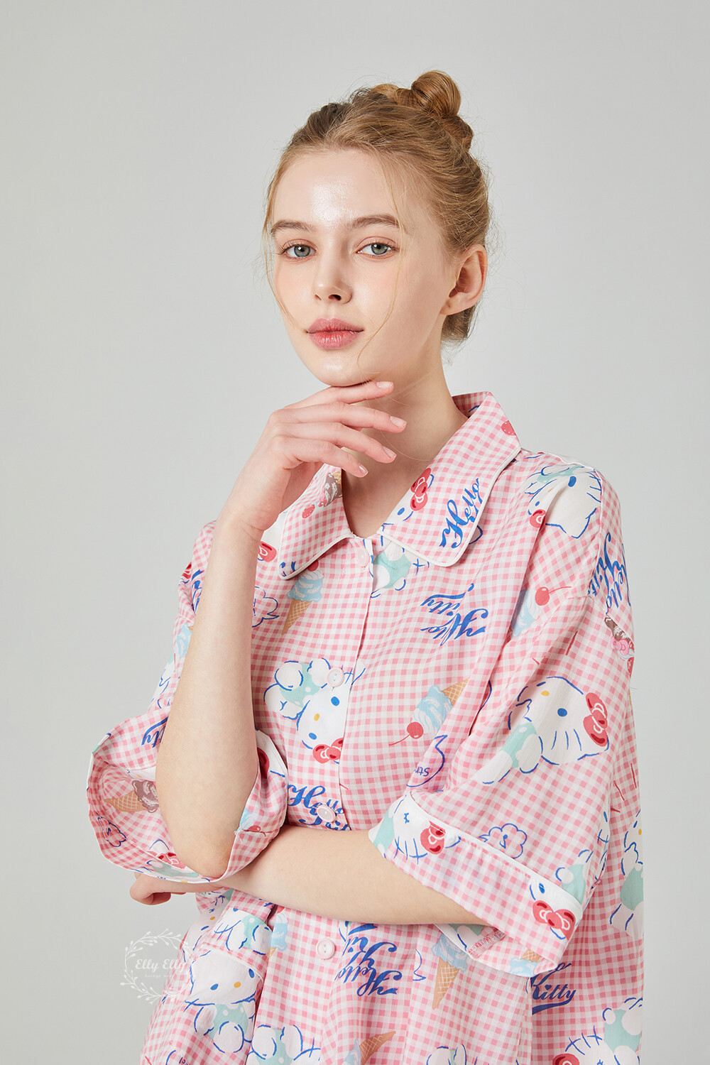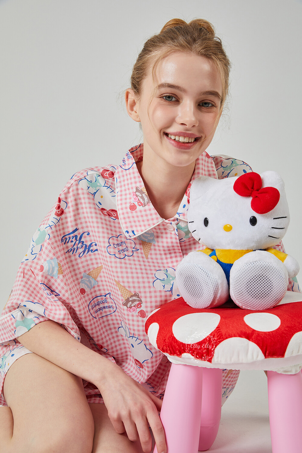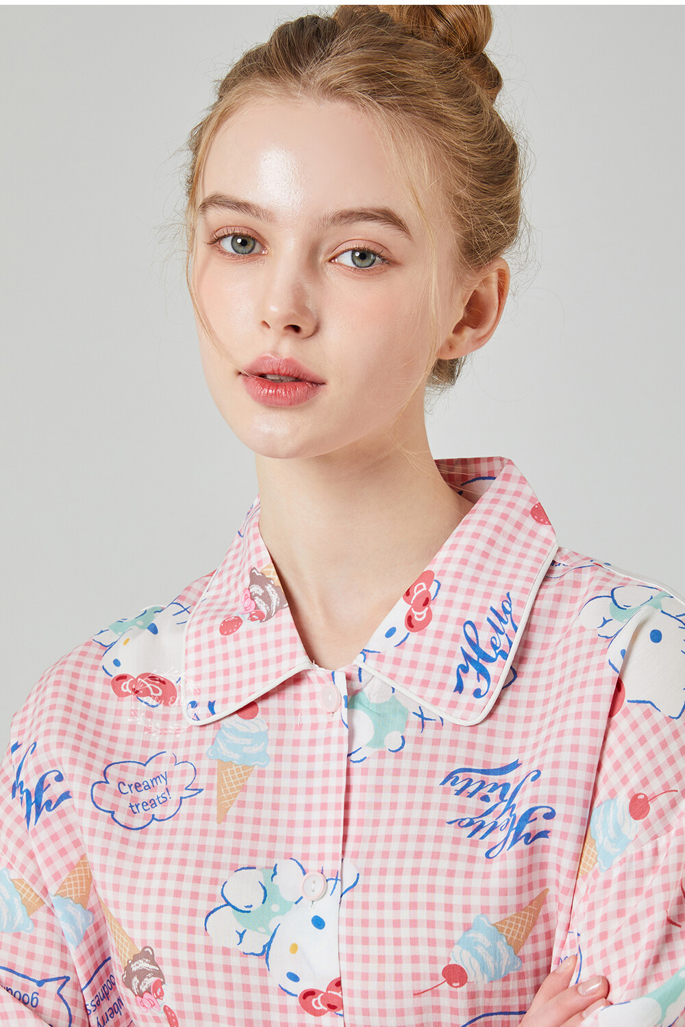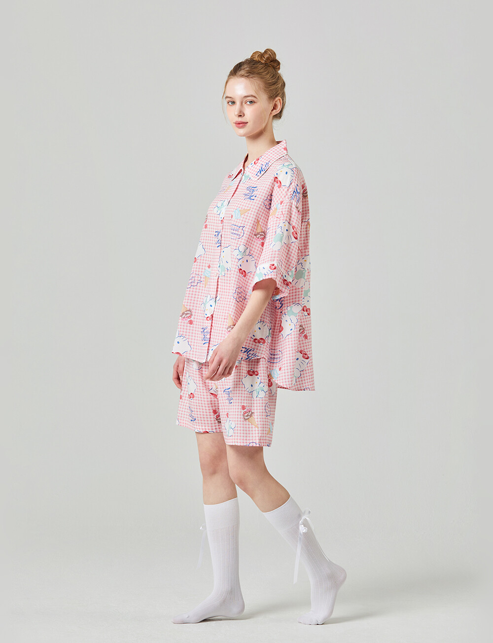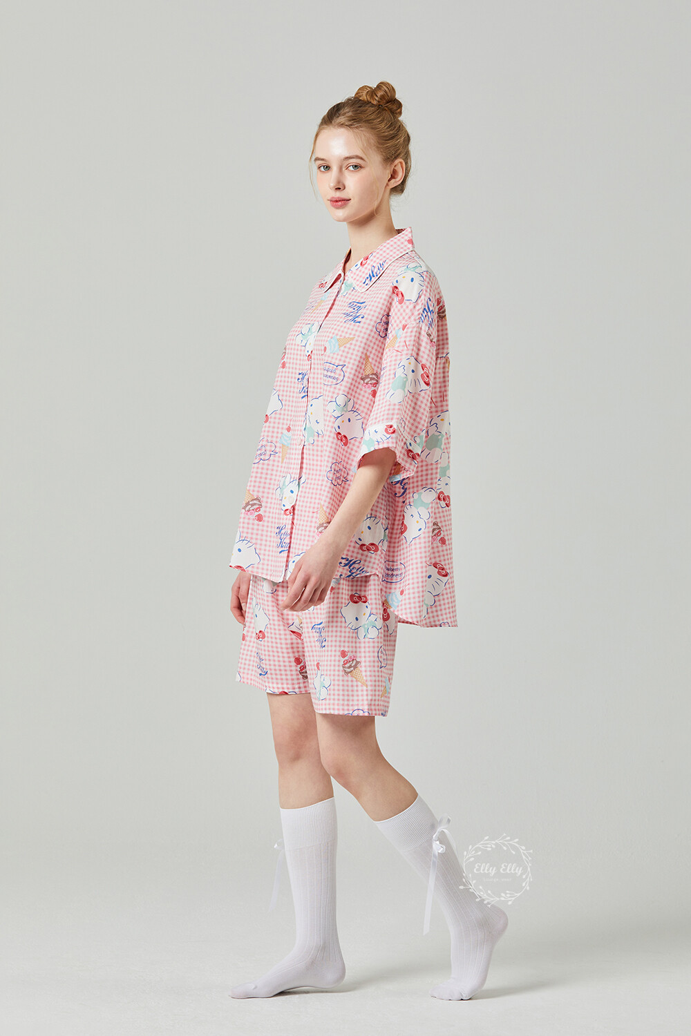 HK-4513 산리오정품 헬로키티 와이카라 체크 반팔상하