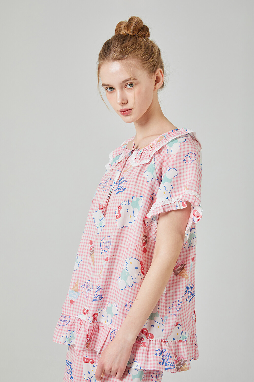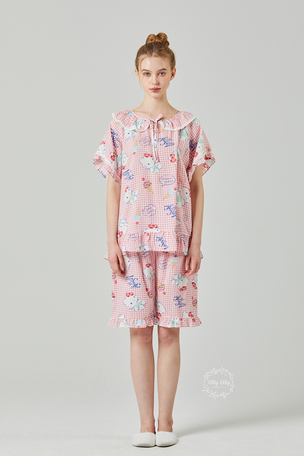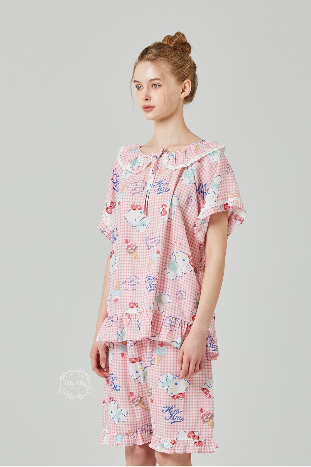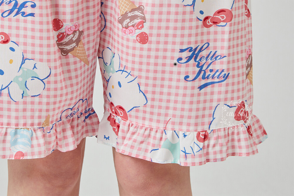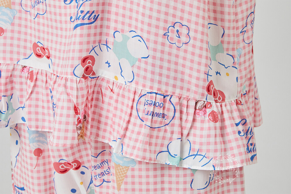 HK-4514 산리오정품 헬로키티 레이스프릴 체크 반팔상하