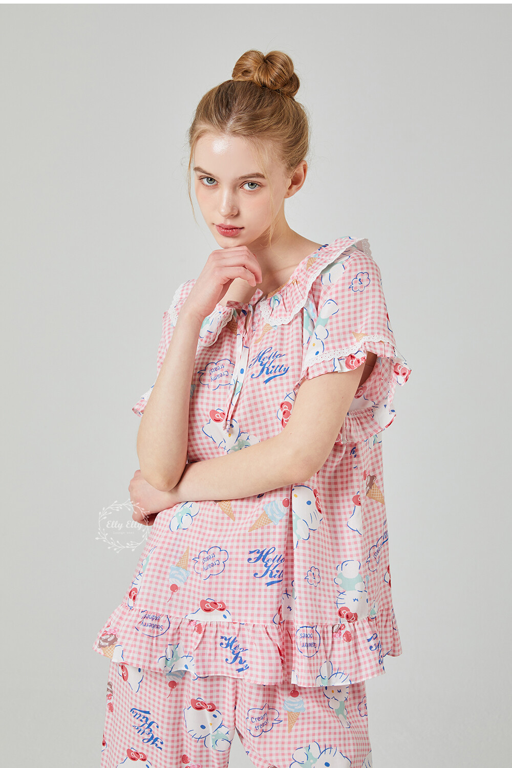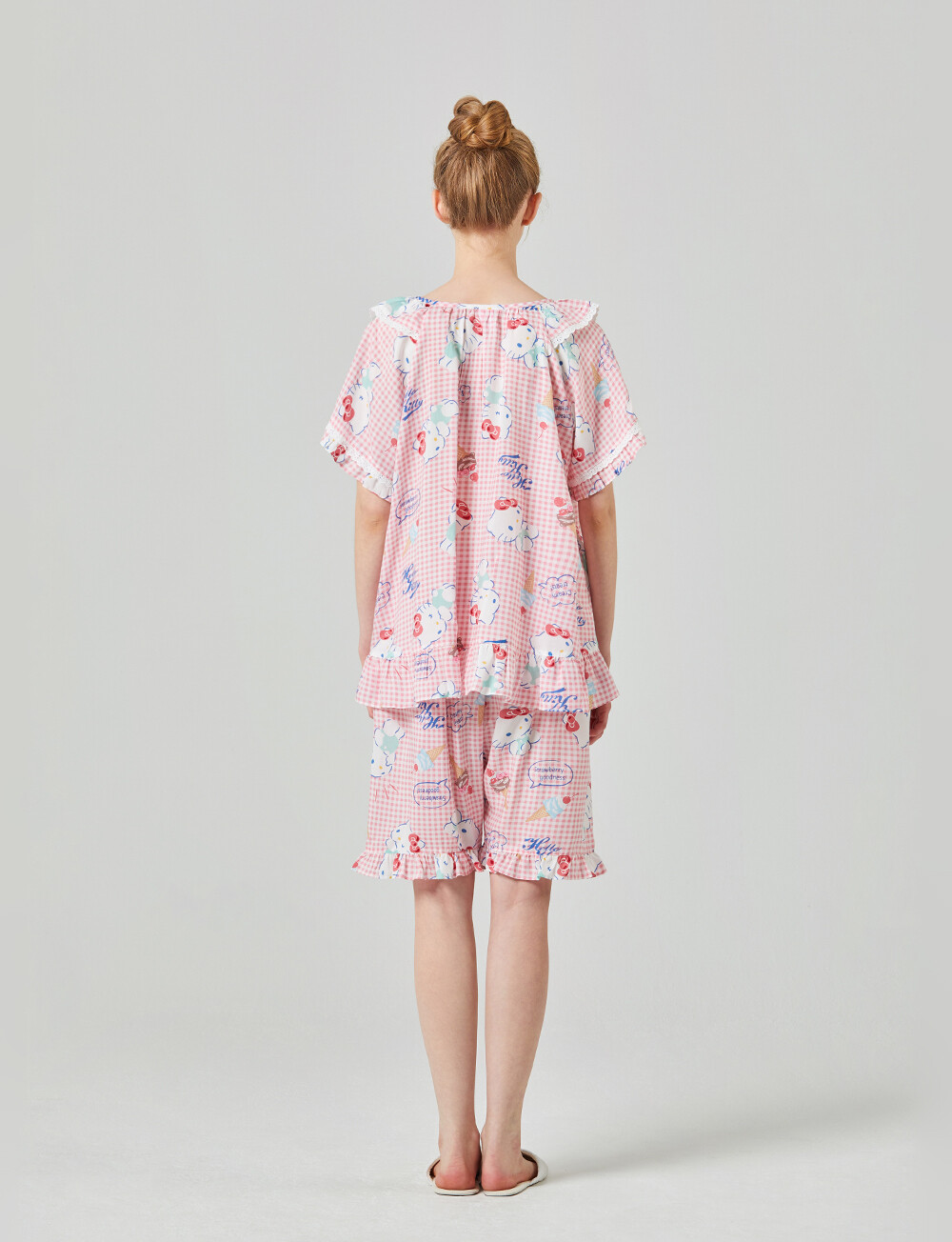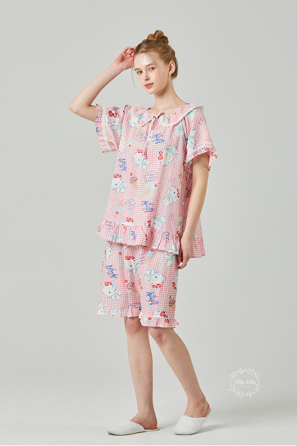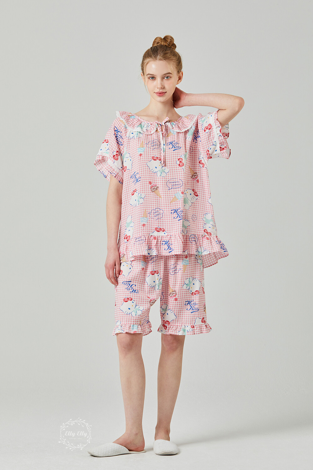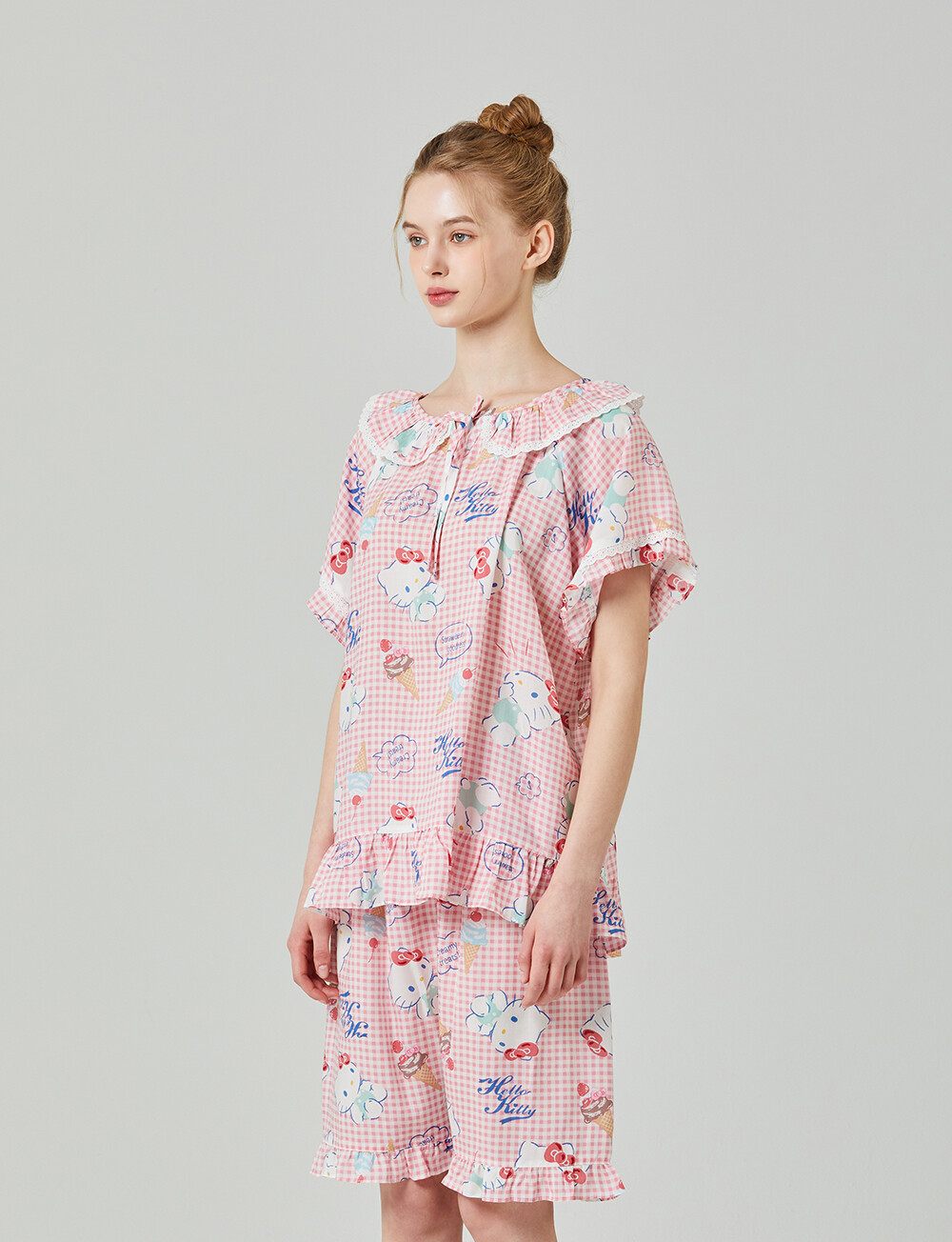HK-4514 산리오정품 헬로키티 레이스프릴 체크 반팔상하