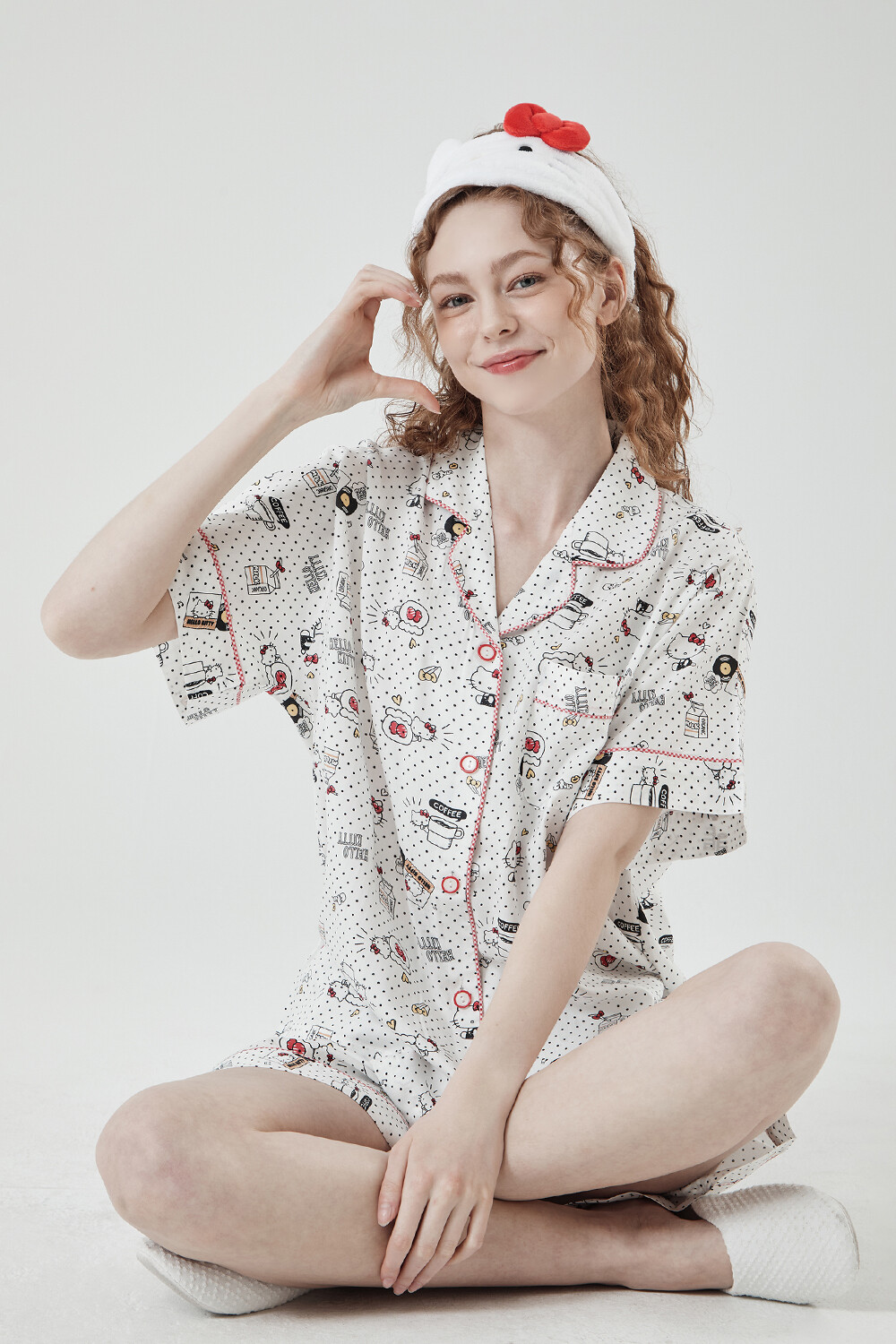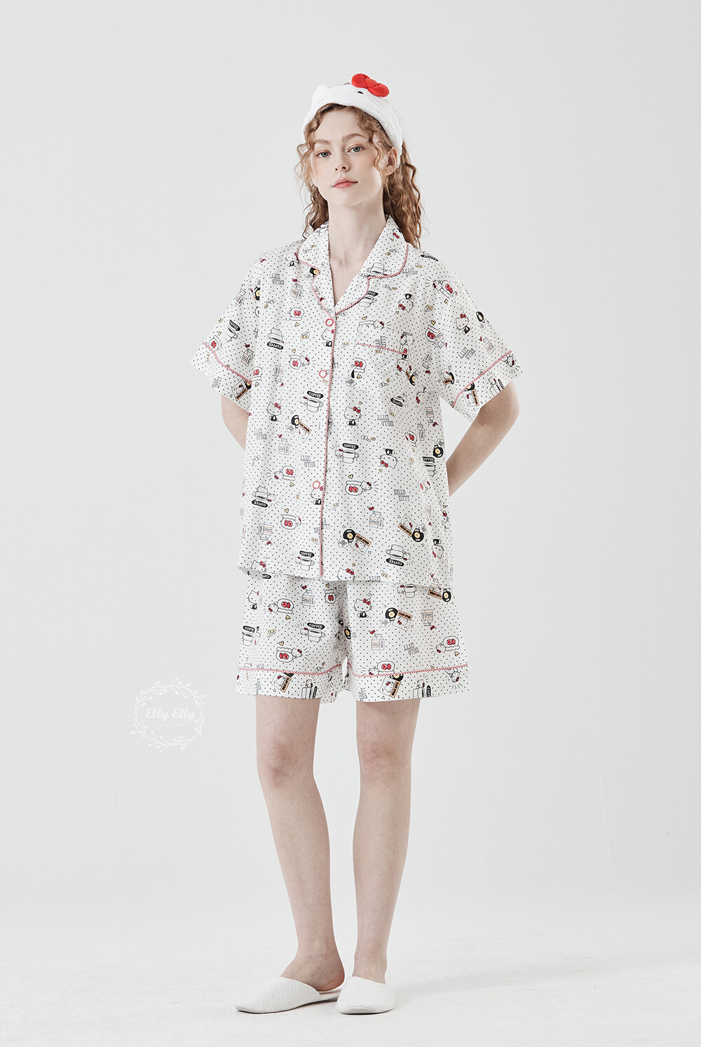 HK-4515 산리오정품 헬로키티 다이마루 와이카라 반팔상하