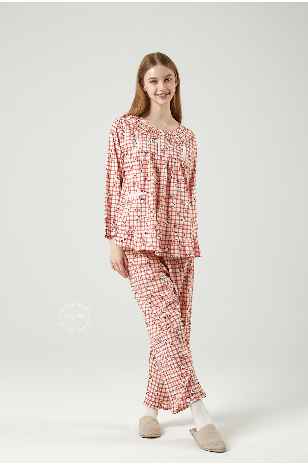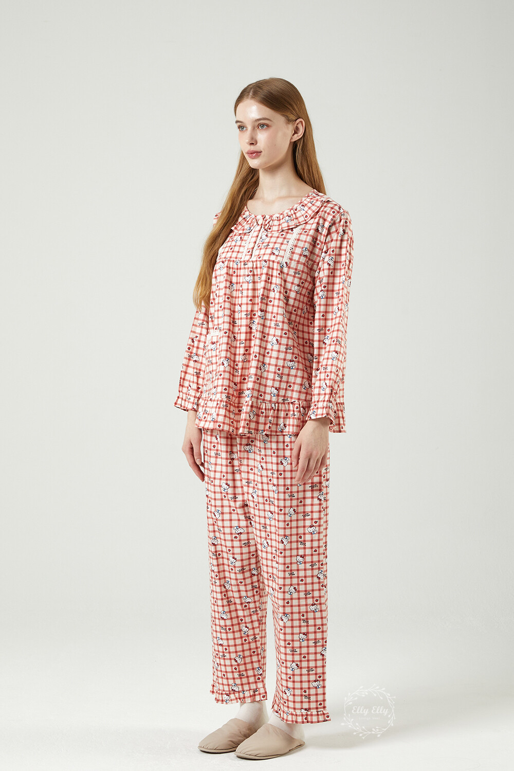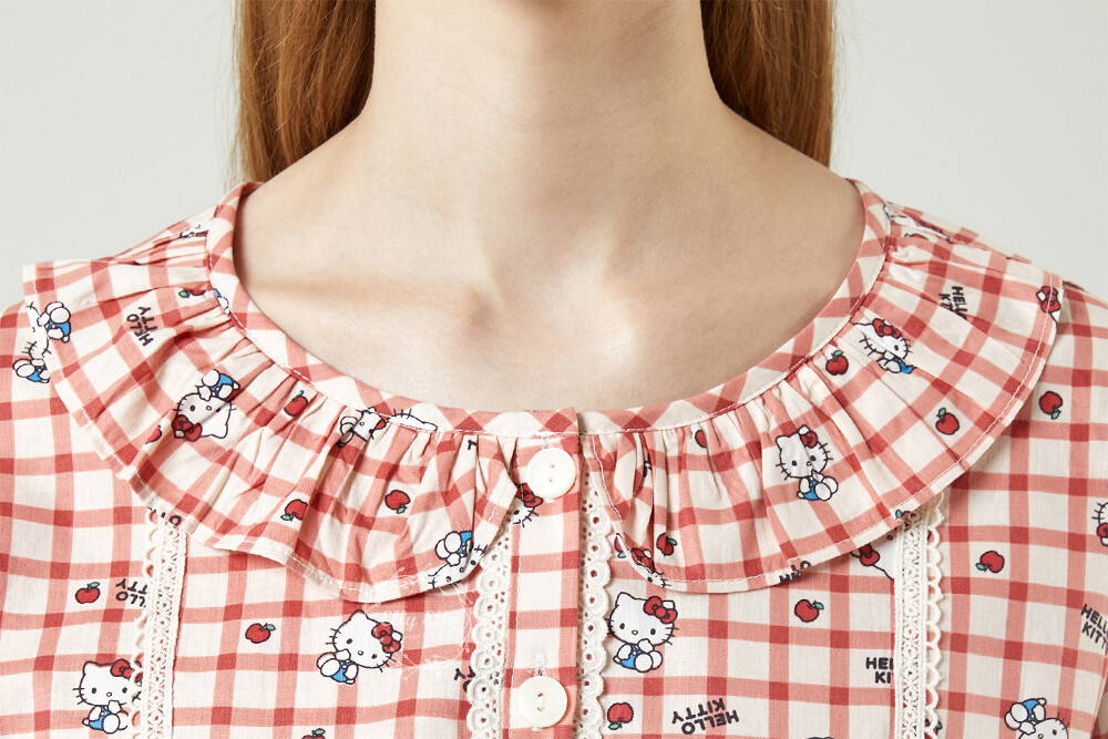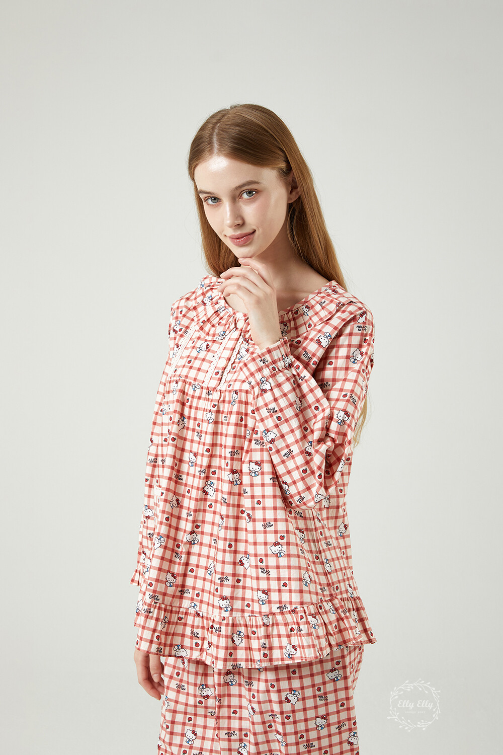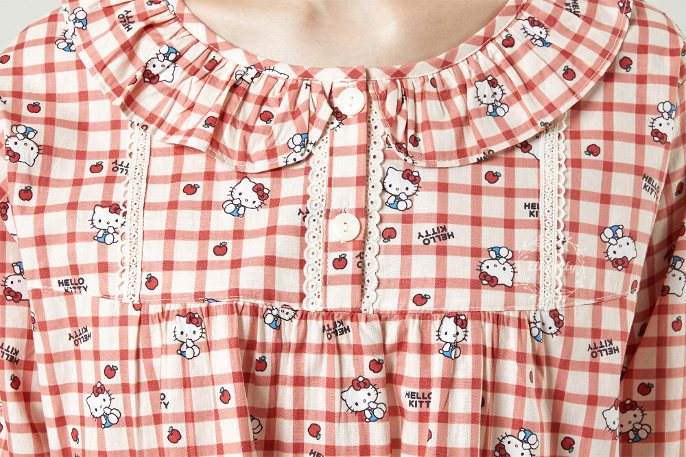 HK-4552 산리오정품 헬로키티 레이스프릴 긴팔상하 투피스