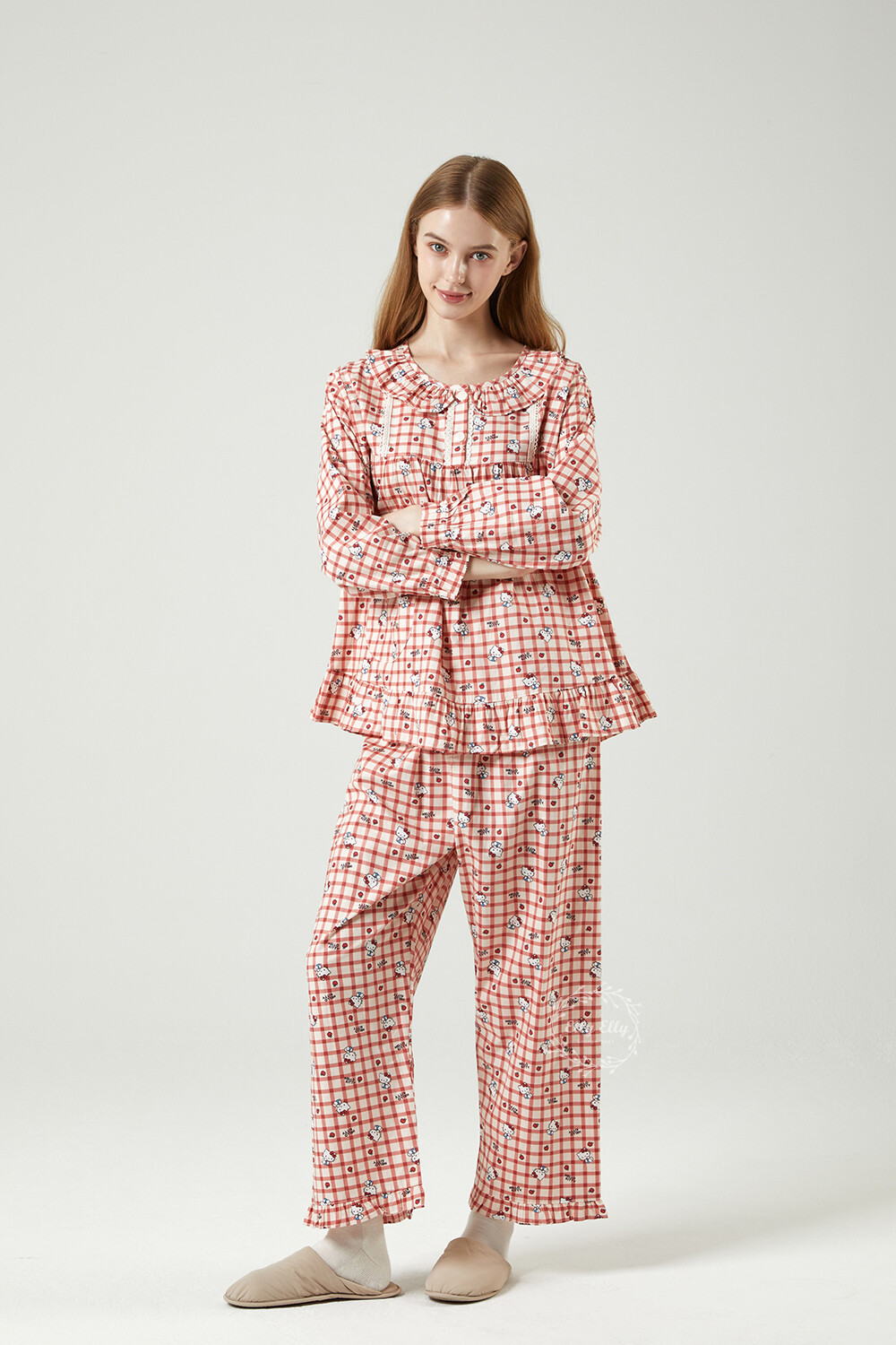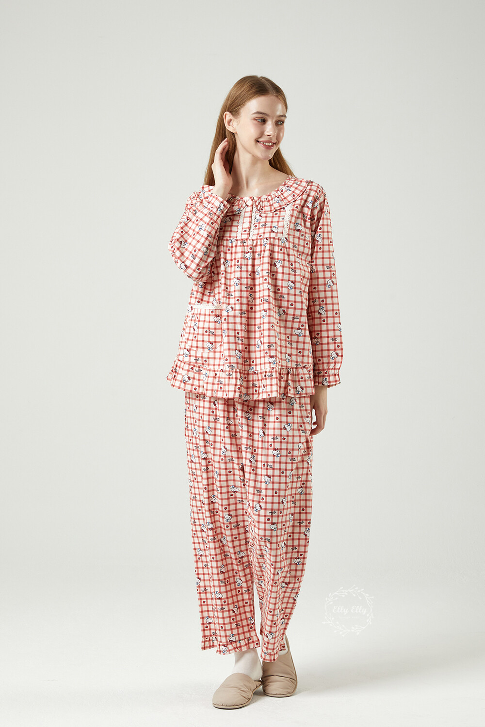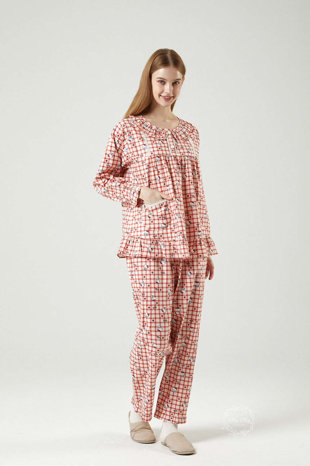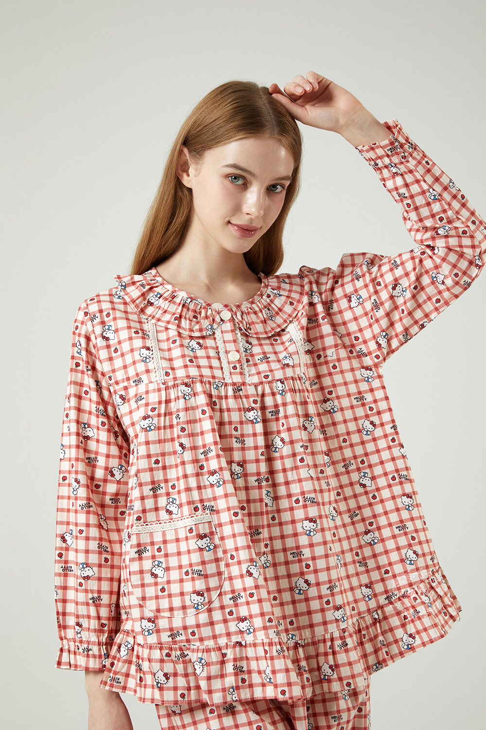 HK-4552 산리오정품 헬로키티 레이스프릴 긴팔상하 투피스