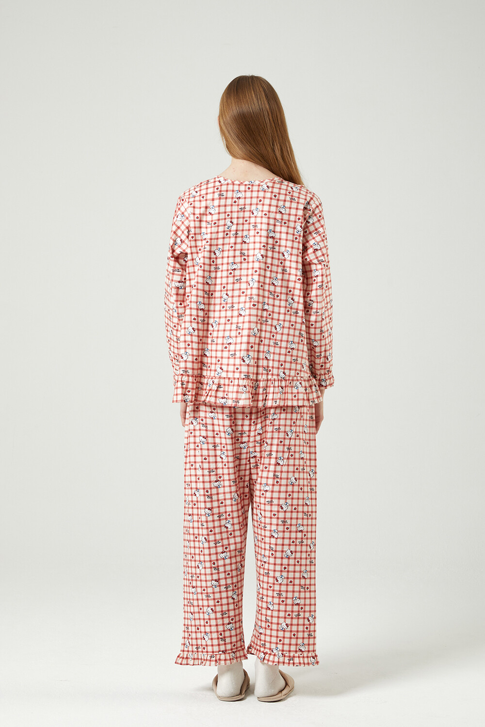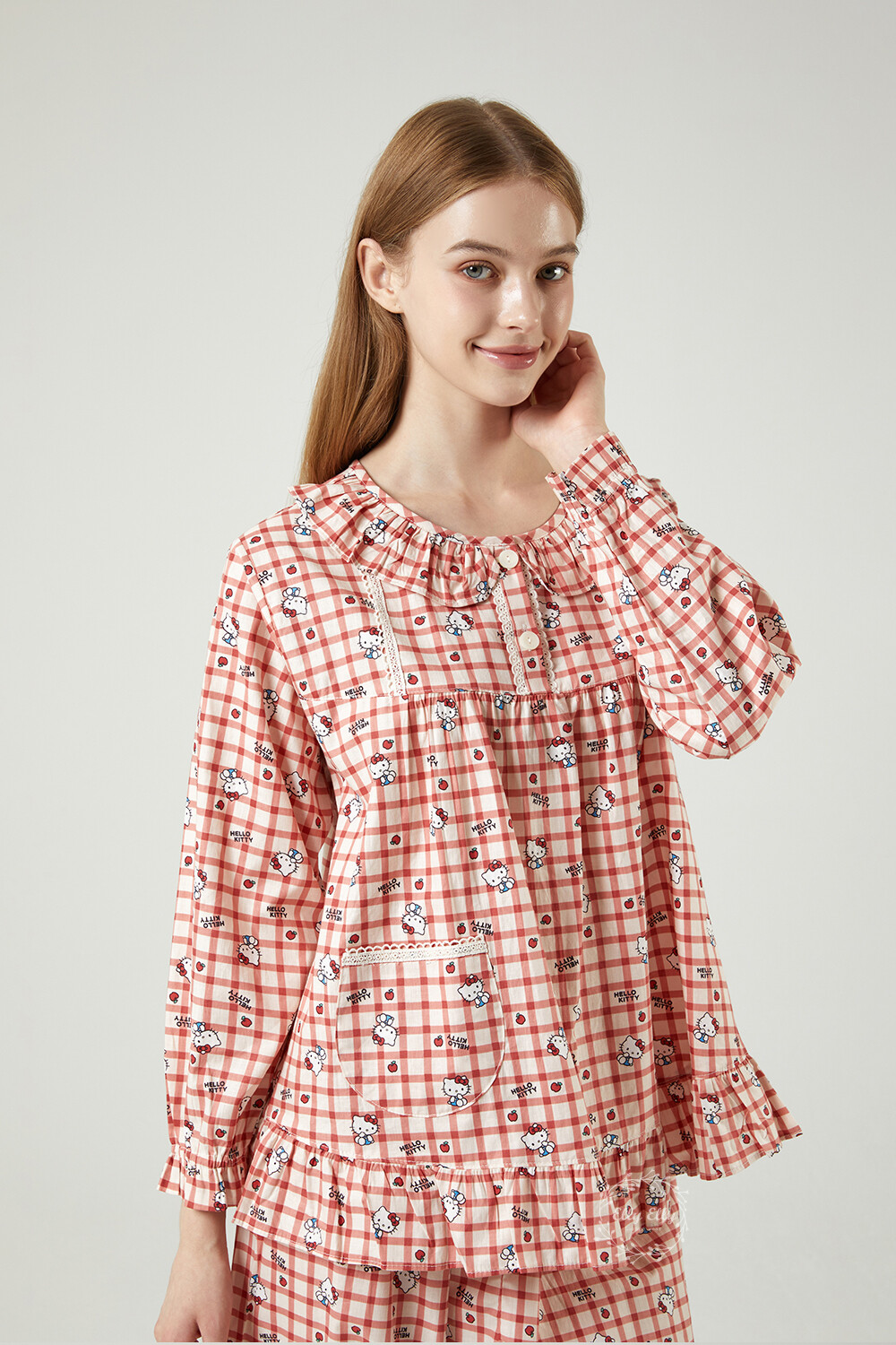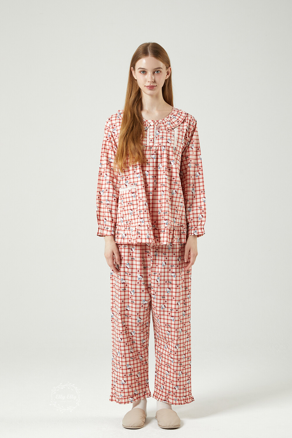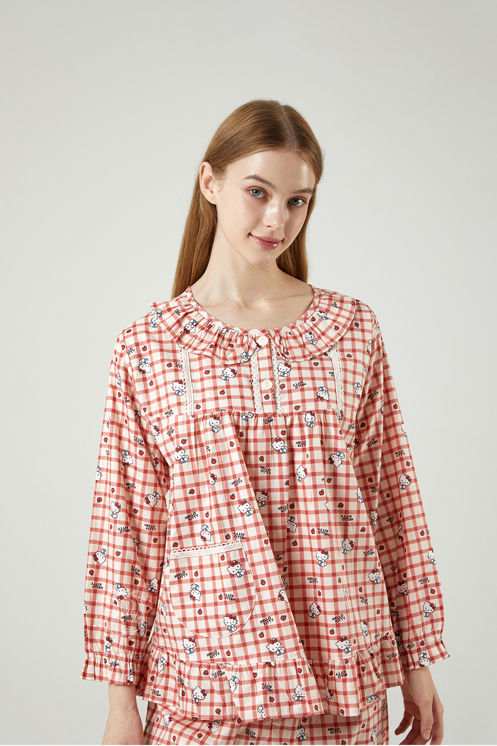 HK-4552 산리오정품 헬로키티 레이스프릴 긴팔상하 투피스